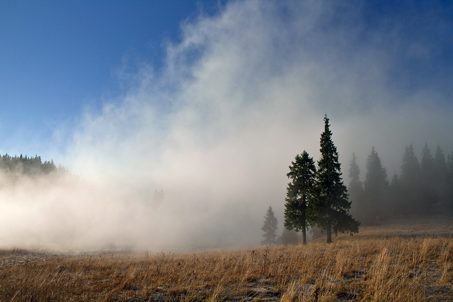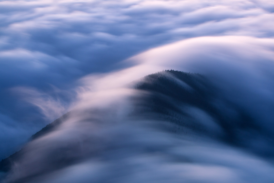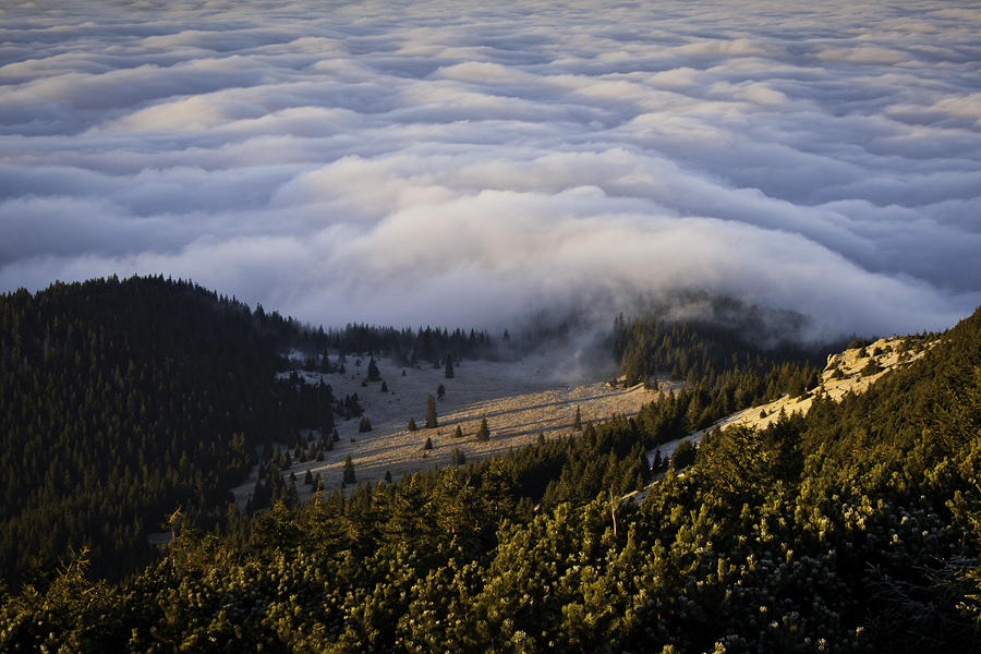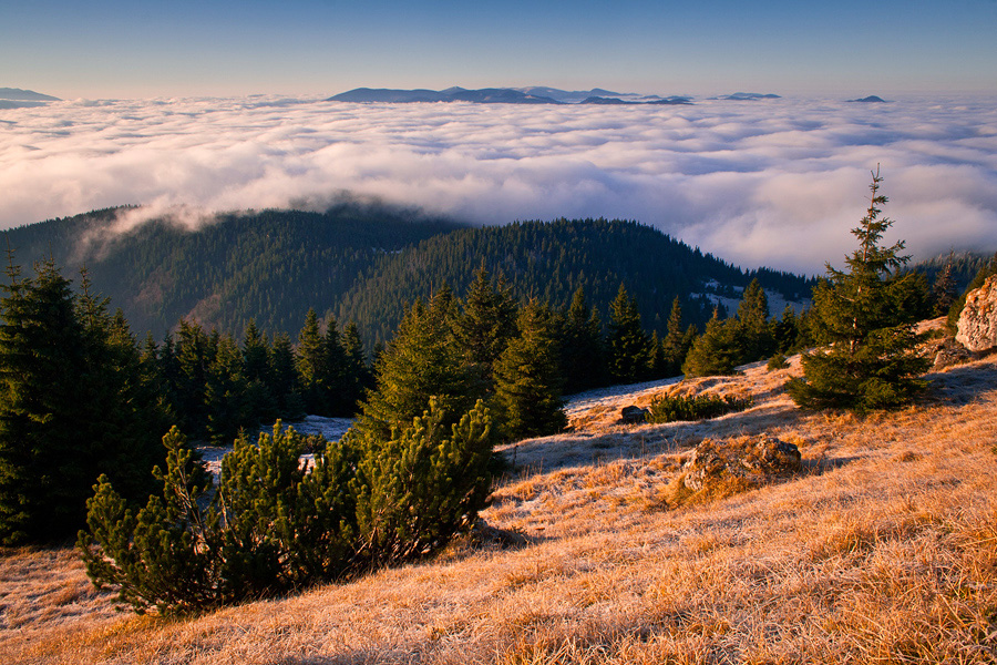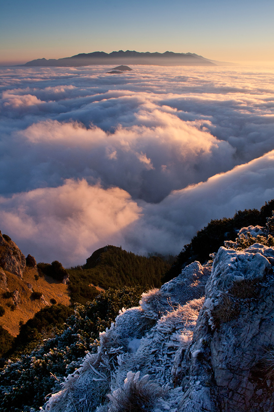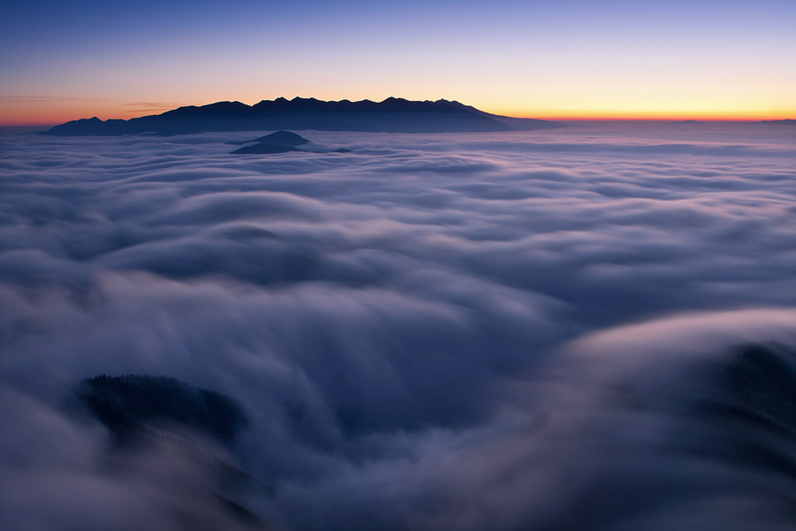 Po dwóch latach znów udało się odwiedzić te mistyczną górę, gdzie królem jest niedźwiedź. Gdy nad Europą wschodnią ukształtował się potężny wyż, codziennie obserwowałem pogodę w którą noc warto jechać. Padło na 15-16 listopad. Akurat kilkoro znajomych też mogło jechać, więc z niecierpliwością czekaliśmy na wieczór… Wybiła północ, czas ruszać. Nie byłem zbyt optymistycznie nastawiony, w powietrzu był jeden wielki syf, w Krakowie smog. Cóż, trzeba spróbować! O 4 nad ruszamy na szczyt. Przed nami 1000 metrów przewyższenia, które pokonujemy w dwie godziny. W połowie drogi nie byłem w najlepszym humorze – zerwał się wiatr, obawiałem się, że z widoków nici. Gdy wyszliśmy w miejsce, gdzie odsłonił się widok na zachód i część Tatr Niżnych, serce szybciej zabiło. Doliny przykryte był grubą pierzyną chmur. Na szczyt niemal wybiegłem, oczom ukazały się Tatry, wyglądające niczym wyspa na morzu. Zapraszam do klikania w zdjęcia.