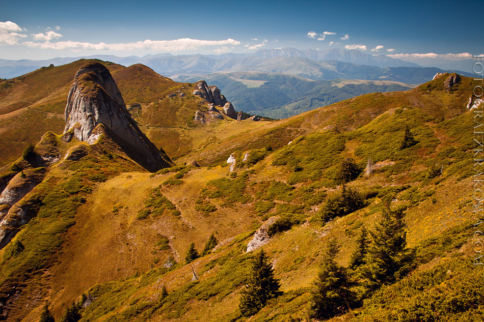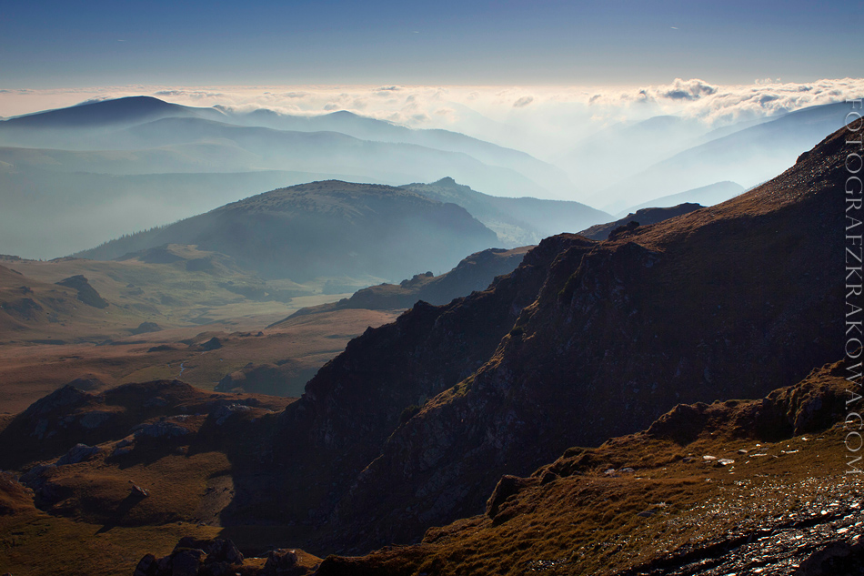 We wrześniu odbyłem tygodniowy trip po Rumunii. Wraz z grupką przyjaciół zwiedziliśmy kilka pasm górskich, mnóstwo zabytków oraz piękne miasta. Jechaliśmy samochodem wypchanym bagażami po brzegi łącznie z namiotami, kociołkami do gotowania, karimatami, jedzeniem na tydzień, sprzętem fotograficznym etc… Dlatego wyprawa była totalnie po kosztach:) Trasa ułożona była po środkowej Rumunii, ale zatrzymaliśmy się też na Węgrzech i Słowacji. Po nocnym zwiedzaniu Koszyc, zobaczyliśmy piękny, ogromny skalny wąwóz Turda u stóp gór Trascau. Następnego dnia  zobaczyliśmy miasta Medias oraz Sighisoara. W tym drugim niestety trafiliśmy na festiwal filmowy, więc wejście na starówkę było płatne! Niesamowite są kościoły warowne w Biertan i Viscri – potęga architektury i historii, gdzie czas jakby się zatrzymał. Zwiedzając Brasov mieliśmy znów pecha, gdyż odbywał się tam kolejny huczny festiwal. Na szczęście nocleg był w spokojnym miejscu u stóp gór Ciucas. Tu ruszyliśmy już pieszo grzbietem zdobywając najwyższy Varful Ciucas. Góry zaiste majestatyczne! W kolejny dzień odwiedziliśmy Sybin – piękne miasto, które śmiało porównać można do Krakowa… oraz kolejne warowne miejsca i stare zabytki, oraz piękny przełom Czerwonej Wieży z widokiem na Fogarasze. Długo zastanawialiśmy się czy jechać drogą transfogarską czy transalpiną, ale wybraliśmy tę drugą. Opłacało się, widoki niesamowite, ta przestrzeń oraz możliwość spokojnego noclegu na około 2000 m n.p.m (oczywiście w namiocie). Tutaj obudziłem się jeszcze dużo przed wschodem słońca by urządzić sobie plener fotograficzny na grzbiecie gór Parang. Kolejne góry jakie chcieliśmy zobaczyć to słynne Retezat. Dawno nie odczułem takiej dzikości w górach. Potężne, majestatyczne, wręcz przygniatające. Samochód zatrzymaliśmy w pustym po sezonie Rausor, następnie udaliśmy się na nocleg do Cabany Pietrele by następnego dnia zdobyć Vf Retezat 2482m n.p.m. Z nadziejami, że będziemy spać w Refugio Condorul, musieliśmy się udać aż do Rausor, gdyż schron zastaliśmy w ruinie. Ostatnie dwa dni przeznaczyliśmy na powrót z noclegiem jeszcze w Rumunii nieopodal granicy z Węgrami w Lipovej. Odwiedziliśmy jeszcze zamek w Hunedoarze (wejściówkę cenią sobie zbyt zacnie…) oraz cudowne romańskie cerkwie w Strei oraz Densus (ostatnie fotografie). W ostatni dzień zwiedziliśmy urokliwe węgierskie miasteczko Vacu oraz Słowacką Bańską Bystrzyce i Vlkoliniec. Ponższe fotografie pokazują rumuńską część wyprawy.