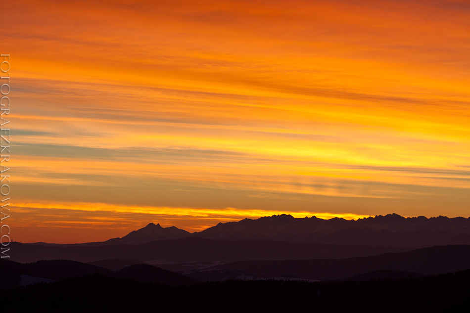 Chwila przed wschodem słońca 15 lutego na Wielkiej Raczy, okazała się być bajecznie złota i widowiskowa. O 5:30 nic nie wskazywało na to, że będzie aż tak pięknie na niebie. Co więcej huraganowy silny wiatr mocno zniechęcał do wyjścia na platformę widokową na szczycie. Ale cierpliwość została nagrodzona pięknym zjawiskiem – Tatry rzuciły swój cień na złotą warstwę chmur wysokich. Coś pięknego!