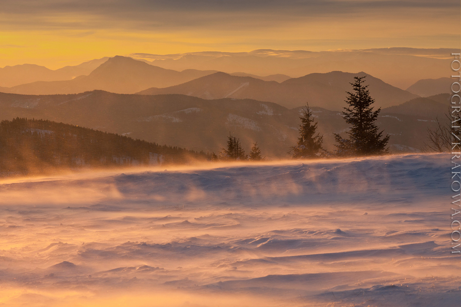 Natomiast poniższe zdjęcie to przykład, że fotograf krajobrazu czasem ma naprawdę „przegwizdane”. Wiatr przewraca nie tylko statyw… trudno nawet złapać oddech! W głębi Wielki Chocz oraz Tatry Niżne…
