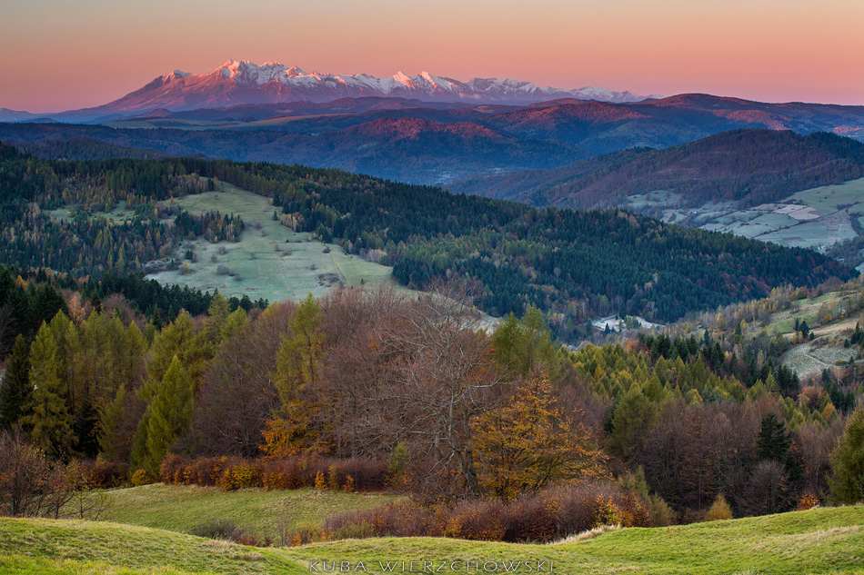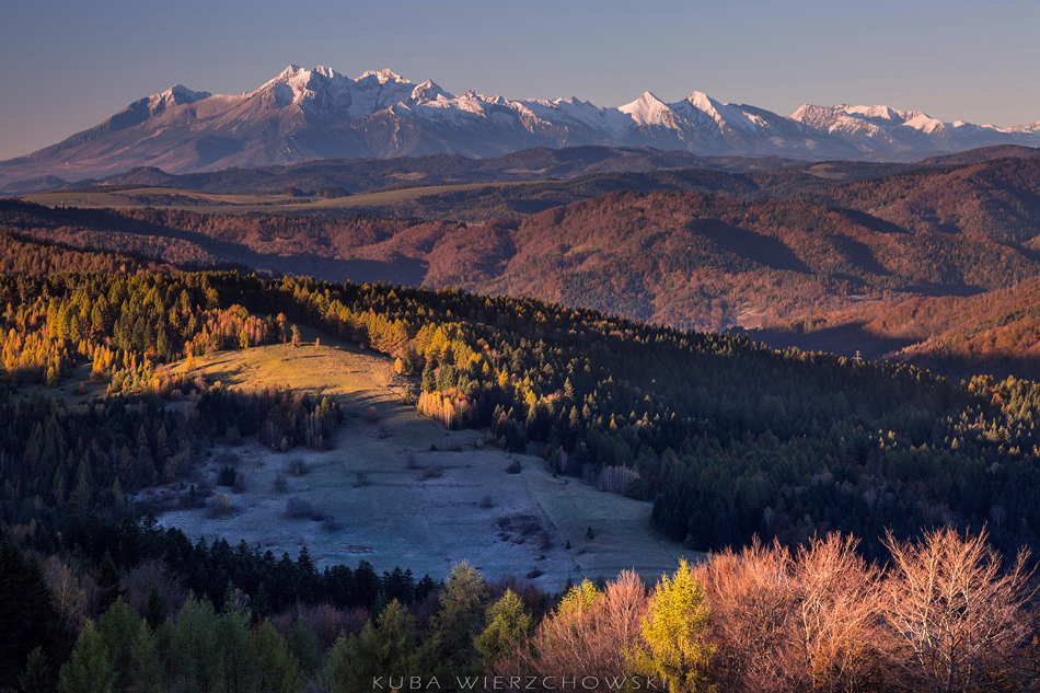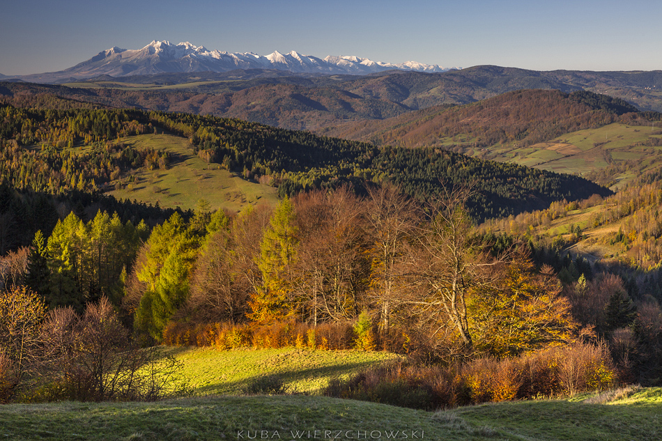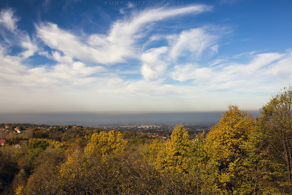 Końcówka października i początek listopada (a dokładnie 27.10 i 3.11) to dni, w którym na ponad tydzień w Polsce zadomowił się głęboki wyż. Nie sposób było tego nie wykorzystać i mimo bolącego ścięgna w stopie wybrałem się w góry wraz dwoma znajomymi. By przede wszystkim się spotkać, pogadać no i ja się uda – zrobić kilka zdjęć. Bacówka nad Wierchomlą była strzałem w dziesiątkę. Byłem tam już kilka razy – ale pierwszy raz po za sezonem. Czysto, schludnie, gościnnie, dobre jedzenie, miła atmosfera – co trzeba więcej w górskim schronisku? Ok, ok wiem – kominek, ale przyjdzie zima, będzie i kominek:) Do bacówki prowadzi bita, przyjemna droga (oprócz szlaku), dlatego miejsce to można odwiedzać pewnie i w sędziwym wieku:) Poranek, cóż, i ładny i średni. Mgieł nie było, chmurek nie było. Dobra widoczność, trochę kolorów i to wszystko. Ale warto było, warto było wybrać się do czystej krainy. Piszę to, gdyż był to drugi dzień mega smogu nad Krakowem, który utrzymywał się dobre 6 dni… Kolejne zdjęcia przestawiają właśnie to o czym piszę. Na Pogórzu Wielickim – ciepło, wietrznie, ładne cirrusy na niebie, doskonała widoczność na Tatry i Beskidy. To co zobaczyłem z drugiej strony mnie przeraziło. Czym Ci Krakowianie oddychają???