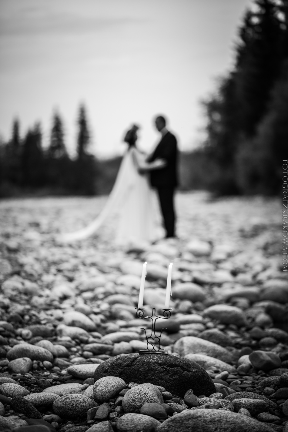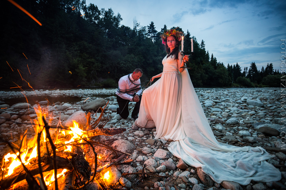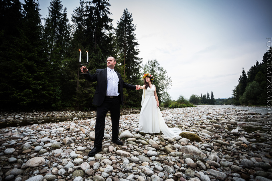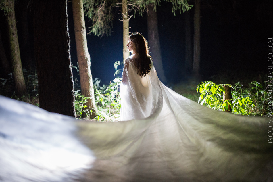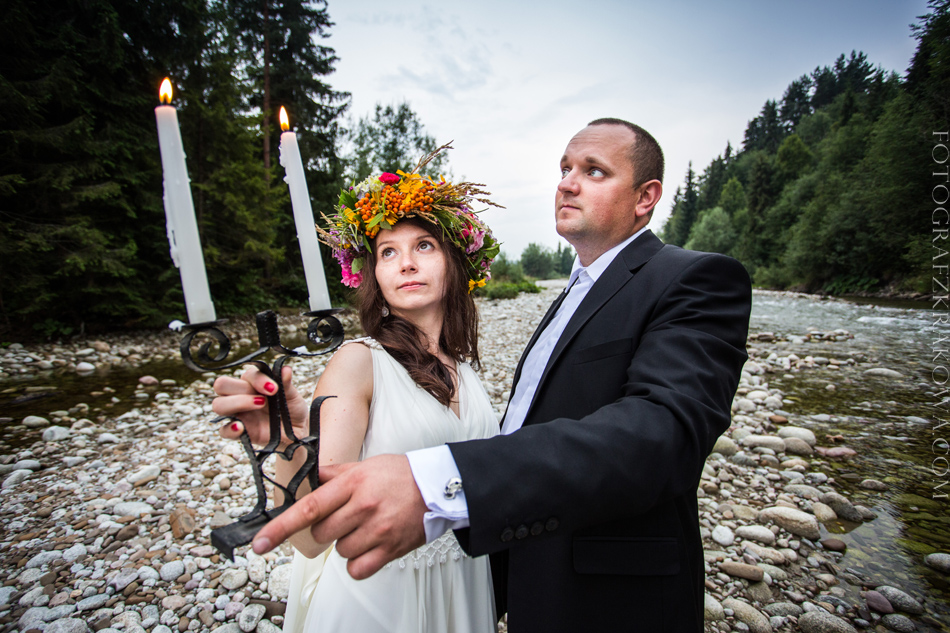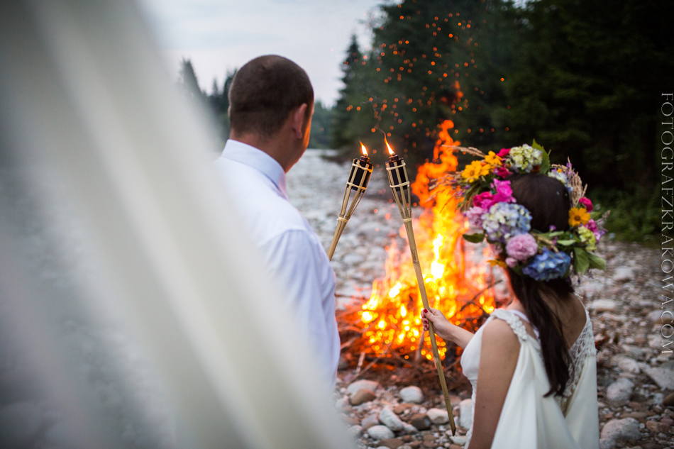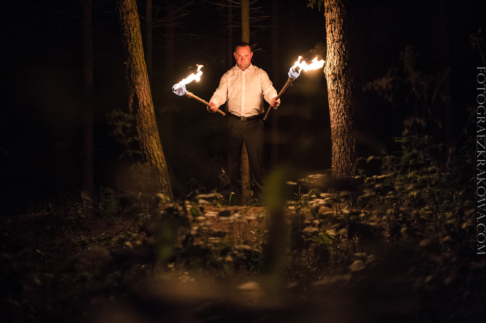 To para rock’n’rollowców, których znam od lat i rok temu powierzyli mi zadanie uwiecznienia ich ślubu:) Ale zanim wrzucę zdjęcia ze ślubu i wesela, chciałem Wam pokazać kilka ujęć z ich sesji… Już na weselu przyszedł mi do głowy pomysł na ich plener… Zaproponowałem Paulinie i Krzyśkowi klimat wody, nocy, ogniska… Sam jeszcze nie wiedziałem jak to będzie wyglądać, ale wspólnie stwierdziliśmy, że to będzie to;) Pół dnia przygotowań, ręcznie robione pochodnie, liny, świece, lampiony, ognisko, folia malarska etc… Zdjęcia skończyliśmy o 23 w zupełnych ciemnościach… A jak wyszło? Oceńcie sami:)