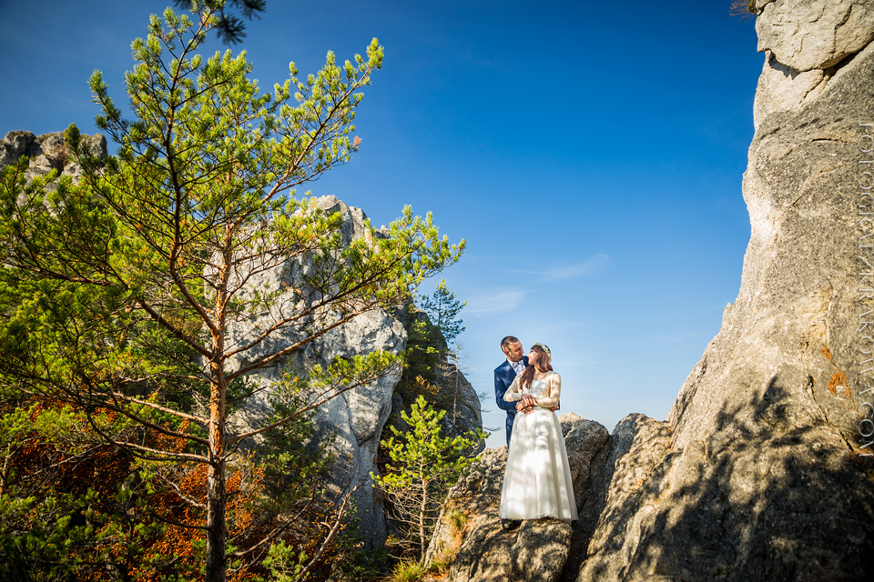 Jesień w 2015 roku była absolutna!!! Co bez litości wykorzystali Asia i Mateusz:) Z lekkim opóźnieniem ze względu na brak czasu, wrzucam niezapomnianą sesję tej przesłodkiej pary – od zawsze związanej z górami! Miała być Mała Fatra na Słowacji, ale ostatecznie padło hasło – Sulovskie Skały też w tym kraju. Miejsce mi nieznane i co się okazało im też:) Ale od zawsze kusiło ich by tam pojechać i teraz nadarzyła się wyjątkowa okazja. Wspólnie byliśmy przekonani że złota jesień jeszcze będzie w tamtych lasach, ale to co zobaczyliśmy na miejscu przerosło nasze oczekiwania trzykrotnie;) To była mega feria barw na każdym drzewie, co widokowo tworzyło niesamowite złote kobierce… Przeszło 6 godzin wędrówki w tych górach nieźle nas zmęczyło ale do końca byliśmy powaleni tym pięknem… co bezlitośnie wykorzystałem na zdjęciach;)