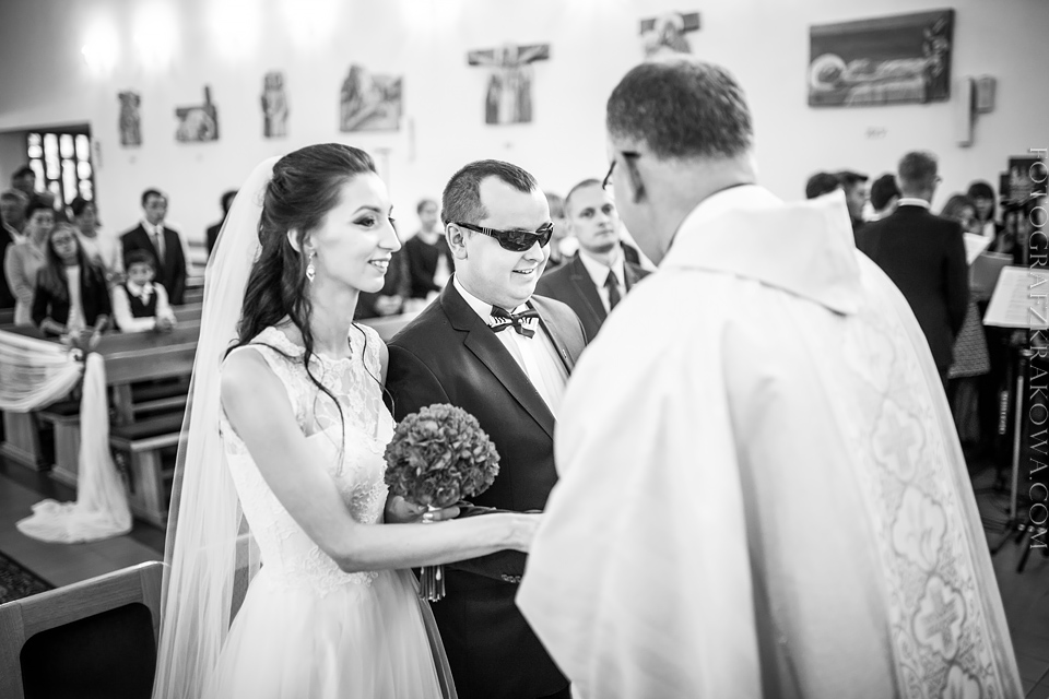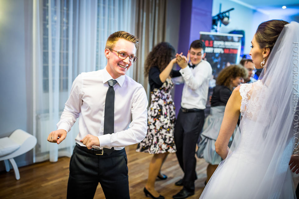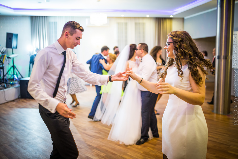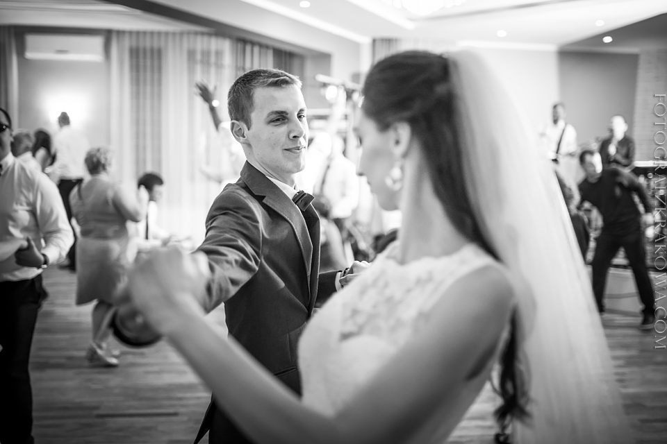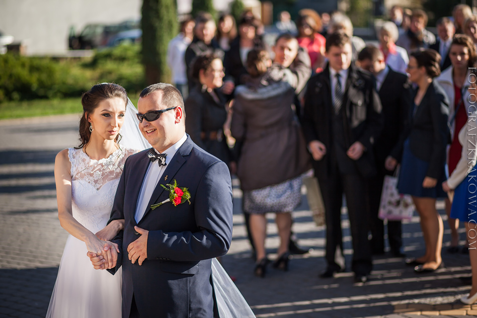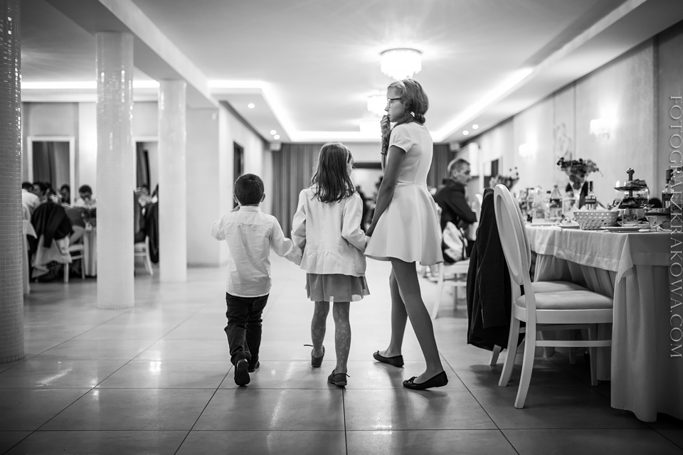 Tę cudowną parę, poznałem rok temu na Targach Ślubnych – zapytali czy na ich ślub jestem w stanie przyjechać do Radomia – zgodziłem się bez wahania. Nie minęło wiele czasu, kiedy spotkaliśmy się osobiście przy kawie, i mogliśmy się bliżej poznać. Wiedziałem, że będę uczestniczył w wyjątkowym ślubie. Tak też było… moc łez, wzruszeń, pięknych śpiewów, uśmiechów. W kościele czuć było niesamowitą atmosferę miłości Karoliny i Łukasza. Nie ukrywam, że ja te wzruszenia również i mnie dopadły… 😉 Na weselu szybko okazało się, że Łukasz jest świetnym tancerzem i mógłby zawstydzić nie jednego pana młodego! Przy kapitalnej oprawie muzycznej zespołu S.O.S (z którym zresztą miałem już przyjemność współpracować) parkiet cały czas był pełny, Karolina i Łukasz z trudem znaleźli chwilę na pamiątkowe zdjęcie na zewnątrz;) Przez głośniki zabrzmiały życzenia od Grzegorza Turnaua, co sprawiło w osłupienie większość bawiących się;) Dzieciaki kapitalnie wypełniały kąty bawiąc się w chowanego czy też grając na komórce;) Swoja drogą uwielbiam te dwa światy na weselu – dorośli i dzieci – totalnie dwie różne imprezy w jednej! 😉
