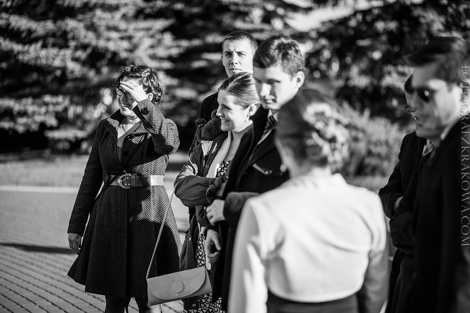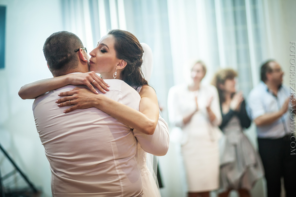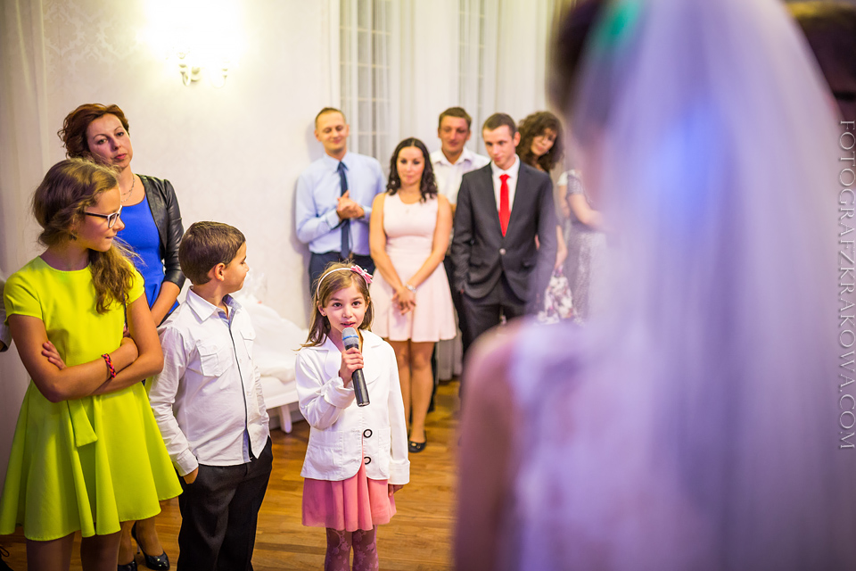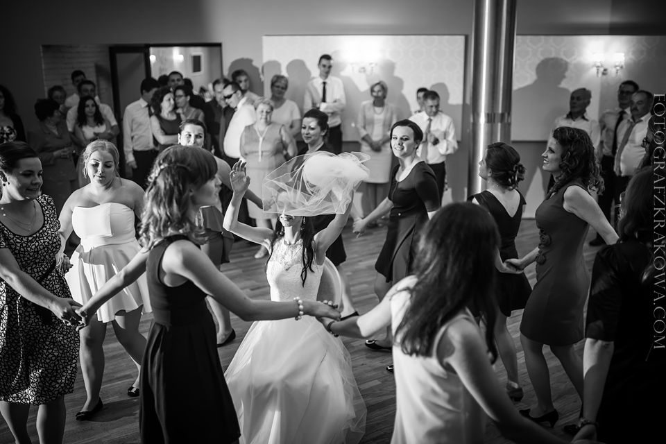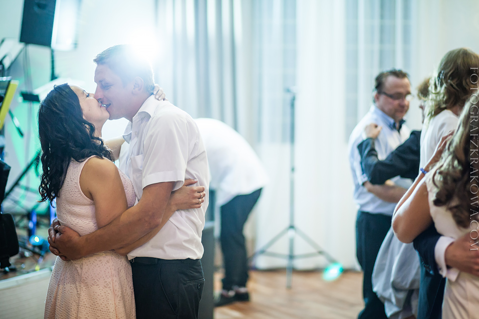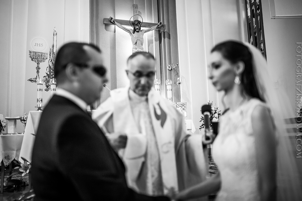 Tę cudowną parę, poznałem rok temu na Targach Ślubnych – zapytali czy na ich ślub jestem w stanie przyjechać do Radomia – zgodziłem się bez wahania. Nie minęło wiele czasu, kiedy spotkaliśmy się osobiście przy kawie, i mogliśmy się bliżej poznać. Wiedziałem, że będę uczestniczył w wyjątkowym ślubie. Tak też było… moc łez, wzruszeń, pięknych śpiewów, uśmiechów. W kościele czuć było niesamowitą atmosferę miłości Karoliny i Łukasza. Nie ukrywam, że ja te wzruszenia również i mnie dopadły… 😉 Na weselu szybko okazało się, że Łukasz jest świetnym tancerzem i mógłby zawstydzić nie jednego pana młodego! Przy kapitalnej oprawie muzycznej zespołu S.O.S (z którym zresztą miałem już przyjemność współpracować) parkiet cały czas był pełny, Karolina i Łukasz z trudem znaleźli chwilę na pamiątkowe zdjęcie na zewnątrz;) Przez głośniki zabrzmiały życzenia od Grzegorza Turnaua, co sprawiło w osłupienie większość bawiących się;) Dzieciaki kapitalnie wypełniały kąty bawiąc się w chowanego czy też grając na komórce;) Swoja drogą uwielbiam te dwa światy na weselu – dorośli i dzieci – totalnie dwie różne imprezy w jednej! 😉