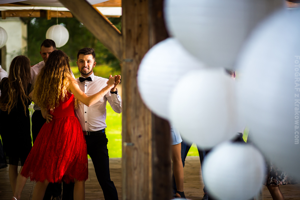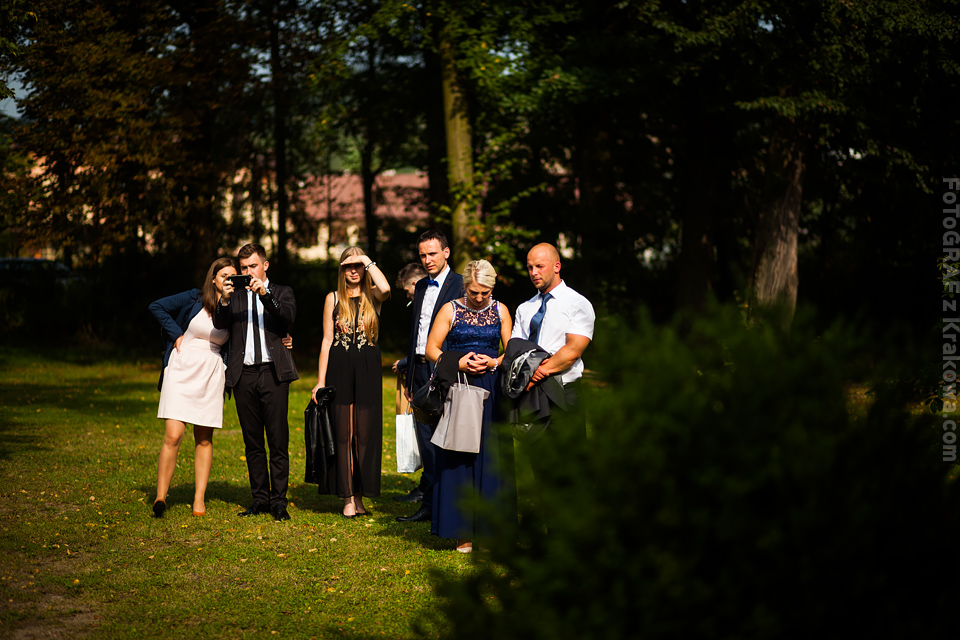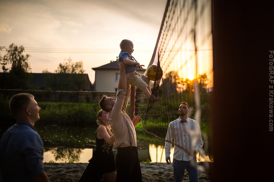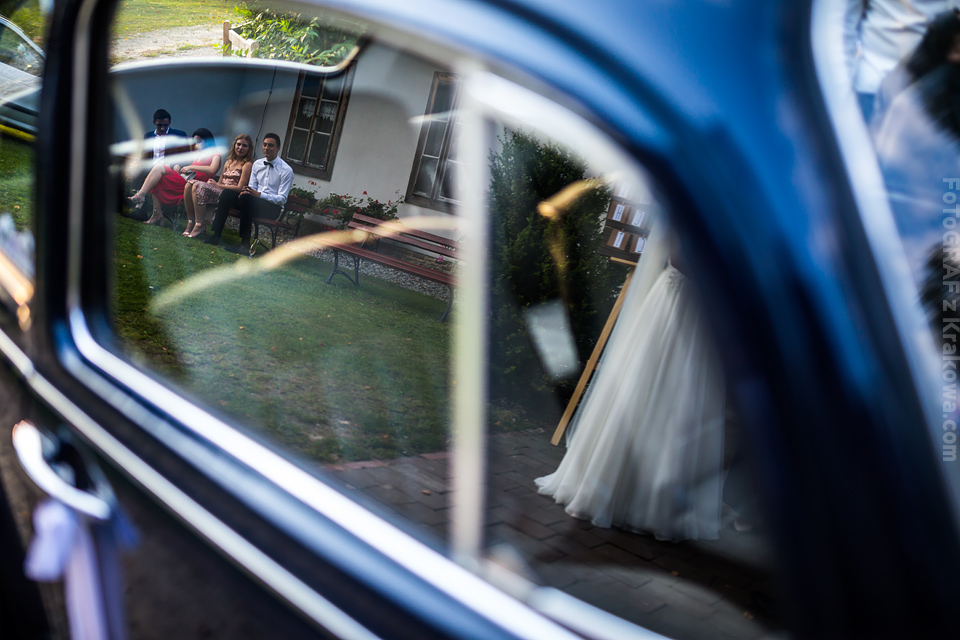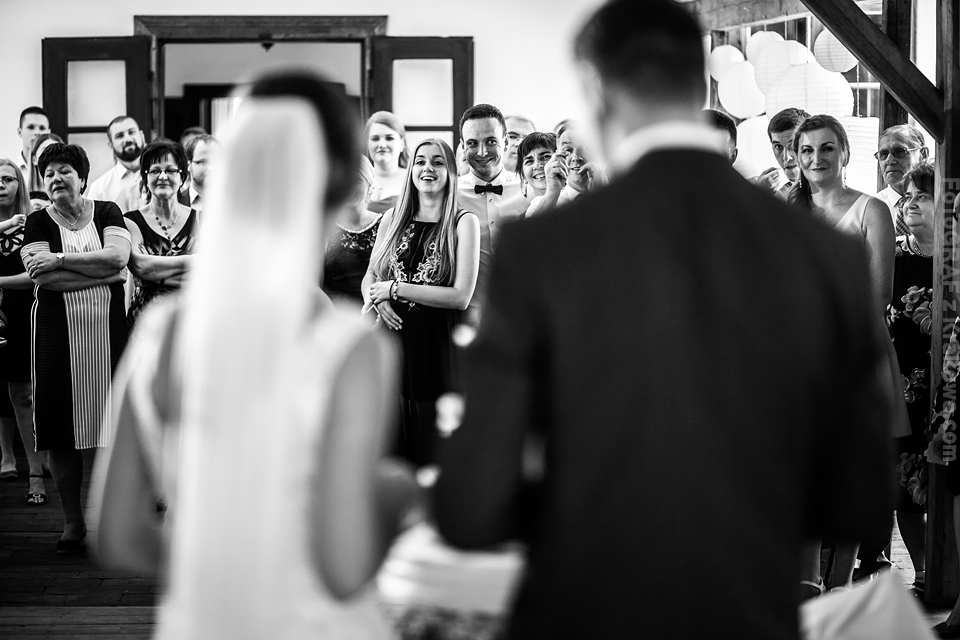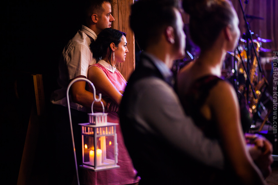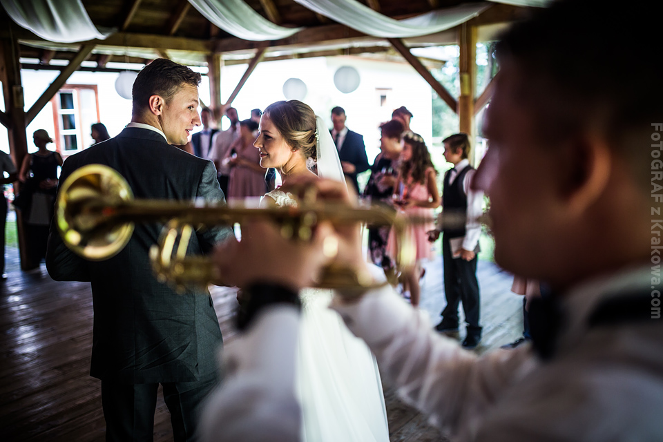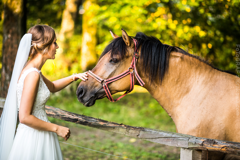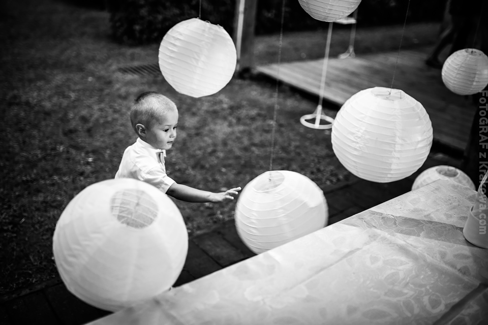 Ostatnią sobotę sierpnia spędziłem w kapitalnym towarzystwie Justyny i Dominika i ich czadowej rodzinki:) Bardzo spodobał mi się klimat jaki panował podczas tego dnia. Baletki zamiast szpilek, garbusek zamiast limuzyny, kapitalny ksiądz z uśmiechem jakiego dawno nie widziałem, lampiony i świece zamiast kryształowych lamp, drewniany taras do tańczenia zamiast pałacu z marmuru:) aha! …konie za płotem zamiast plastikowych łabędzi;) No i przede wszystkim Oni – wpatrzeni w siebie Justyna i Dominik! To był świetny dzień!