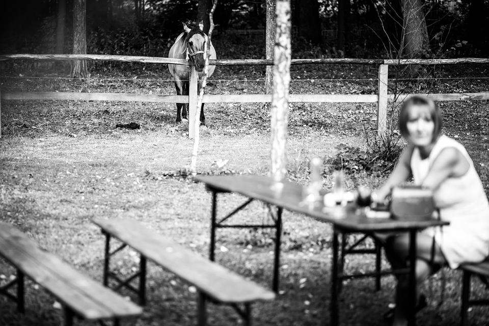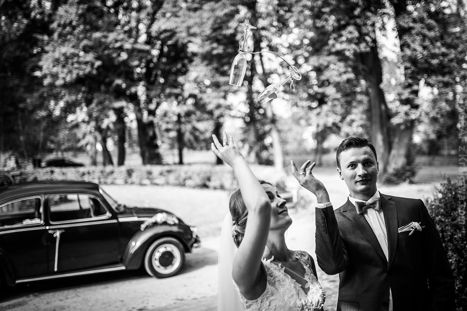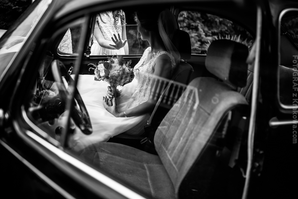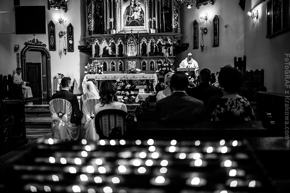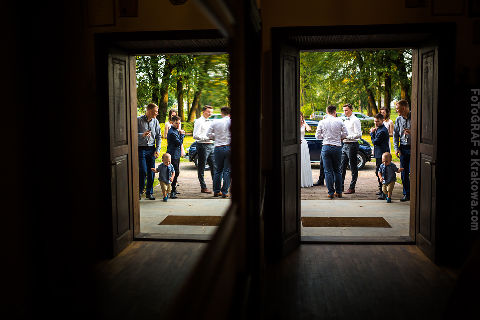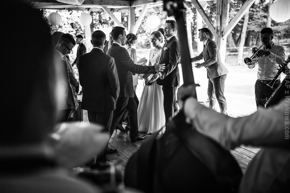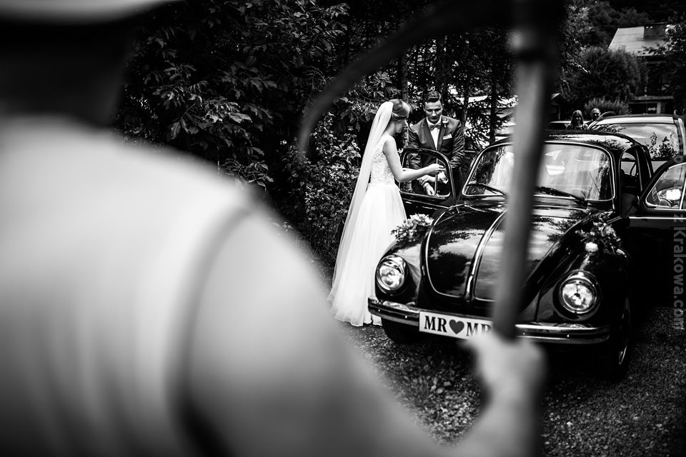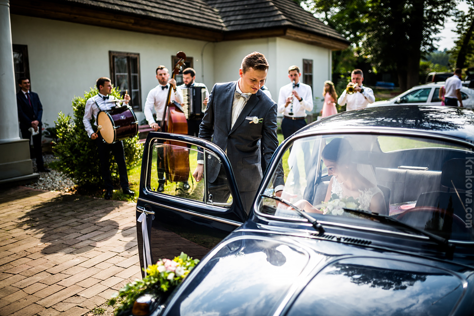 Ostatnią sobotę sierpnia spędziłem w kapitalnym towarzystwie Justyny i Dominika i ich czadowej rodzinki:) Bardzo spodobał mi się klimat jaki panował podczas tego dnia. Baletki zamiast szpilek, garbusek zamiast limuzyny, kapitalny ksiądz z uśmiechem jakiego dawno nie widziałem, lampiony i świece zamiast kryształowych lamp, drewniany taras do tańczenia zamiast pałacu z marmuru:) aha! …konie za płotem zamiast plastikowych łabędzi;) No i przede wszystkim Oni – wpatrzeni w siebie Justyna i Dominik! To był świetny dzień!