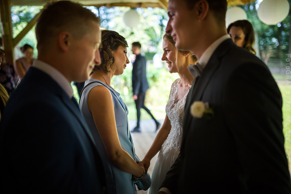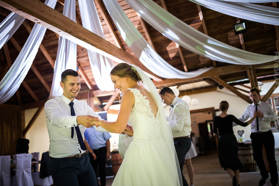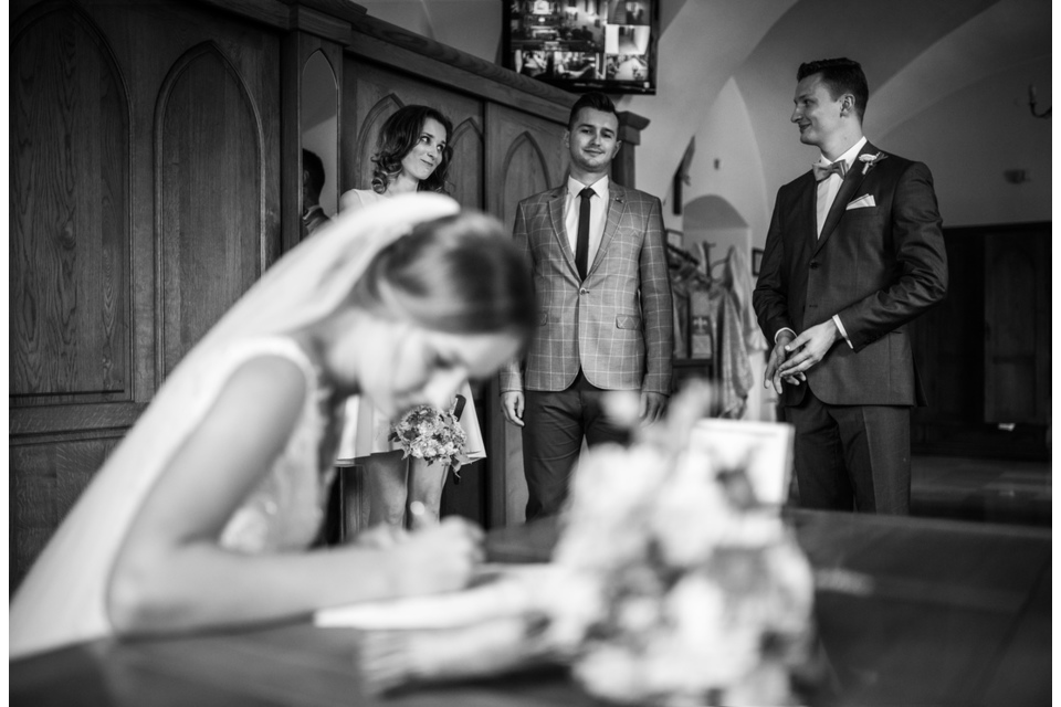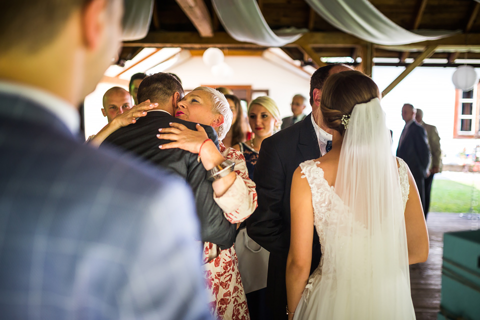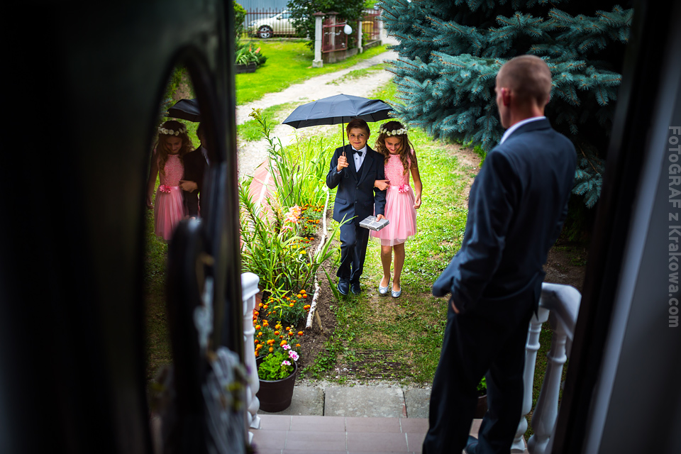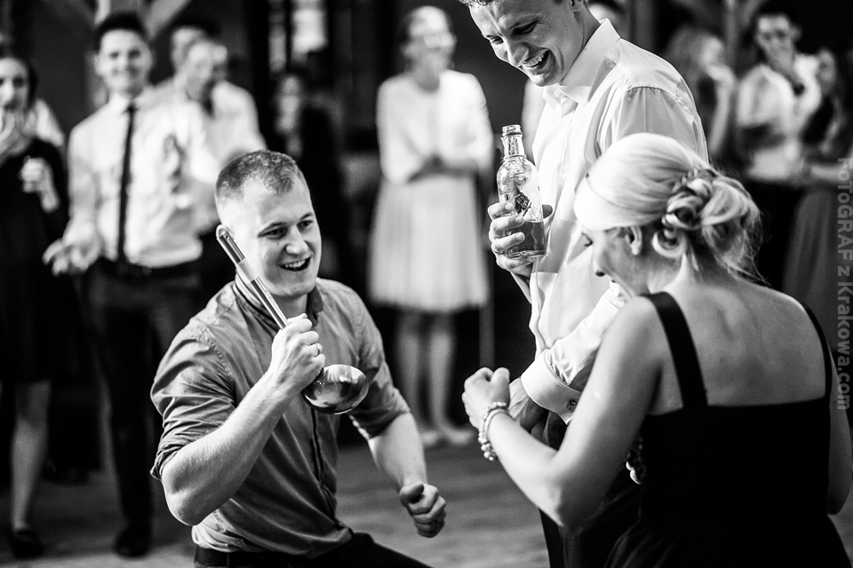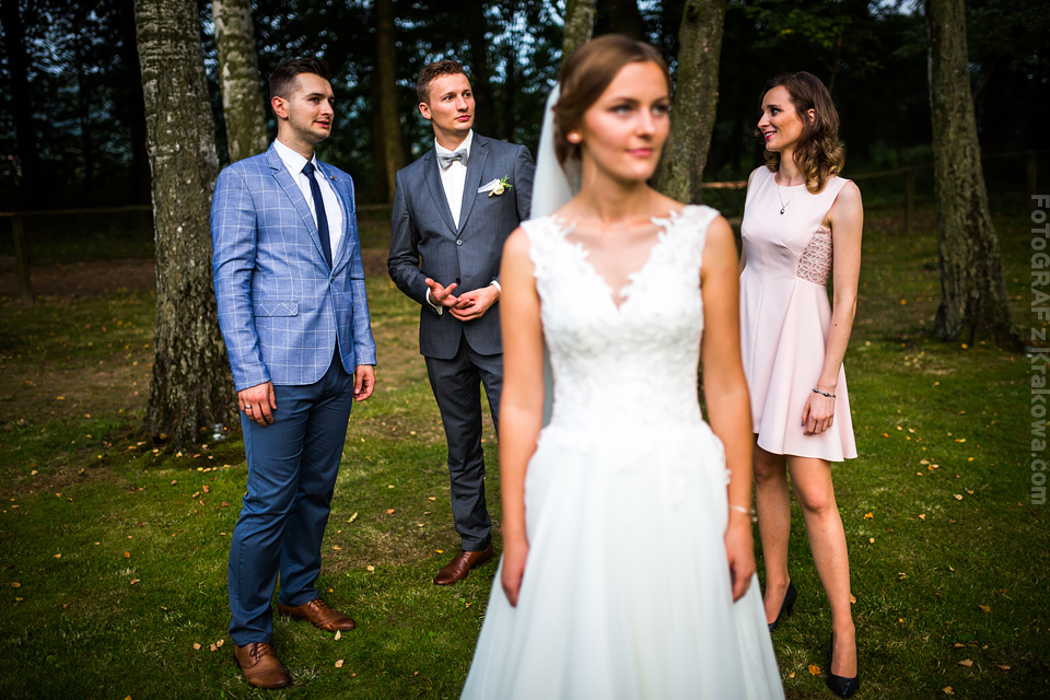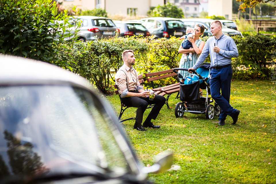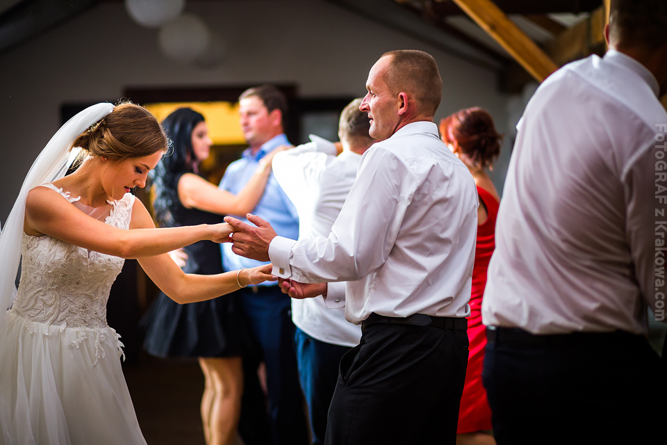 Ostatnią sobotę sierpnia spędziłem w kapitalnym towarzystwie Justyny i Dominika i ich czadowej rodzinki:) Bardzo spodobał mi się klimat jaki panował podczas tego dnia. Baletki zamiast szpilek, garbusek zamiast limuzyny, kapitalny ksiądz z uśmiechem jakiego dawno nie widziałem, lampiony i świece zamiast kryształowych lamp, drewniany taras do tańczenia zamiast pałacu z marmuru:) aha! …konie za płotem zamiast plastikowych łabędzi;) No i przede wszystkim Oni – wpatrzeni w siebie Justyna i Dominik! To był świetny dzień!