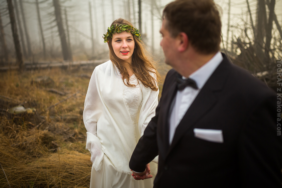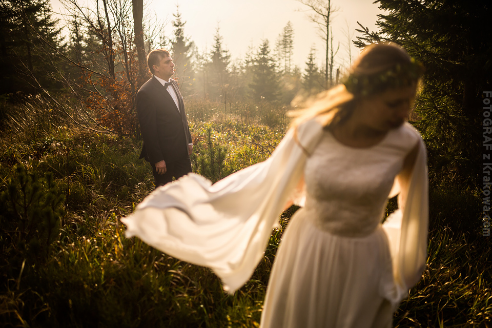 Plener Ani i Michała okazał się wyjątkowym przeżyciem estetycznym. Już od dawna mgła, wiatr, stary las chodziły mi po głowie jako plenerowa sceneria. Tego dnia było wszystko czego chcieliśmy! Było świetnie! …Chce więcej:)