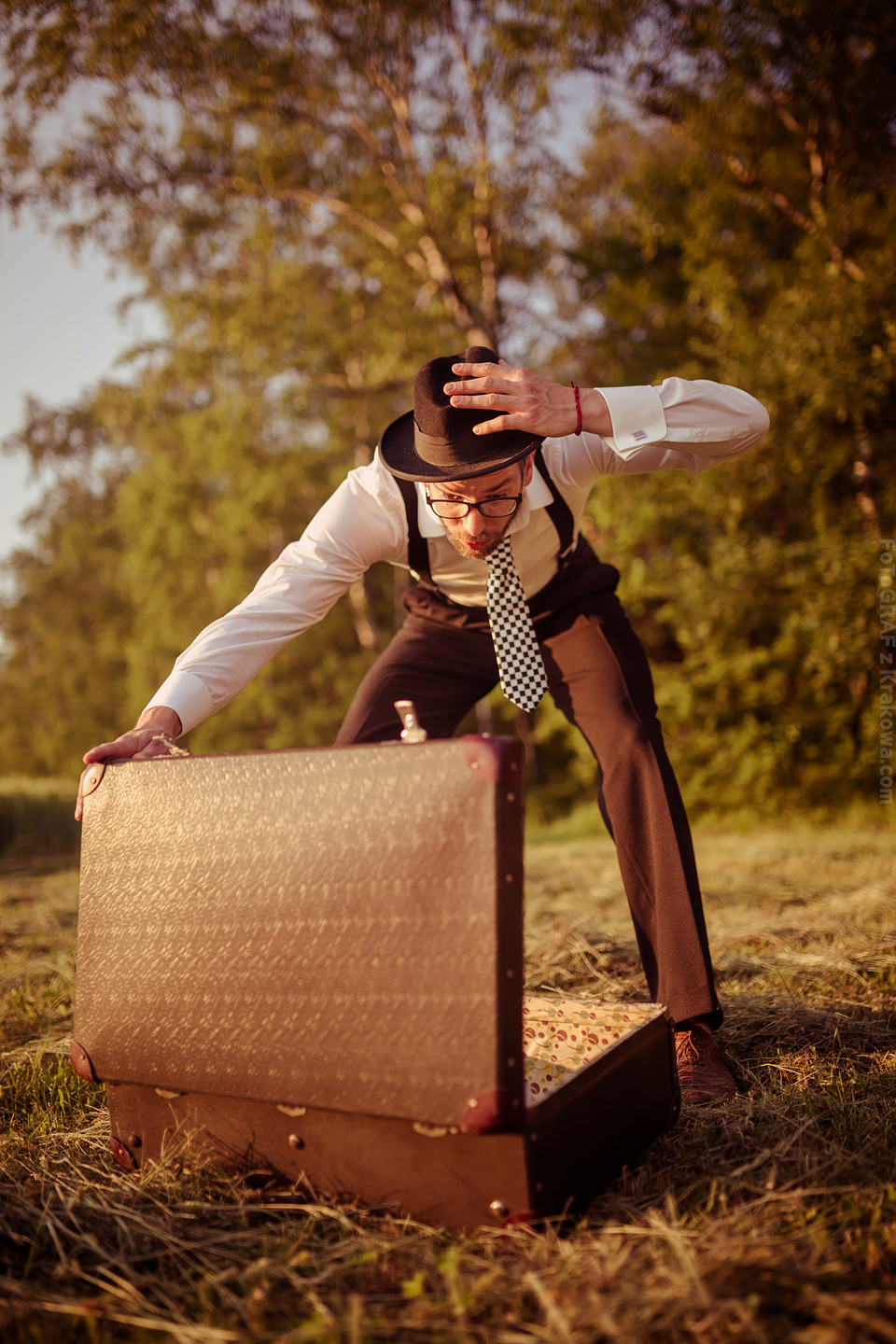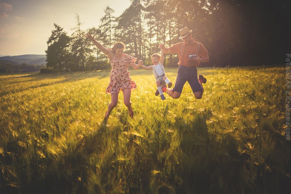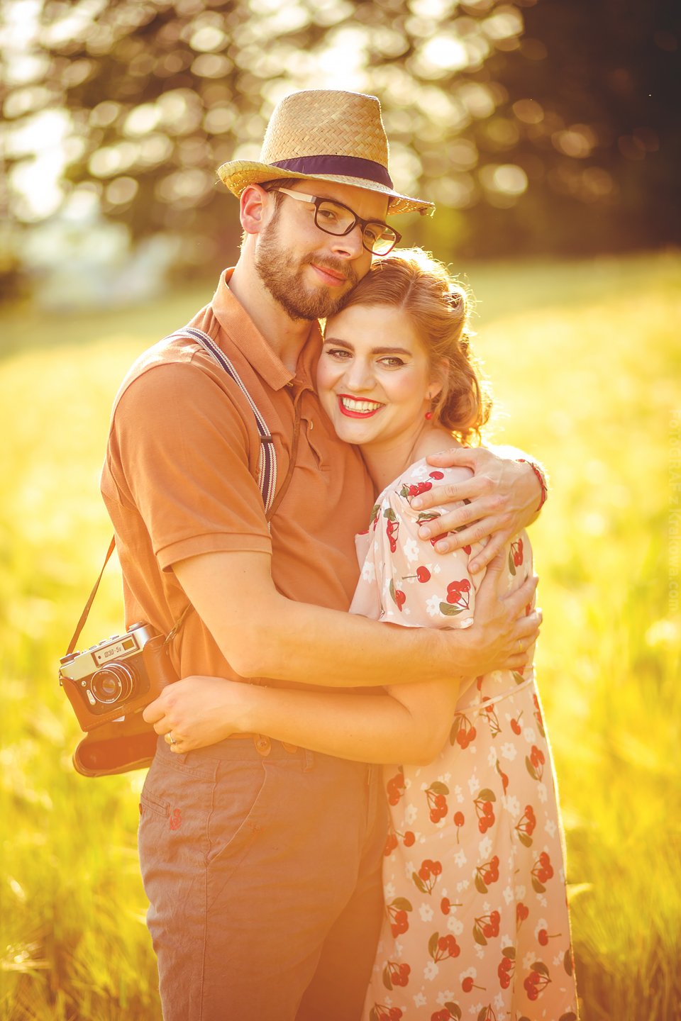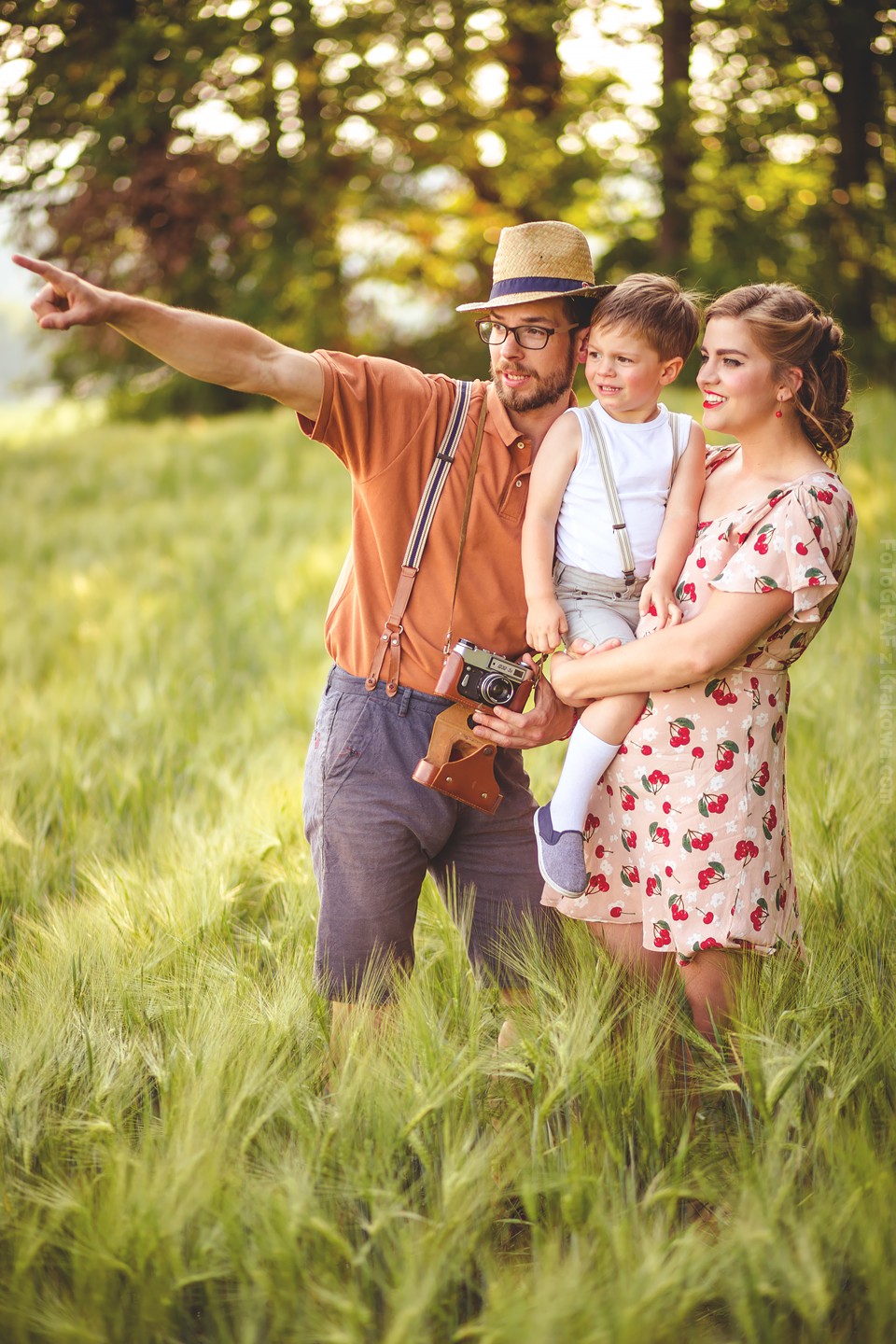 Ależ ja uwielbiam takich szaleńców! 🙂 Ale zacznijmy od początku: Pomysł na sesję vintage chodził za mną już troszkę czasu, jednak gdy zrobiło się zupełne lato jakoś wszystko się nagle zgrało: Kapitalna rodzinka, czas, pogoda, miejsce… Pomysł na taką sesję Lidka z Benkiem przyjęli od razu, a ich zaangażowanie przerosło moje oczekiwania już wtedy, gdy usłyszałem – Wiesz Kuba, my nie mamy ciuchów z lat 60. ale takie w stylu lat 50. się znajdą 😀 Już wtedy wiedziałem, że postarają się o stylizację na maksa! Mi pozostało znaleźć sielankowe miejsce i jaaaazda! Przedstawiam Wam Lidkę, Benka oraz ich przesłodkiego Tytusa! Ach, byłbym zapomniał – poznajcie również ich czworonoga Jaskra!