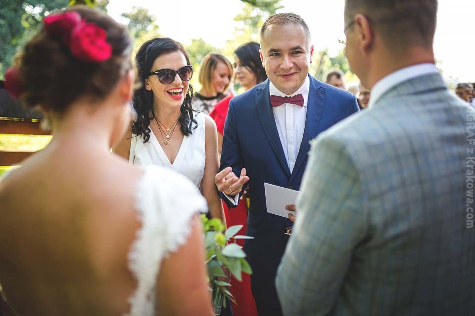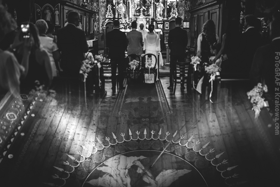 Od dawna domyślałem się, że to może być wyjątkowy dzień – i nie pomyliłem się:) Gdy tylko Ania przedstawiła mi szczegóły jej ślubu, wiedziałem że ten reportaż to będzie czysta przyjemność. Dopracowane najdrobniejsze szczegóły – czerwone-różane motywy, piękne buty, skromna – ale niezwykle elegancka suknia, garnitur w kratę który pasował z kolei do zabytkowej Warszawy. Do tego piękny drewniany kościół św. Sebastiana w Wieliczce i kapitalne otoczenie Dworu Sieraków. Były łzy i dużo radości… No i Sophie – ich piękna córeczka:) Kropką nad i była cygańska, kolorowa zabawa zamiast oczepin! Paweł z Anią – jesteście niesamowitą Parą którą fotografowałem z wielką przyjemnością! Z niecierpliwością czekam na Wasz plener na Wyspach:) Poniżej moje ulubione kadry, cała reszta zdjęć już niebawem. PS: Ania jeszcze raz dziękuje za piękne kwiaty 🙂