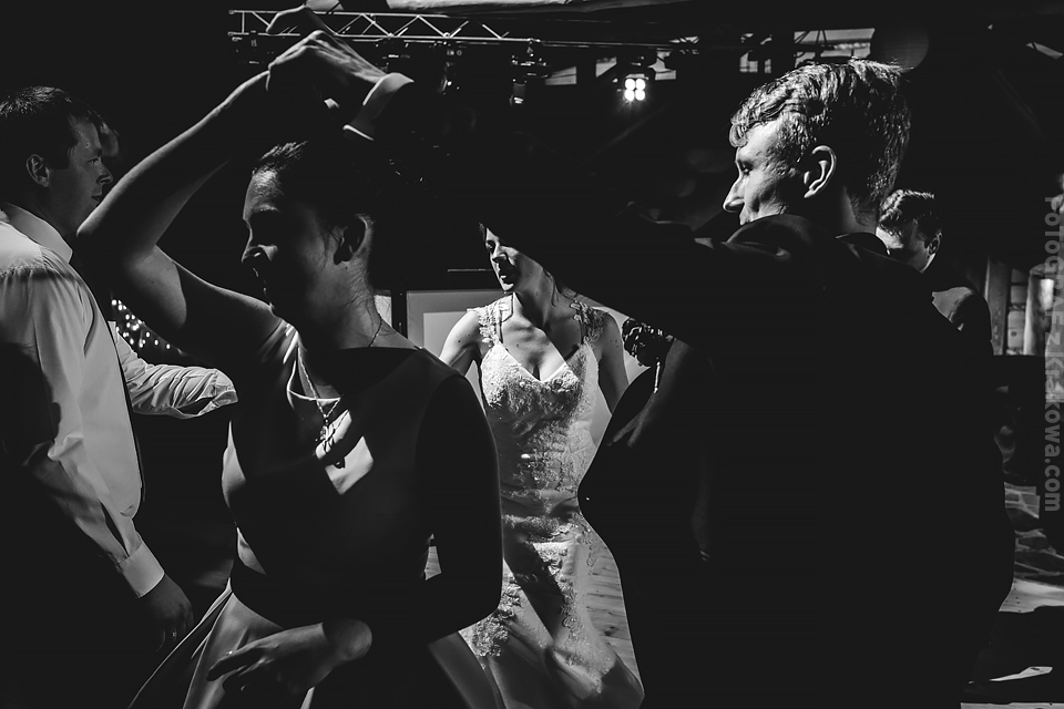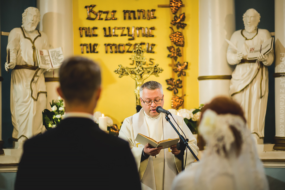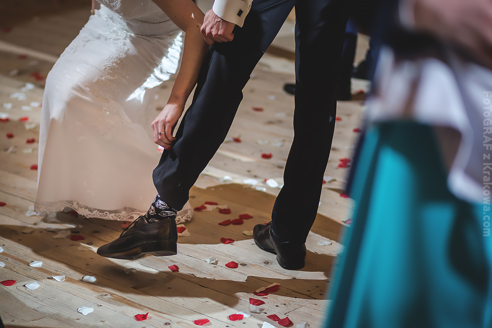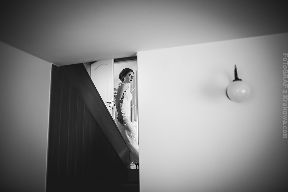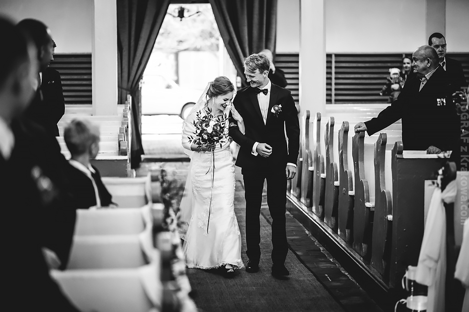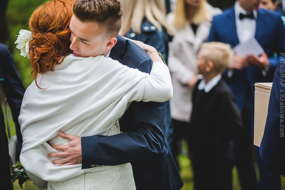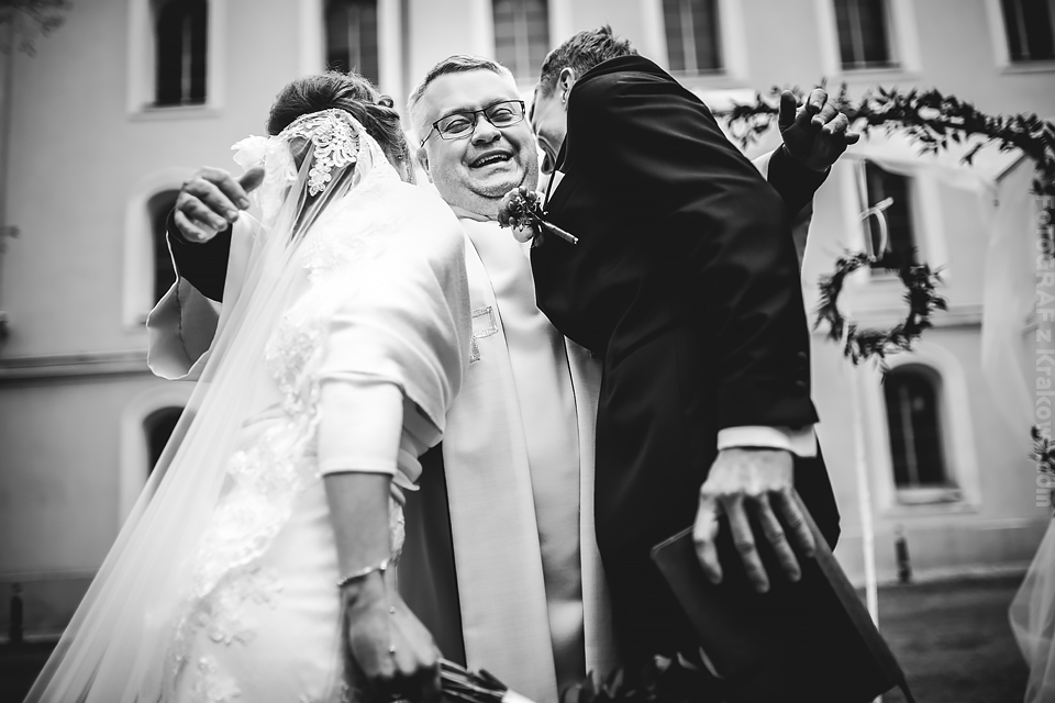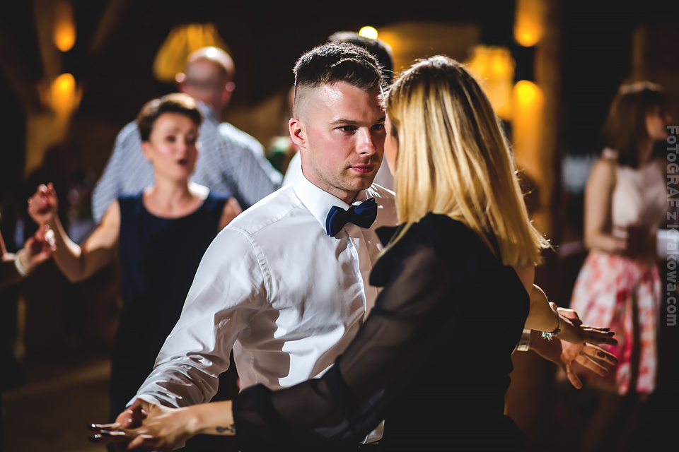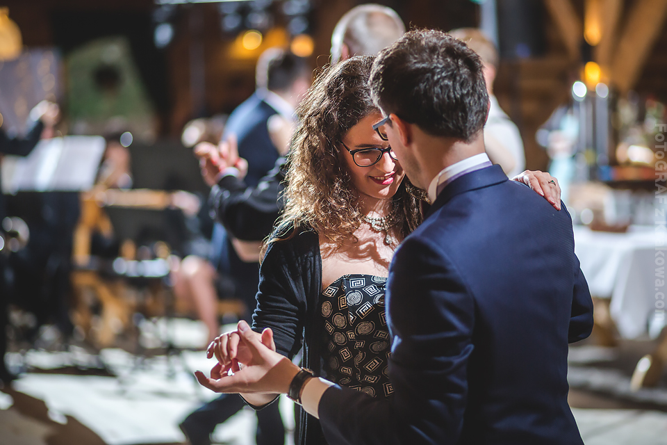To był naprawdę mega dzień. Jak to mówią wspinacze – był warun;) Bo właśnie tak się składa, że Marcina, poznałem podczas wspinaczki w podkrakowskich skałach. Niedługo potem poznałem również jego narzeczoną, a teraz żonę:) – Ole . Zaczęła się naprawdę fajna wspinaczkowa przyjaźń i wspólne wyjazdy w skały. Dlatego gdy zostałem wybrany na ich fotografa, naprawdę szczerze się ucieszyłem:) Marcin to skromny facet z wielkim bickiem, który wspina się po naprawdę trudnych drogach, a jego piękna Ola – oddana bez końca zwierzętom i grze na saksofonie. To ludzie z pięknymi pasjami i z wielkimi serduchami do siebie i do tego co robią. Ich wielki dzień zaczął się deszczowo i również tak zakończył, ale najważniejsze momenty udało się obejść na sucho;) Ślub odbył się w Starym Bielsku z przekapitalnym księdzem, który na przysięgę zaprosił wszystkich na zewnątrz – do ogrodu:) Łzy, tysiąc uśmiechów, moc życzeń i nieco ciasne obrączki 😀 To był piękny ślub. Wesele nie mogło być inne! Świetna atmosfera którą stworzyli goście, profesjonalny wodzirej, Big Band w którym gra Ola, zimne ognie, taniec w chmurach… – czego można chcieć więcej? Ja nie potrzebowałem w ten dzień absolutnie nic więcej 🙂 Było mega, była moc;)Do zobaczenia na plenerze… no i w skałach;), a tymczasem zapraszam do moich ulubionych zdjęć z tego dnia, oraz do posłuchania muzyki:)