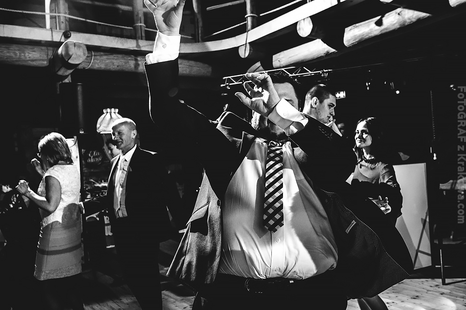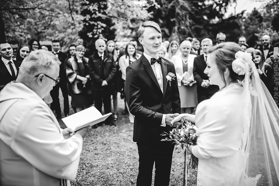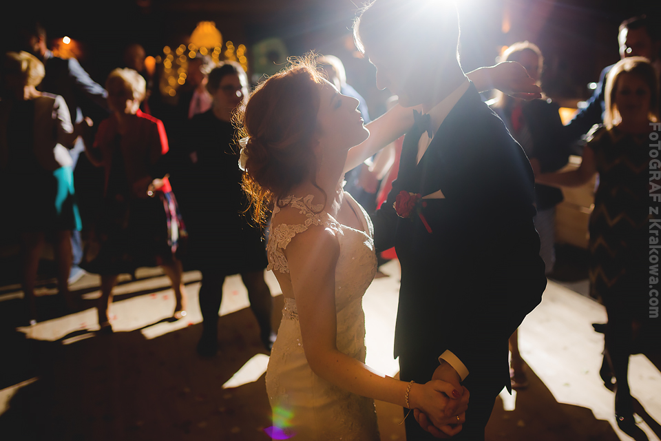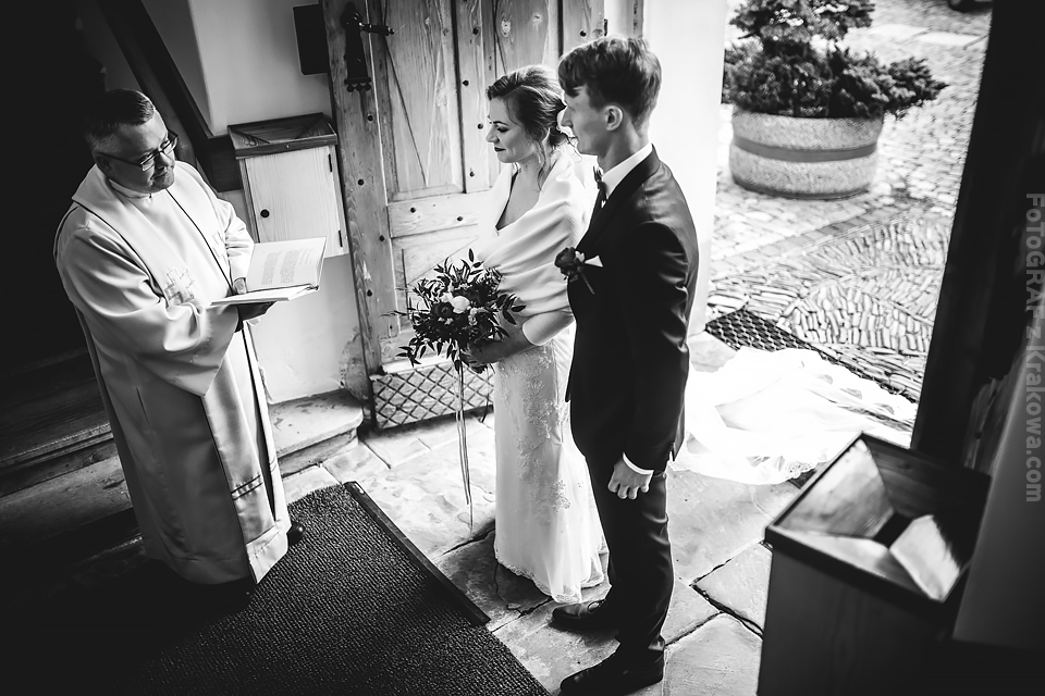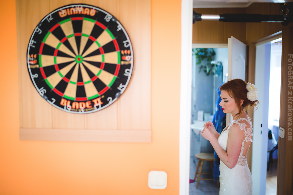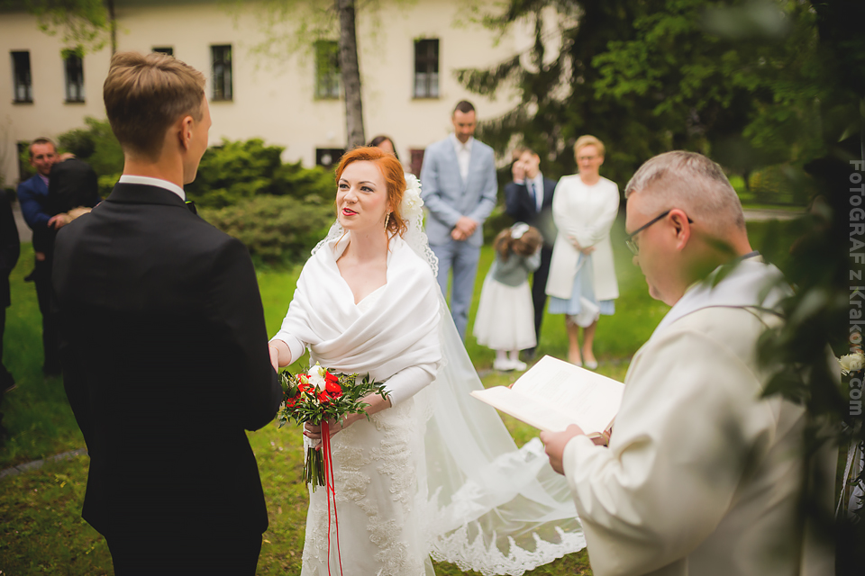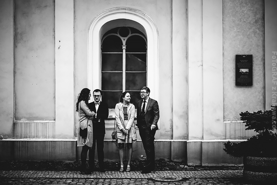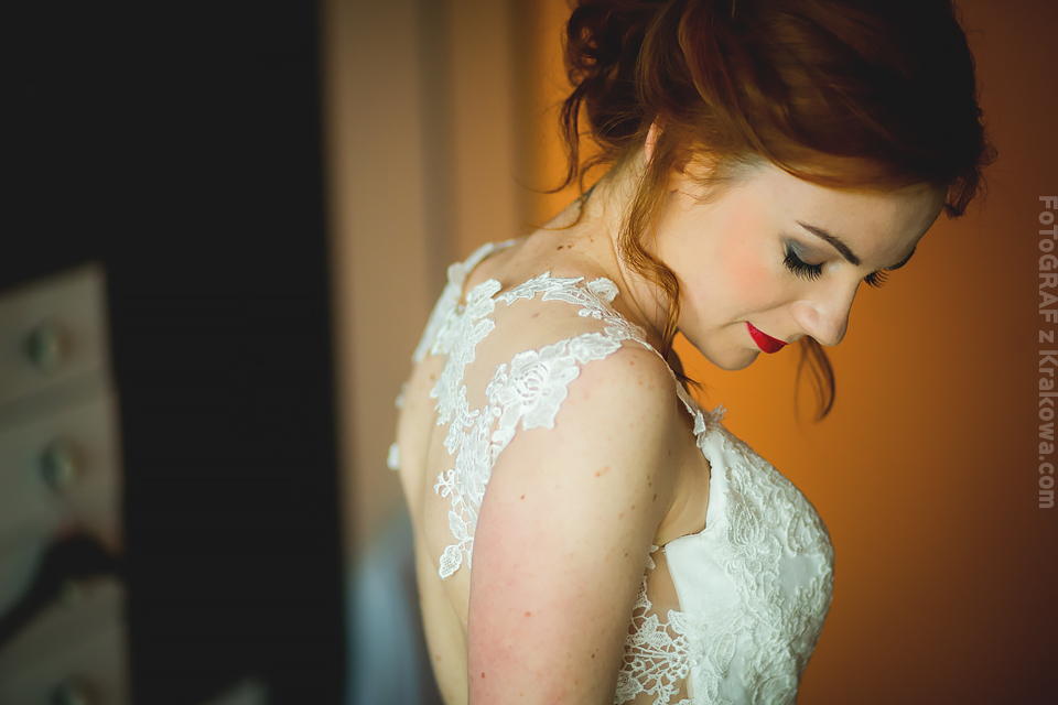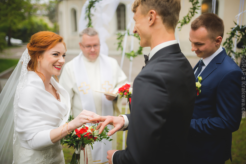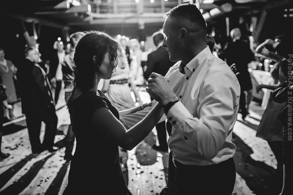 To był naprawdę mega dzień. Jak to mówią wspinacze – był warun;) Bo właśnie tak się składa, że Marcina, poznałem podczas wspinaczki w podkrakowskich skałach. Niedługo potem poznałem również jego narzeczoną, a teraz żonę:) – Ole . Zaczęła się naprawdę fajna wspinaczkowa przyjaźń i wspólne wyjazdy w skały. Dlatego gdy zostałem wybrany na ich fotografa, naprawdę szczerze się ucieszyłem:) Marcin to skromny facet z wielkim bickiem, który wspina się po naprawdę trudnych drogach, a jego piękna Ola – oddana bez końca zwierzętom i grze na saksofonie. To ludzie z pięknymi pasjami i z wielkimi serduchami do siebie i do tego co robią. Ich wielki dzień zaczął się deszczowo i również tak zakończył, ale najważniejsze momenty udało się obejść na sucho;) Ślub odbył się w Starym Bielsku z przekapitalnym księdzem, który na przysięgę zaprosił wszystkich na zewnątrz – do ogrodu:) Łzy, tysiąc uśmiechów, moc życzeń i nieco ciasne obrączki 😀 To był piękny ślub. Wesele nie mogło być inne! Świetna atmosfera którą stworzyli goście, profesjonalny wodzirej, Big Band w którym gra Ola, zimne ognie, taniec w chmurach… – czego można chcieć więcej? Ja nie potrzebowałem w ten dzień absolutnie nic więcej 🙂 Było mega, była moc;)Do zobaczenia na plenerze… no i w skałach;), a tymczasem zapraszam do moich ulubionych zdjęć z tego dnia, oraz do posłuchania muzyki:)