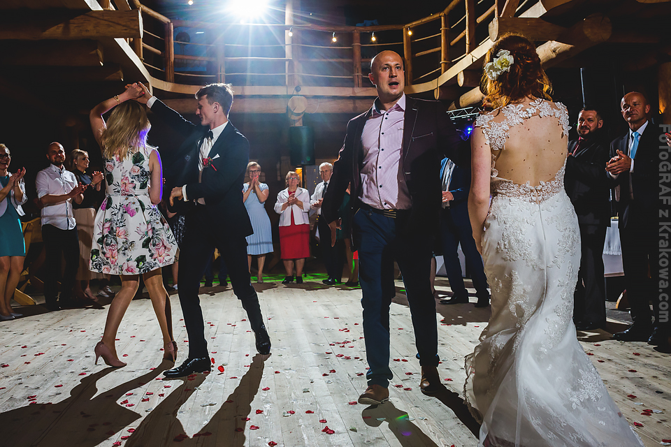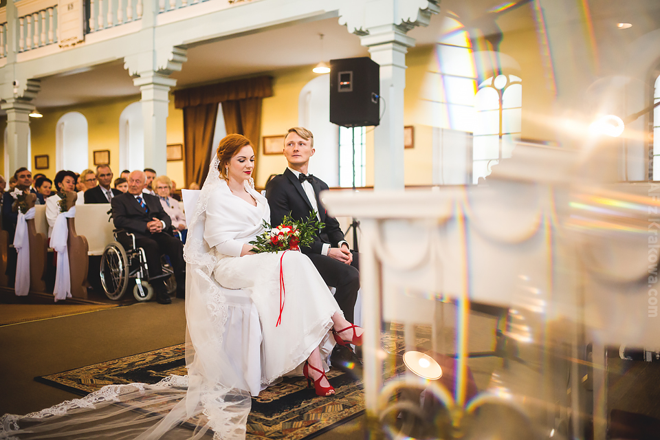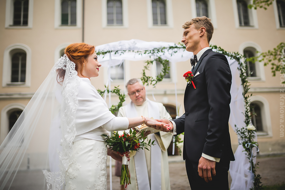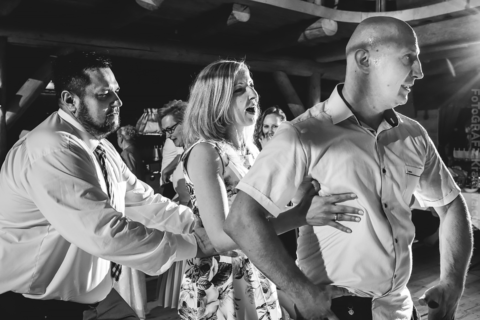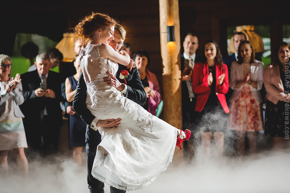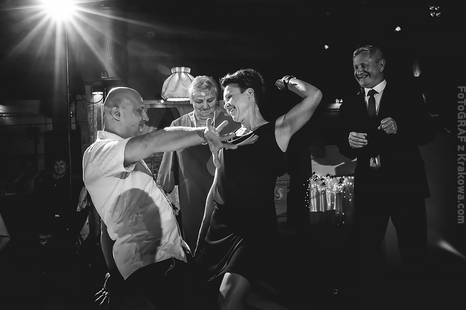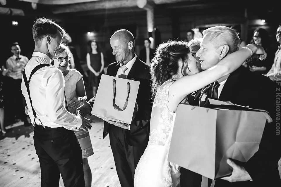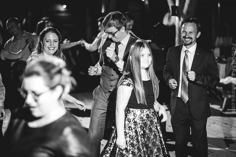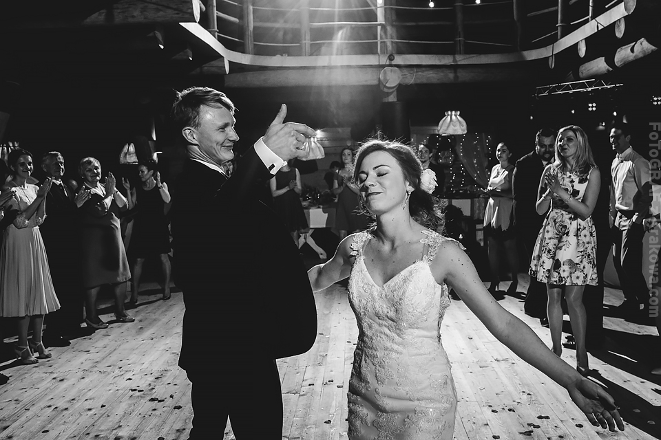 To był naprawdę mega dzień. Jak to mówią wspinacze – był warun;) Bo właśnie tak się składa, że Marcina, poznałem podczas wspinaczki w podkrakowskich skałach. Niedługo potem poznałem również jego narzeczoną, a teraz żonę:) – Ole . Zaczęła się naprawdę fajna wspinaczkowa przyjaźń i wspólne wyjazdy w skały. Dlatego gdy zostałem wybrany na ich fotografa, naprawdę szczerze się ucieszyłem:) Marcin to skromny facet z wielkim bickiem, który wspina się po naprawdę trudnych drogach, a jego piękna Ola – oddana bez końca zwierzętom i grze na saksofonie. To ludzie z pięknymi pasjami i z wielkimi serduchami do siebie i do tego co robią. Ich wielki dzień zaczął się deszczowo i również tak zakończył, ale najważniejsze momenty udało się obejść na sucho;) Ślub odbył się w Starym Bielsku z przekapitalnym księdzem, który na przysięgę zaprosił wszystkich na zewnątrz – do ogrodu:) Łzy, tysiąc uśmiechów, moc życzeń i nieco ciasne obrączki 😀 To był piękny ślub. Wesele nie mogło być inne! Świetna atmosfera którą stworzyli goście, profesjonalny wodzirej, Big Band w którym gra Ola, zimne ognie, taniec w chmurach… – czego można chcieć więcej? Ja nie potrzebowałem w ten dzień absolutnie nic więcej 🙂 Było mega, była moc;)Do zobaczenia na plenerze… no i w skałach;), a tymczasem zapraszam do moich ulubionych zdjęć z tego dnia, oraz do posłuchania muzyki:)