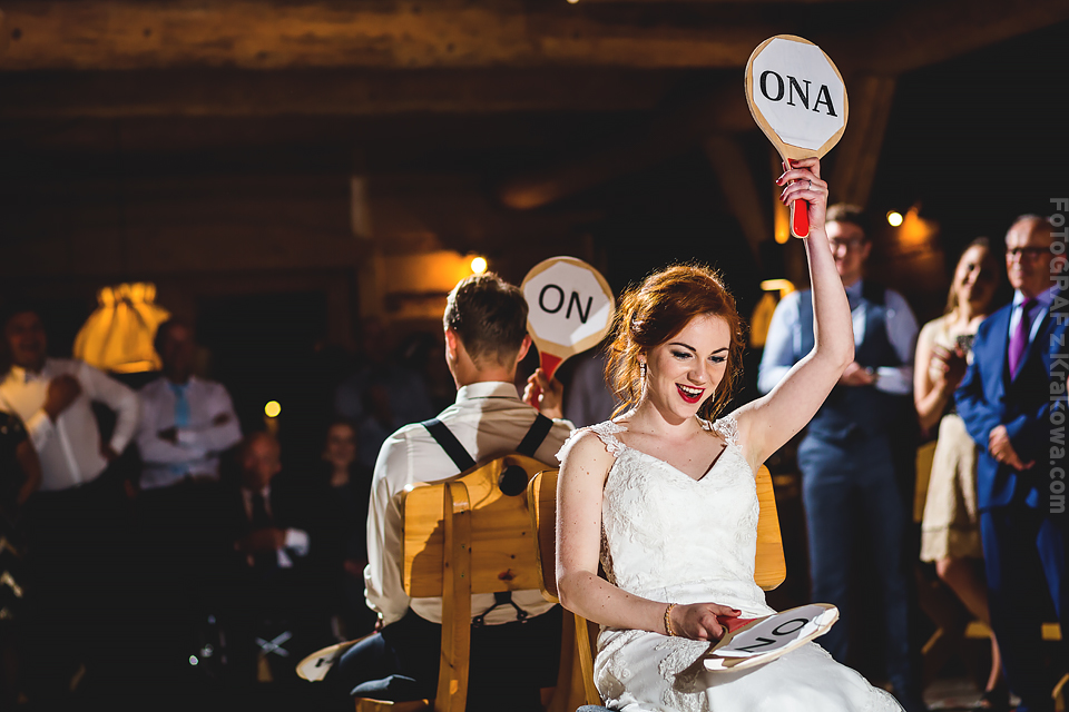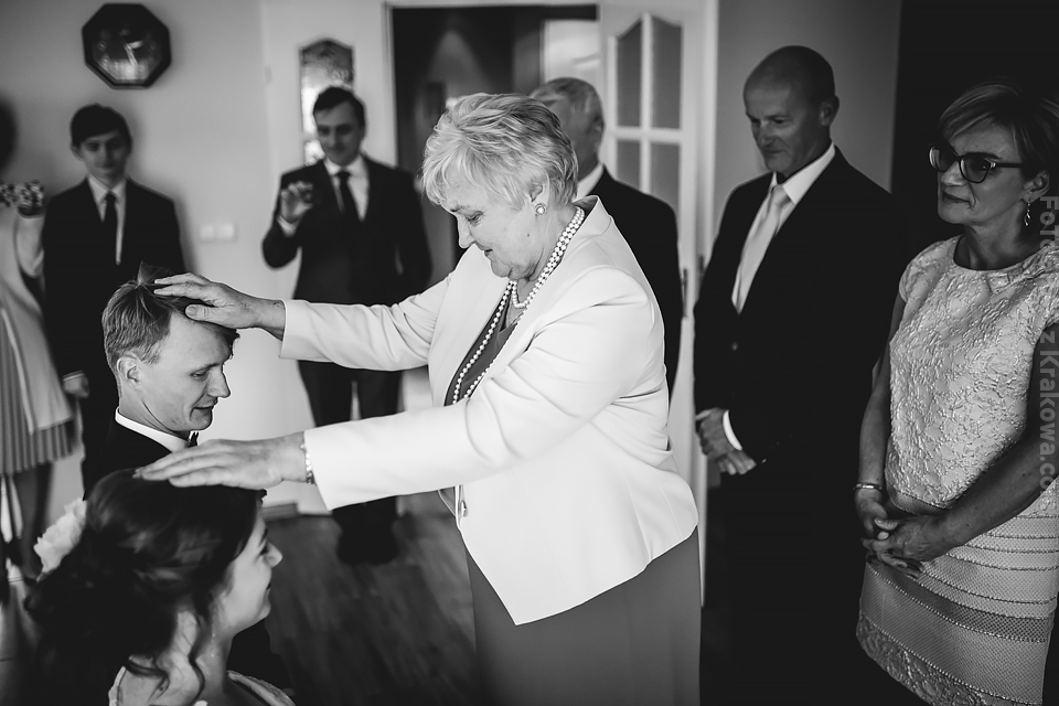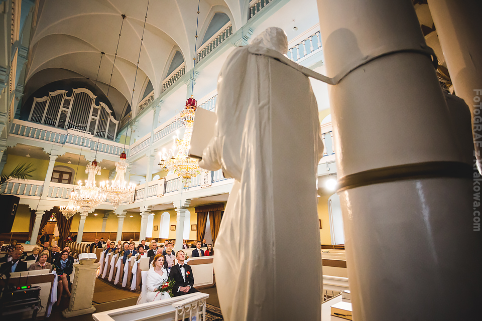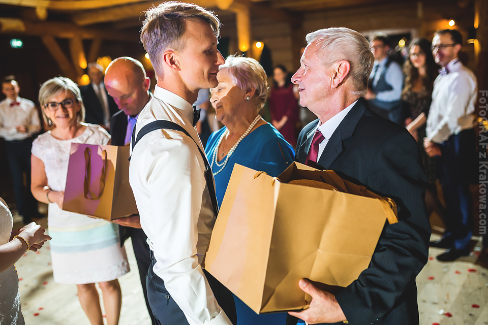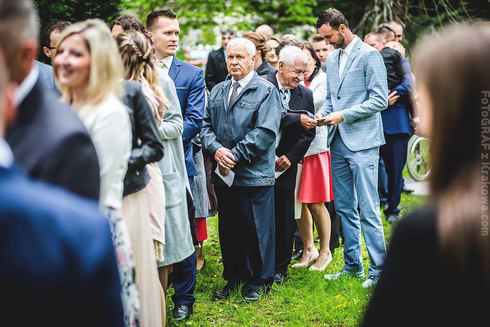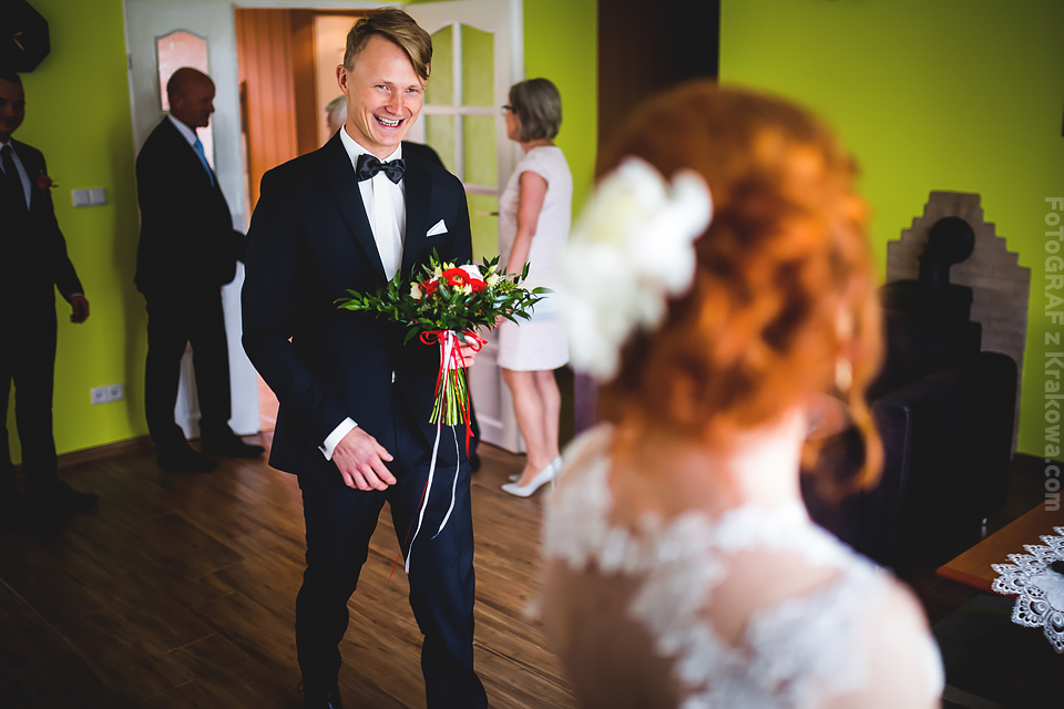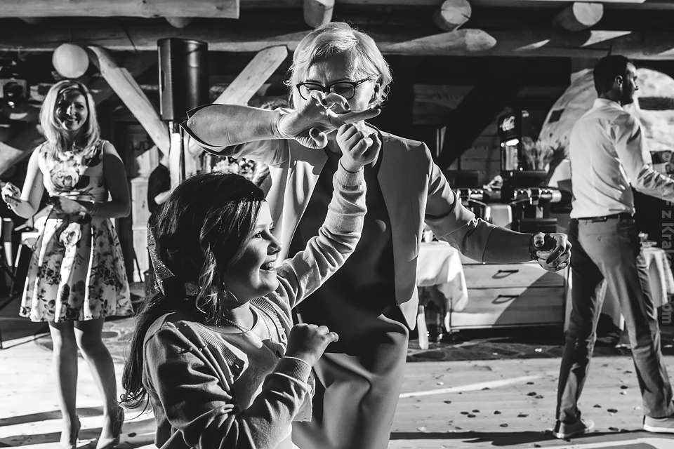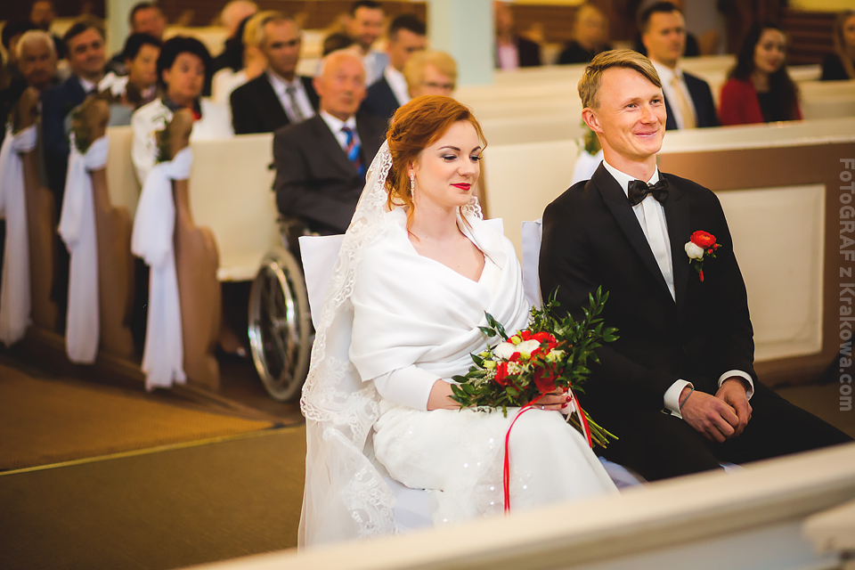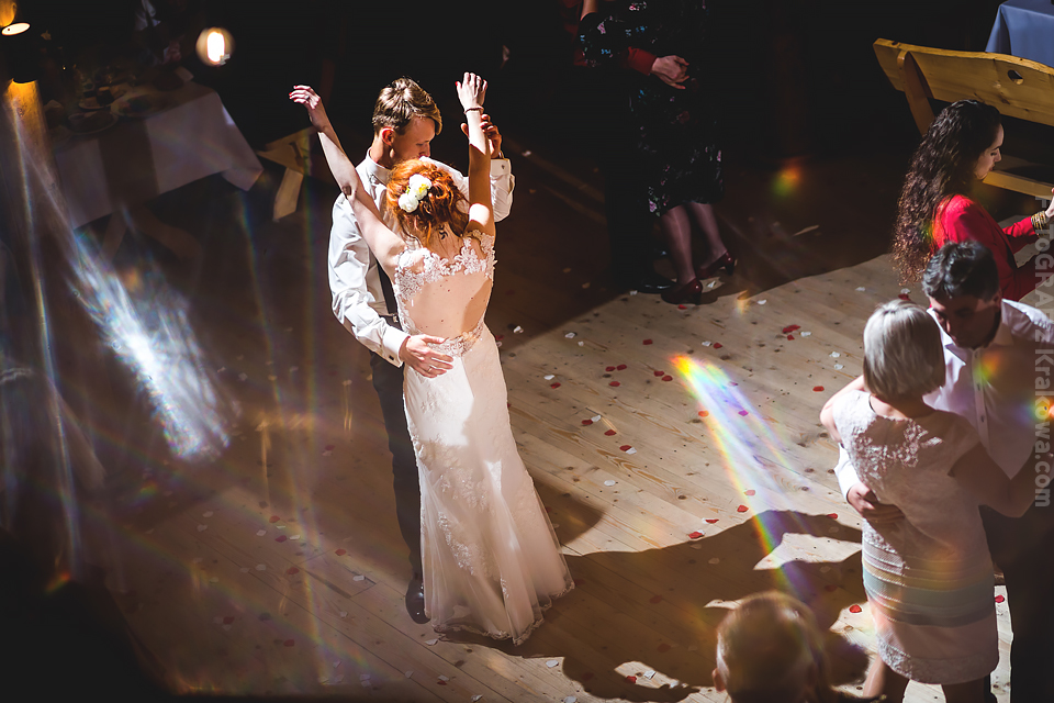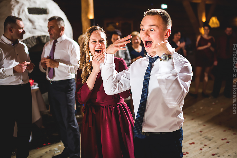 To był naprawdę mega dzień. Jak to mówią wspinacze – był warun;) Bo właśnie tak się składa, że Marcina, poznałem podczas wspinaczki w podkrakowskich skałach. Niedługo potem poznałem również jego narzeczoną, a teraz żonę:) – Ole . Zaczęła się naprawdę fajna wspinaczkowa przyjaźń i wspólne wyjazdy w skały. Dlatego gdy zostałem wybrany na ich fotografa, naprawdę szczerze się ucieszyłem:) Marcin to skromny facet z wielkim bickiem, który wspina się po naprawdę trudnych drogach, a jego piękna Ola – oddana bez końca zwierzętom i grze na saksofonie. To ludzie z pięknymi pasjami i z wielkimi serduchami do siebie i do tego co robią. Ich wielki dzień zaczął się deszczowo i również tak zakończył, ale najważniejsze momenty udało się obejść na sucho;) Ślub odbył się w Starym Bielsku z przekapitalnym księdzem, który na przysięgę zaprosił wszystkich na zewnątrz – do ogrodu:) Łzy, tysiąc uśmiechów, moc życzeń i nieco ciasne obrączki 😀 To był piękny ślub. Wesele nie mogło być inne! Świetna atmosfera którą stworzyli goście, profesjonalny wodzirej, Big Band w którym gra Ola, zimne ognie, taniec w chmurach… – czego można chcieć więcej? Ja nie potrzebowałem w ten dzień absolutnie nic więcej 🙂 Było mega, była moc;)Do zobaczenia na plenerze… no i w skałach;), a tymczasem zapraszam do moich ulubionych zdjęć z tego dnia, oraz do posłuchania muzyki:)