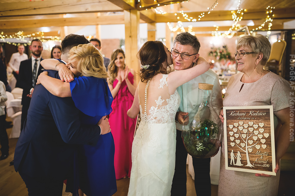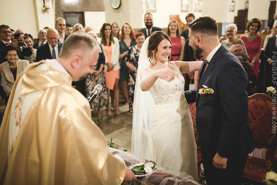 Dzień miazga:) Tak śmiało mogę określić to co się działo w pierwszą sobotę czerwca. Zakochańce dwa – Marta i Kamil – bohaterowie tego dnia, wiecznie uśmiechnięci lub płaczący ze wzruszenia, wpatrzeni w siebie i zakręceni na swoim punkcie… Modele jak z filmu, cudowna rodzinka, wzruszający ślub, i stodoła w której odbyła się zwariowana impreza pod kierunkiem DJ GMusic4You. Czego chcieć więcej w taki dzień ?… Mi niczego 🙂