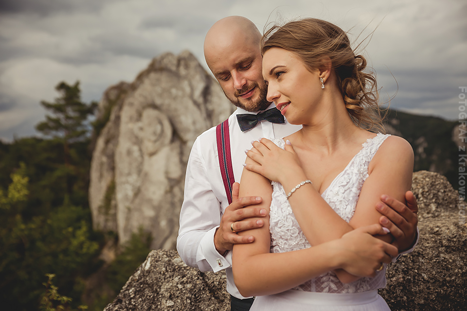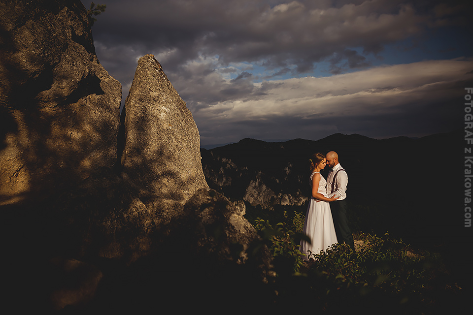 Przedstawiam Wam zdjęcia z pleneru ślubnego, jaki miałem ostatnio wielką przyjemność wykonać. Na cel obraliśmy pewne niezwykłe miejsce na Słowacji… Światło tego dnia nie rozpieszczało, więc postanowiliśmy być cierpliwi a ja wierzyłem w swoje szczęście do pogody;) I tym razem również mnie nie ominęło. Na zachód słońca, w najdalszym miejscu naszej małej wyprawy, zaświeciło kapitalne ciepłe światełko… Mniam! Co do miejsca, Martynka od dawna wypatrzyła je w moich zdjęciach i właśnie w takich klimatach chciała sesję. Tomek – krajobrazowo widział już wszystko i ciężko jest go czymś zaskoczyć. Jednak sam przyznał… Te skały i klimat wzgórz robią ogromne wrażenie. Dopisało nam wszystko co chcieliśmy.. oby więcej takich sesji! 🙂 Jak się podoba?