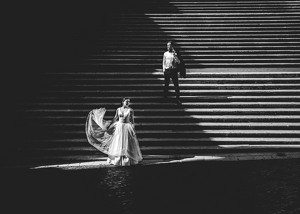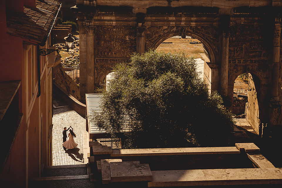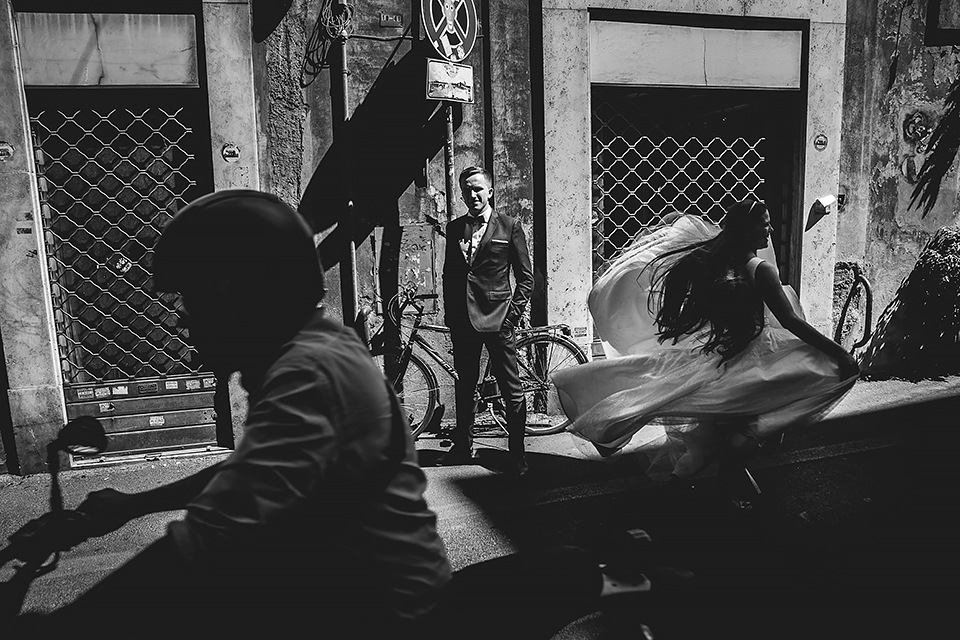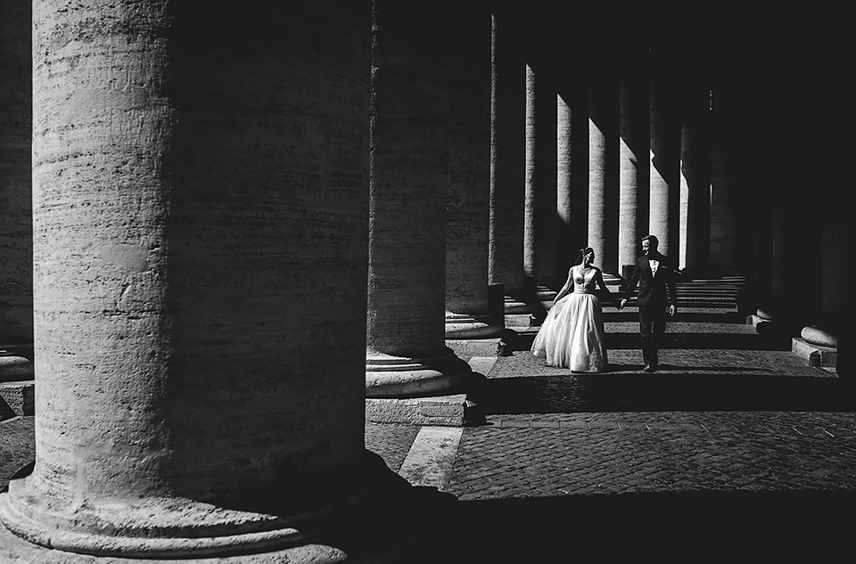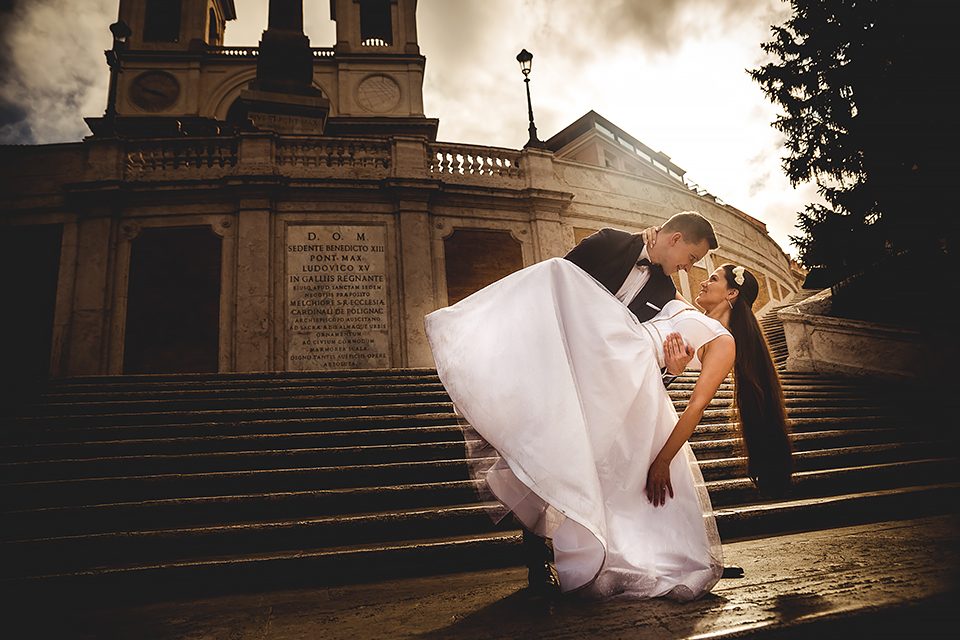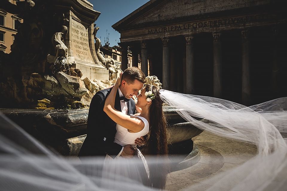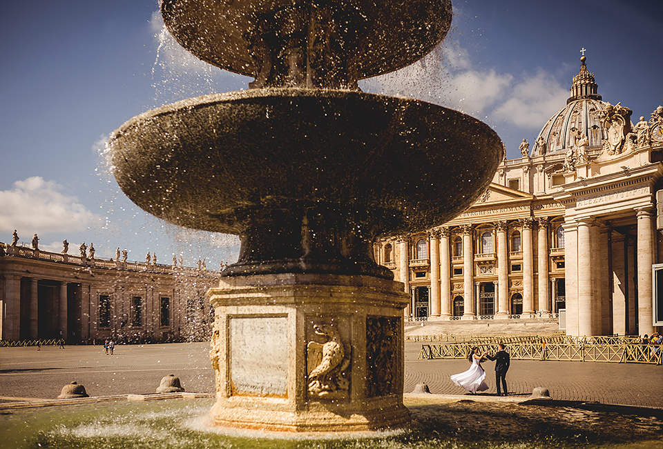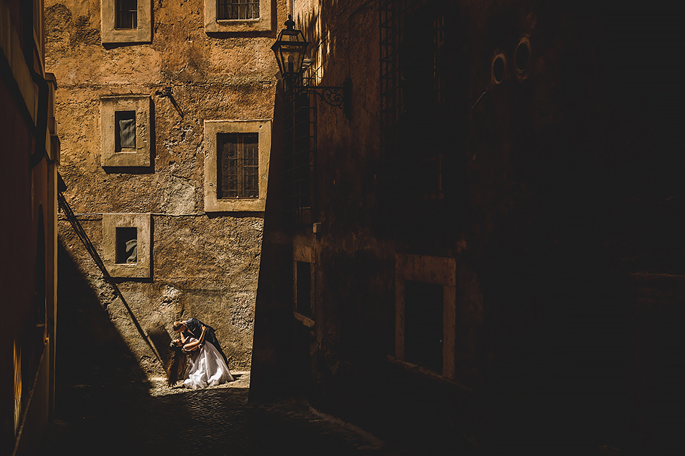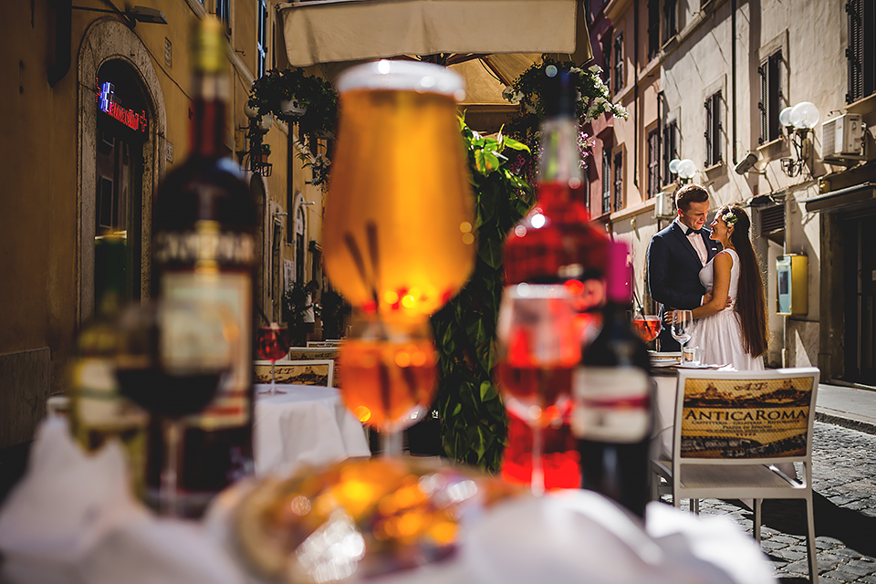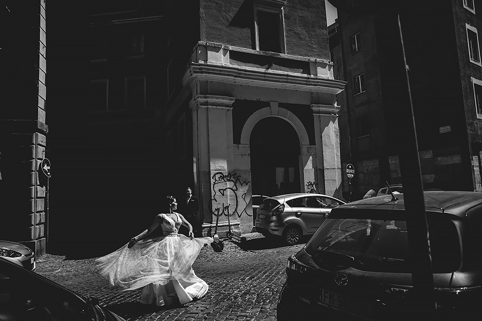 Wiosną kiedy lockdown uniemożliwił mi latanie na sesje zagraniczne, pogodziłem się że w tym roku raczej wszystkie sesje będą w Polsce;) Do czasu kiedy Asia i Kuba zaproponowali mi lot do Rzymu na ich poślubną sesje. W pierwszym momencie myślałem że absolutnie się nie zgodzę, ze strachu przed kwarantanną, zamknięciem granic, lotów… a wesel teraz dużo i nie mógłbym sobie pozwolić na takie ryzyko. Jednak przedyskutowaliśmy wszystkie za i przeciw i padła decyzja na TAK:) Jako człowiek kochający jesień i zimę i tolerujący temperaturę max 20st C, musiałem się zmierzyć z włoskim upałem 34st. … i to po raz drugi 😀 Jednak absolutnie ciekawe i pozytywne była nadzwyczaj mała liczba ludzi, którą obserwowaliśmy na kamerach internetowych będąc już na lotnisku. Rzeczywiście! Pod Coloseum nikogo, na Schodach Hiszpańskich pusto, pod Fontanną Di Trevi garstka turystów… Było to mimo wszystko zaskakujące… Asia była już kiedyś w tym mieście, ja w Rzymie byłem 3 lata temu i pamiętamy te tłumy. A teraz Rzym był cały dla nas:) Asia i Kuba kapitalnie znieśli trudy sesji, bo jednak sukienka i garnitur nie należą do przewiewnych ubrań:) Brawo dla Was! Dzięki serdeczne za wszystko:)