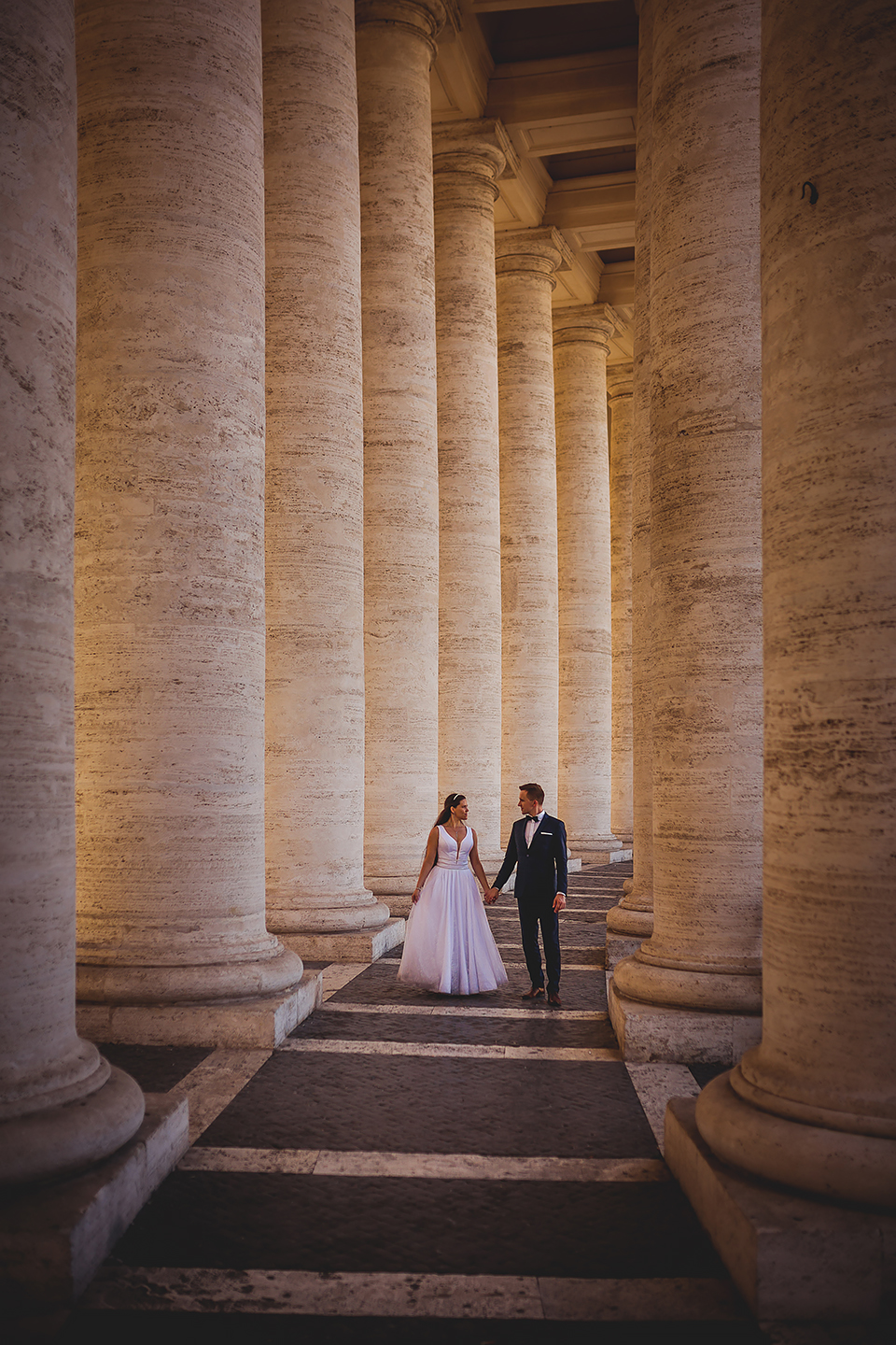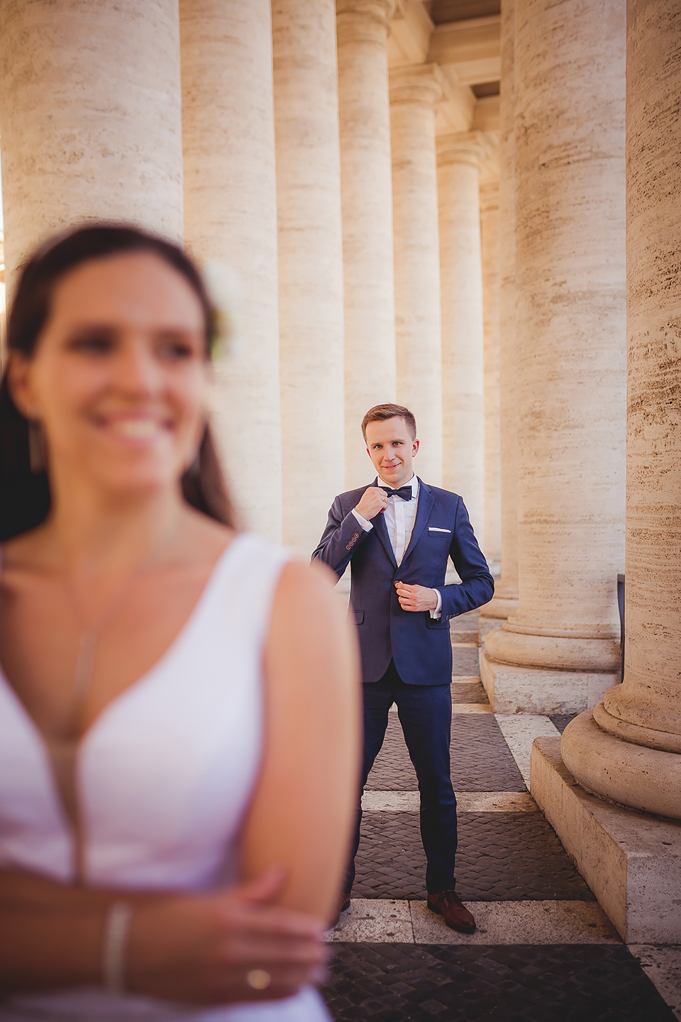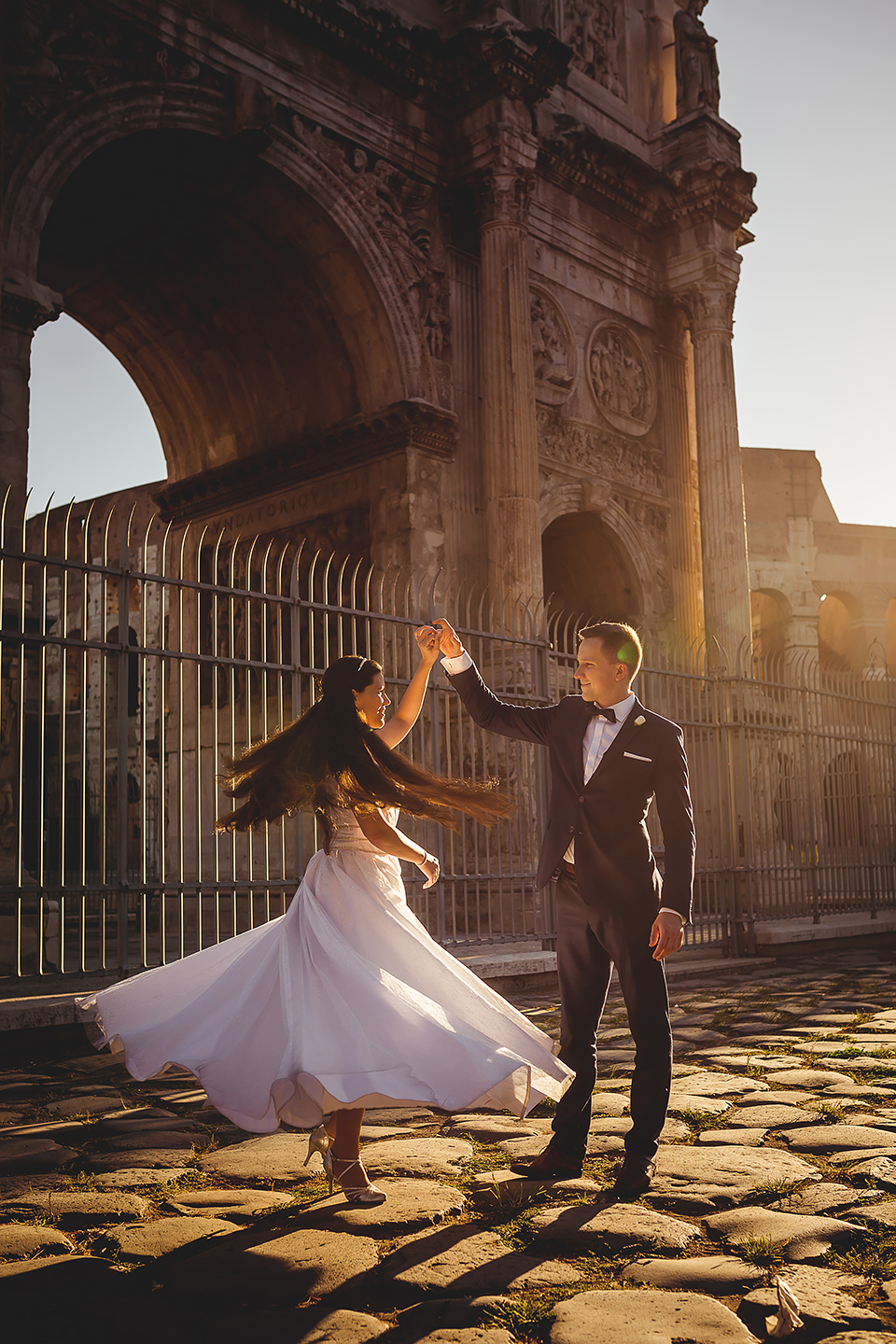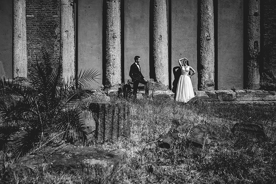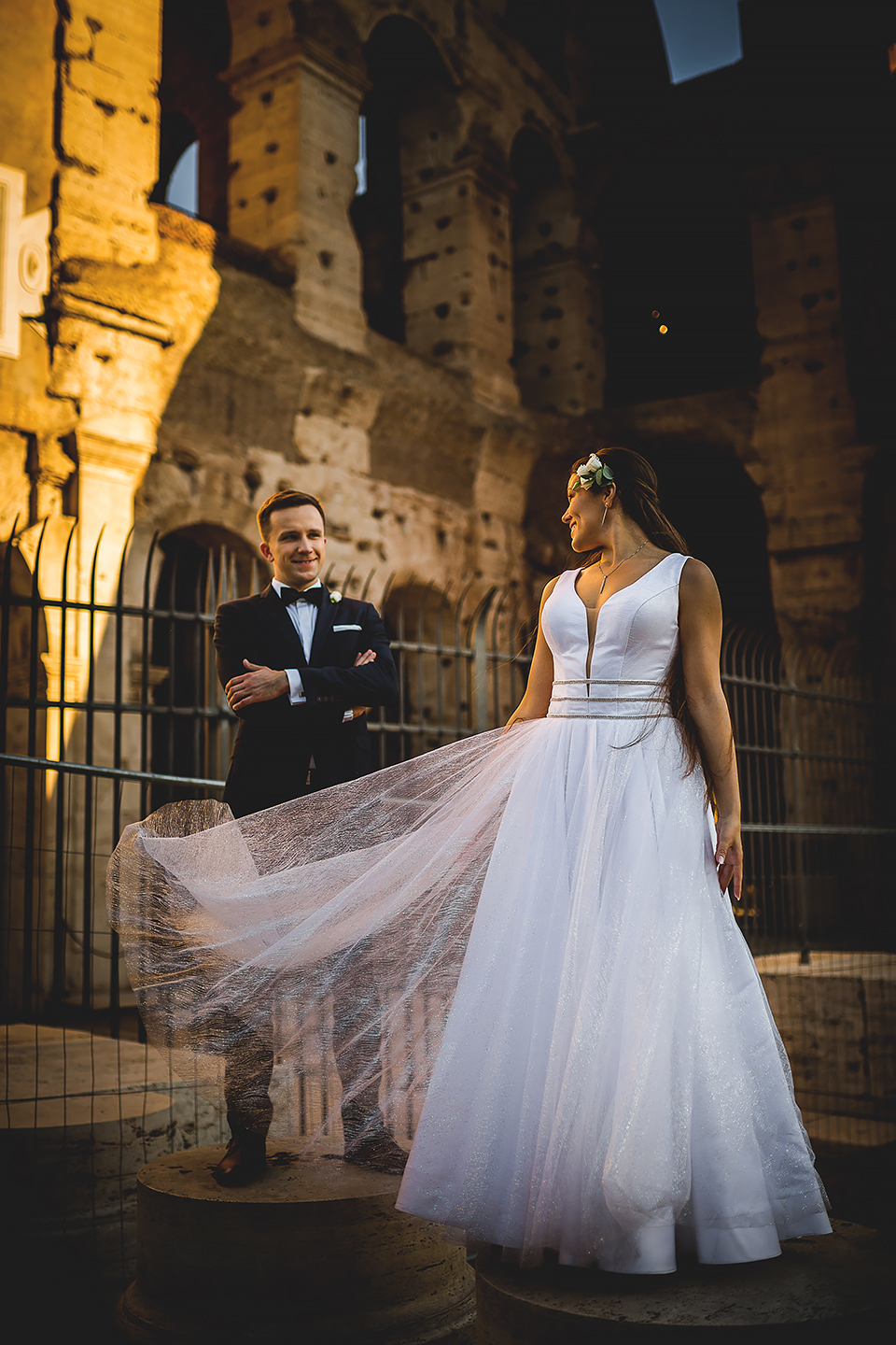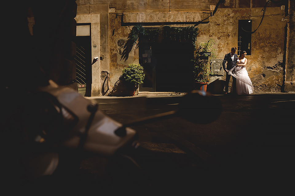 Wiosną kiedy lockdown uniemożliwił mi latanie na sesje zagraniczne, pogodziłem się że w tym roku raczej wszystkie sesje będą w Polsce;) Do czasu kiedy Asia i Kuba zaproponowali mi lot do Rzymu na ich poślubną sesje. W pierwszym momencie myślałem że absolutnie się nie zgodzę, ze strachu przed kwarantanną, zamknięciem granic, lotów… a wesel teraz dużo i nie mógłbym sobie pozwolić na takie ryzyko. Jednak przedyskutowaliśmy wszystkie za i przeciw i padła decyzja na TAK:) Jako człowiek kochający jesień i zimę i tolerujący temperaturę max 20st C, musiałem się zmierzyć z włoskim upałem 34st. … i to po raz drugi 😀 Jednak absolutnie ciekawe i pozytywne była nadzwyczaj mała liczba ludzi, którą obserwowaliśmy na kamerach internetowych będąc już na lotnisku. Rzeczywiście! Pod Coloseum nikogo, na Schodach Hiszpańskich pusto, pod Fontanną Di Trevi garstka turystów… Było to mimo wszystko zaskakujące… Asia była już kiedyś w tym mieście, ja w Rzymie byłem 3 lata temu i pamiętamy te tłumy. A teraz Rzym był cały dla nas:) Asia i Kuba kapitalnie znieśli trudy sesji, bo jednak sukienka i garnitur nie należą do przewiewnych ubrań:) Brawo dla Was! Dzięki serdeczne za wszystko:)