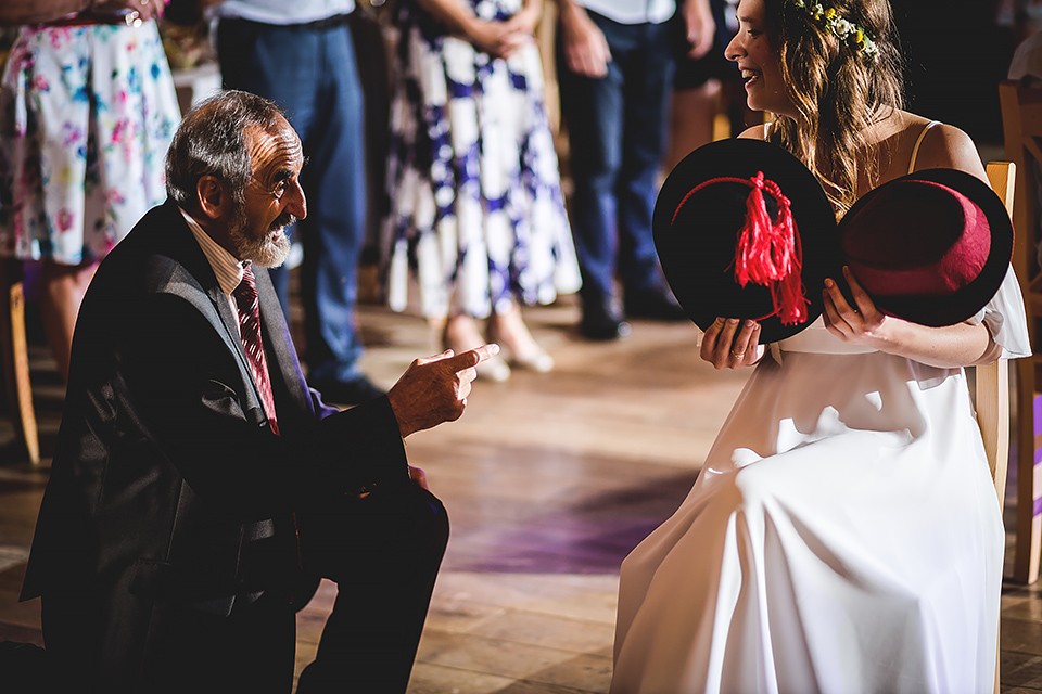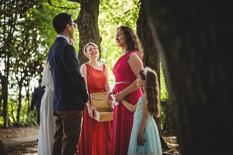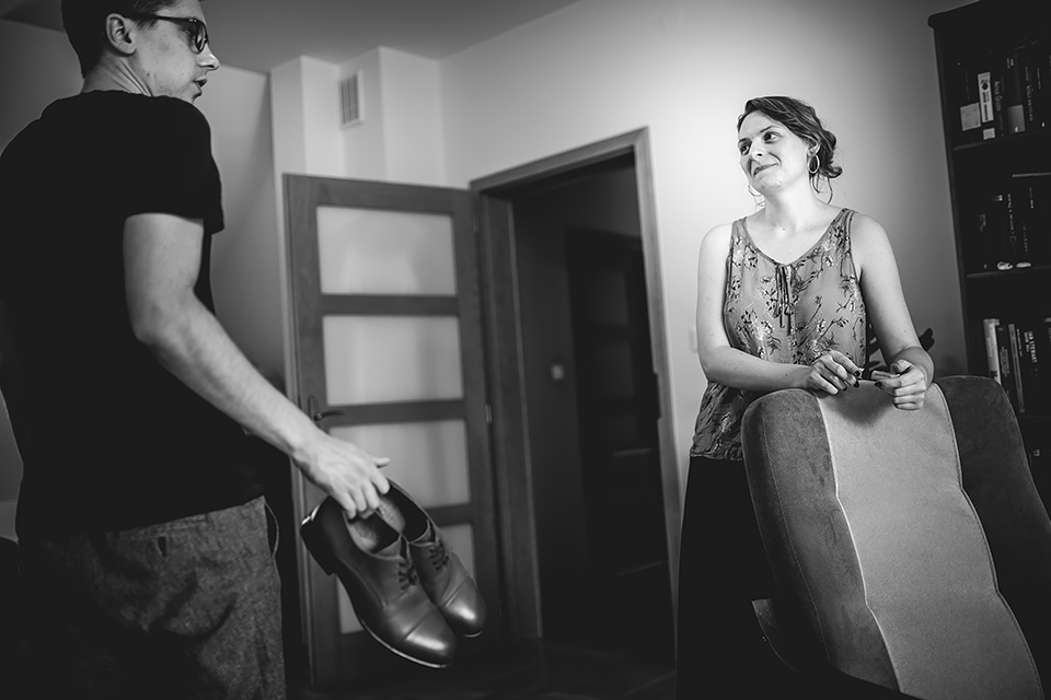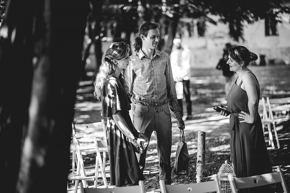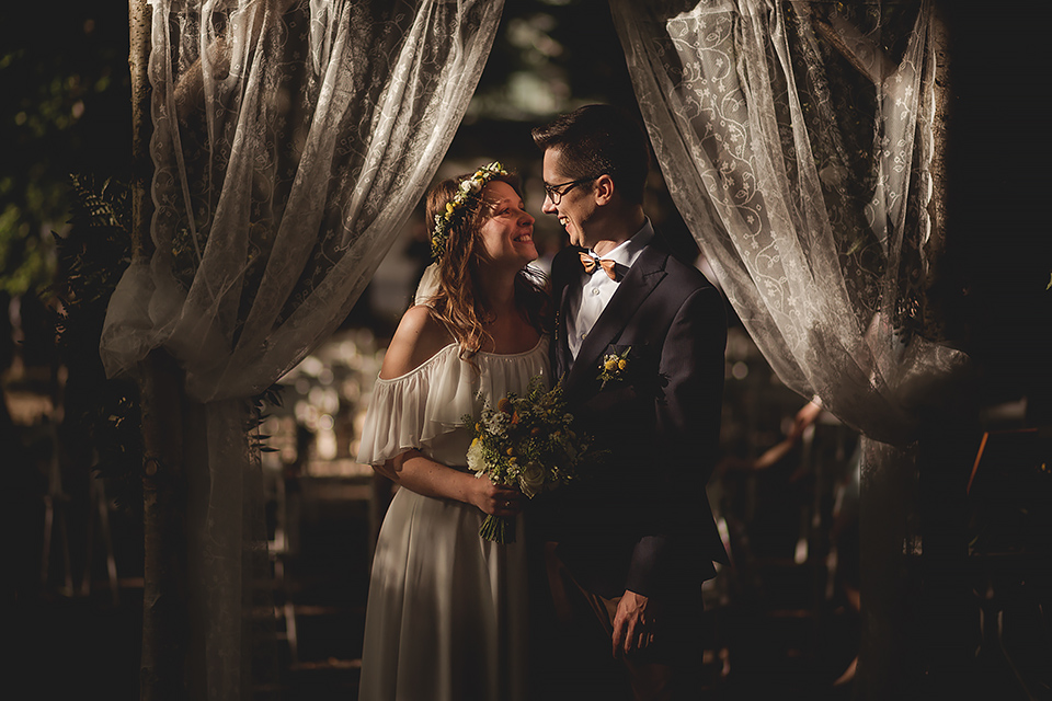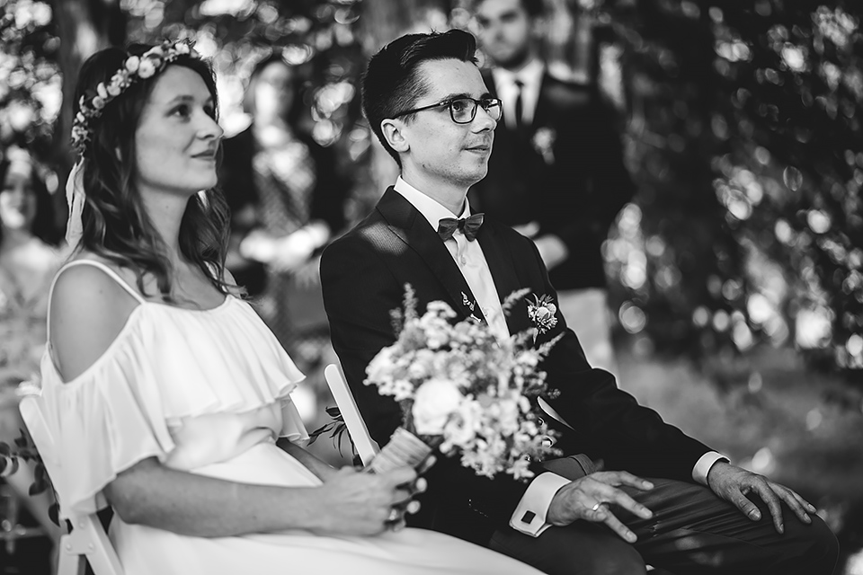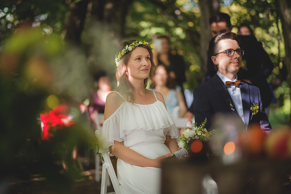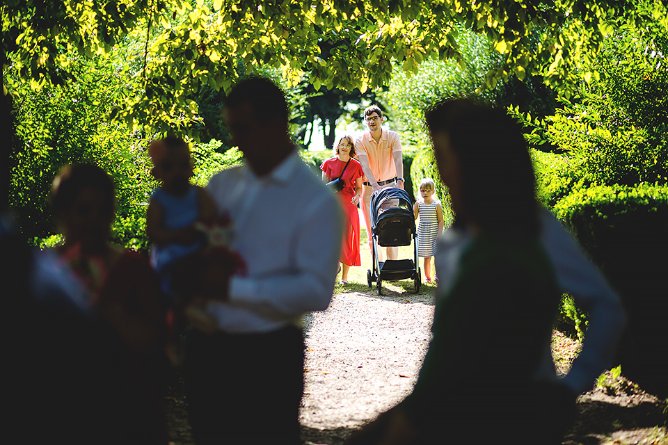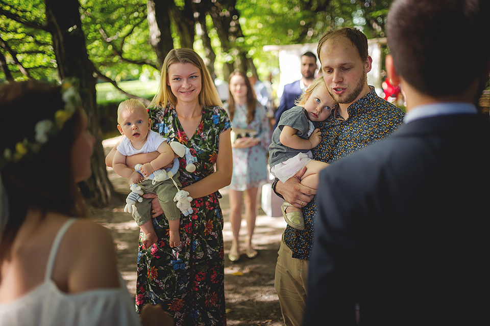 Na ten dzień czekałem z niecierpliwieniem;) Wiedziałem, że będzie oryginalnie więc pozostało trzymać mocno kciuki za pogodę! Ufff, nastał piękny i słoneczny dzień – idealnie na plenerowy ślub!… Jakimś cudem udało się wyprasować sukienkę, udało się też skombinować nagłośnienie na uroczystość (brawo Just!;). Maciek w między czasie miał lekcję jazdy starym samochodem, a Sylwia bardzo nie chciała makijażu, więc kompromisem kilka pociągnięć tuszem wystarczyło;) Klepsydra zaczęła odliczać czas, a więc w droge! Kapitalna aleja grabowa w Mogilanach i wystrój miejsca ceremonii wprost zwalał z nóg – ależ ładnie! Rozmowy z gośćmi, ostatnia próba mikrofonu i za kilka chwil było wielkie Taaaaak! Usmiechy, ryż, życzenia w cieniu starych drzew i można było jechać na imprezkę;) Na miejscu czekała już niezastąpiona grupa BrosArt , dzięki której parkiet wirował pełen gości do późnych godzin;)… Niech resztę opowiedzą zdjęcia…. te moje wybrane, ulubione. Na początek kilka zdjęć z pleneru