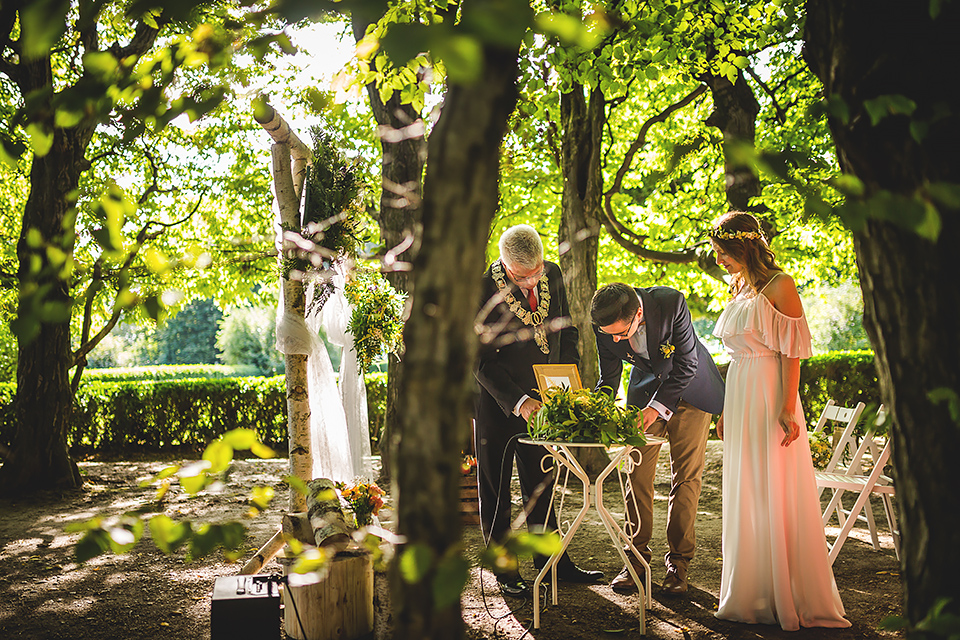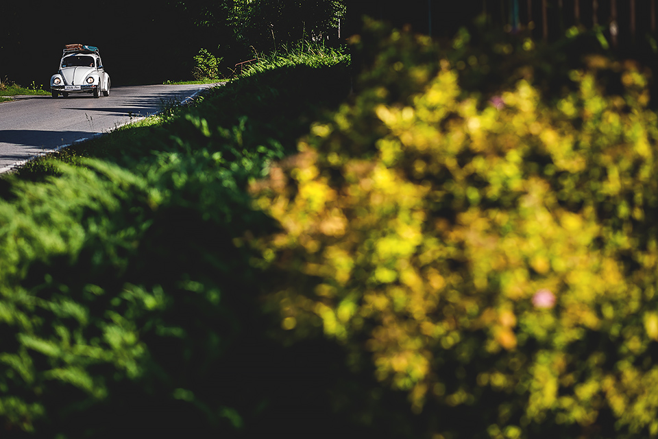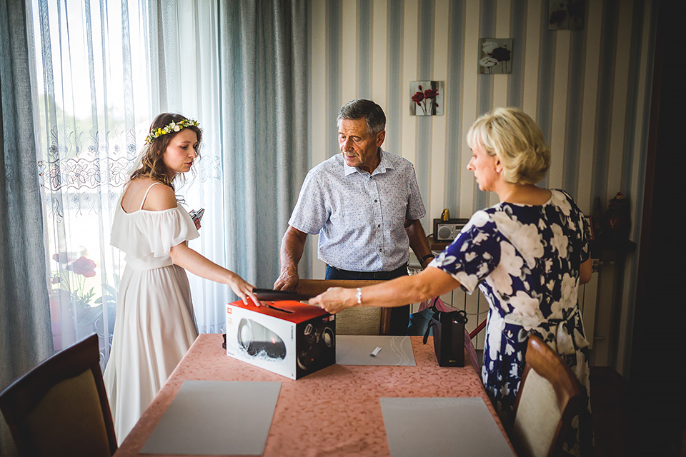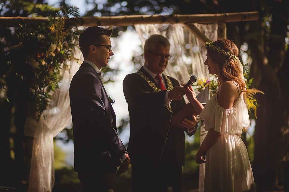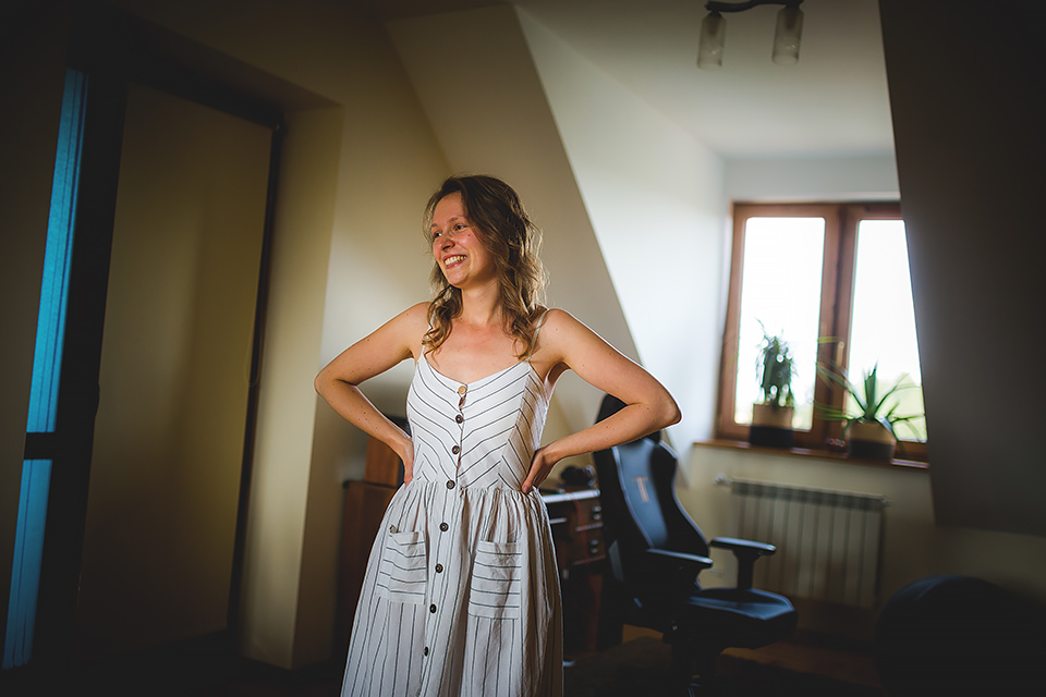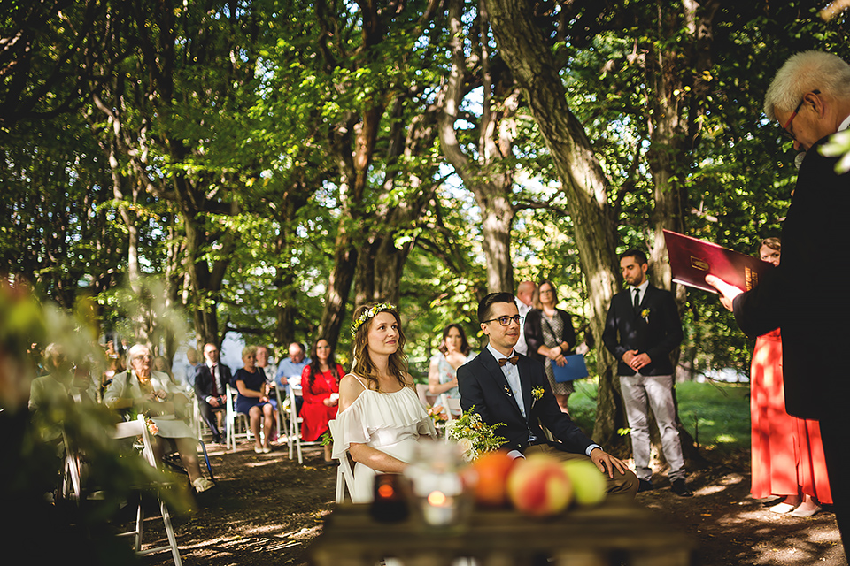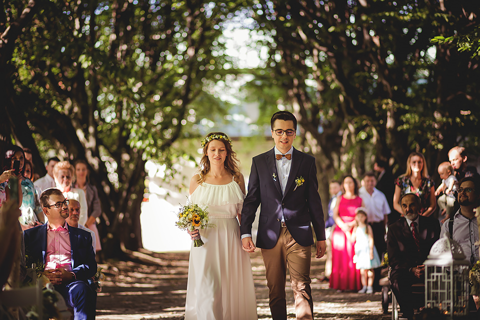 Na ten dzień czekałem z niecierpliwieniem;) Wiedziałem, że będzie oryginalnie więc pozostało trzymać mocno kciuki za pogodę! Ufff, nastał piękny i słoneczny dzień – idealnie na plenerowy ślub!… Jakimś cudem udało się wyprasować sukienkę, udało się też skombinować nagłośnienie na uroczystość (brawo Just!;). Maciek w między czasie miał lekcję jazdy starym samochodem, a Sylwia bardzo nie chciała makijażu, więc kompromisem kilka pociągnięć tuszem wystarczyło;) Klepsydra zaczęła odliczać czas, a więc w droge! Kapitalna aleja grabowa w Mogilanach i wystrój miejsca ceremonii wprost zwalał z nóg – ależ ładnie! Rozmowy z gośćmi, ostatnia próba mikrofonu i za kilka chwil było wielkie Taaaaak! Usmiechy, ryż, życzenia w cieniu starych drzew i można było jechać na imprezkę;) Na miejscu czekała już niezastąpiona grupa BrosArt , dzięki której parkiet wirował pełen gości do późnych godzin;)… Niech resztę opowiedzą zdjęcia…. te moje wybrane, ulubione. Na początek kilka zdjęć z pleneru