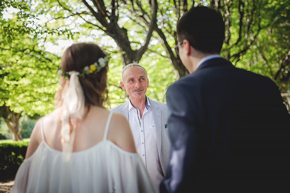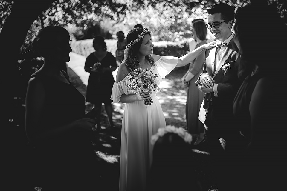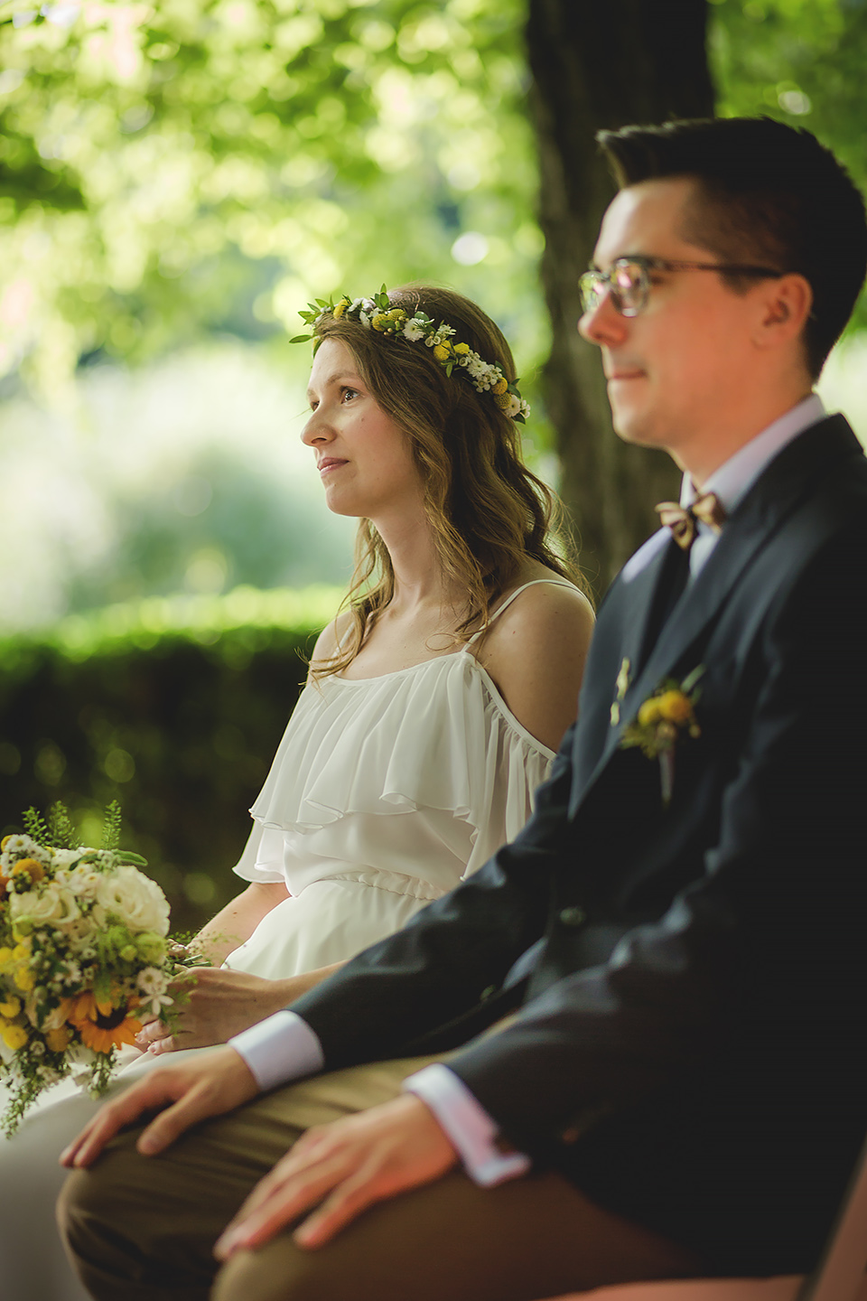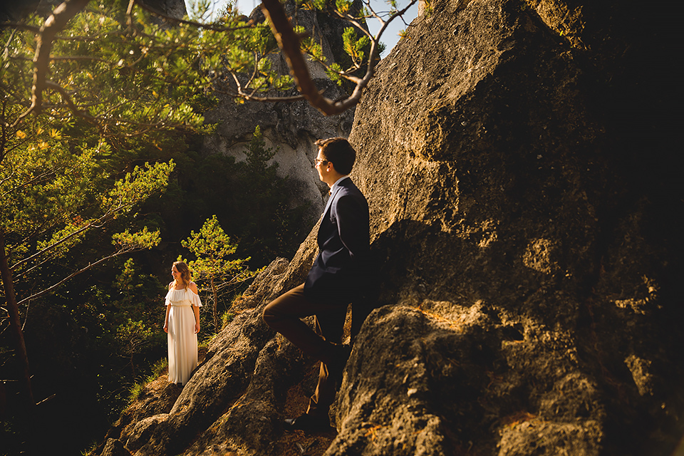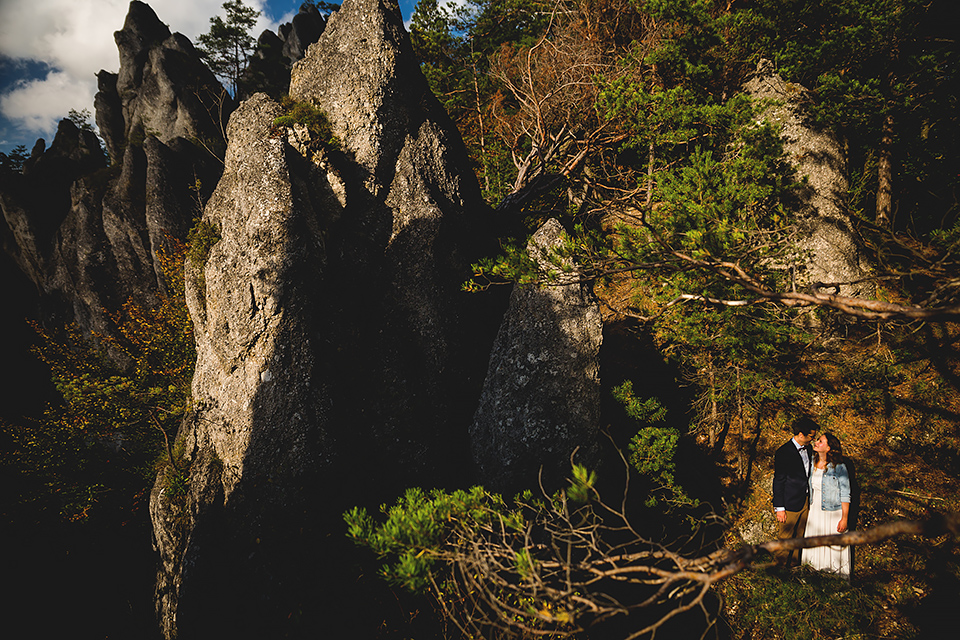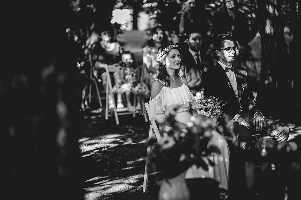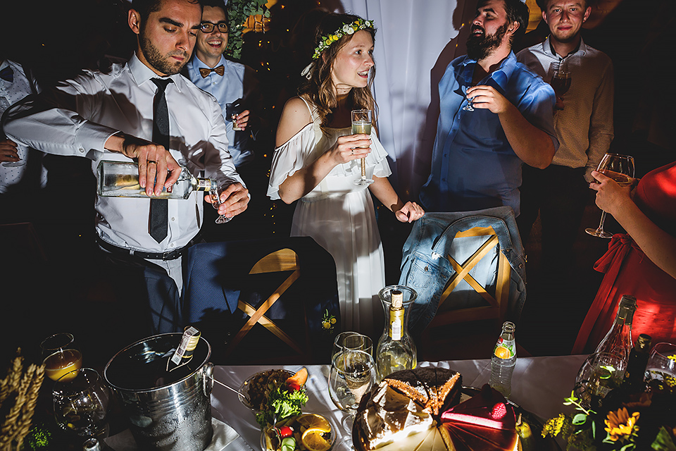 Na ten dzień czekałem z niecierpliwieniem;) Wiedziałem, że będzie oryginalnie więc pozostało trzymać mocno kciuki za pogodę! Ufff, nastał piękny i słoneczny dzień – idealnie na plenerowy ślub!… Jakimś cudem udało się wyprasować sukienkę, udało się też skombinować nagłośnienie na uroczystość (brawo Just!;). Maciek w między czasie miał lekcję jazdy starym samochodem, a Sylwia bardzo nie chciała makijażu, więc kompromisem kilka pociągnięć tuszem wystarczyło;) Klepsydra zaczęła odliczać czas, a więc w droge! Kapitalna aleja grabowa w Mogilanach i wystrój miejsca ceremonii wprost zwalał z nóg – ależ ładnie! Rozmowy z gośćmi, ostatnia próba mikrofonu i za kilka chwil było wielkie Taaaaak! Usmiechy, ryż, życzenia w cieniu starych drzew i można było jechać na imprezkę;) Na miejscu czekała już niezastąpiona grupa BrosArt , dzięki której parkiet wirował pełen gości do późnych godzin;)… Niech resztę opowiedzą zdjęcia…. te moje wybrane, ulubione. Na początek kilka zdjęć z pleneru