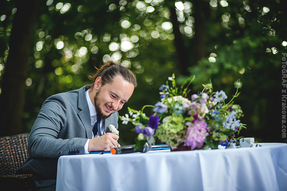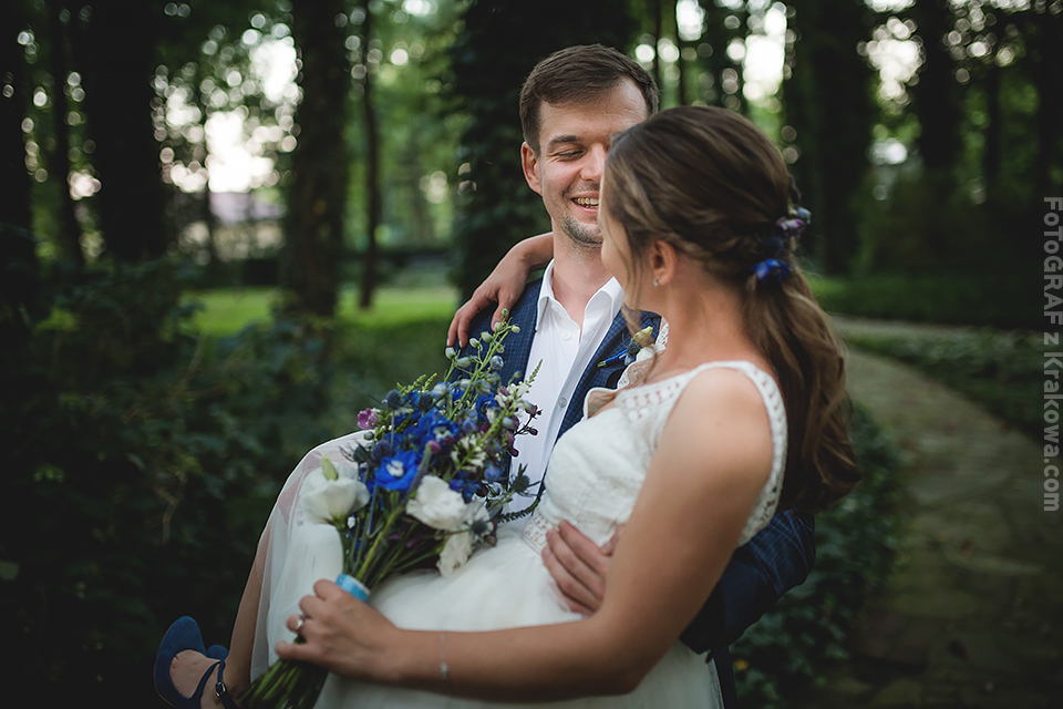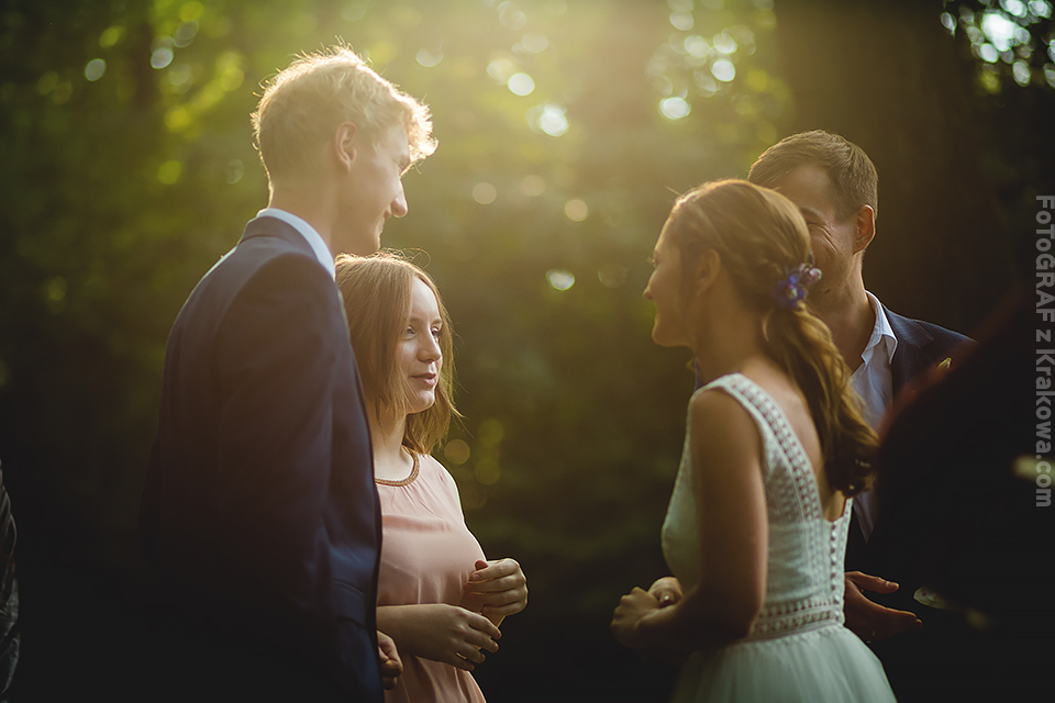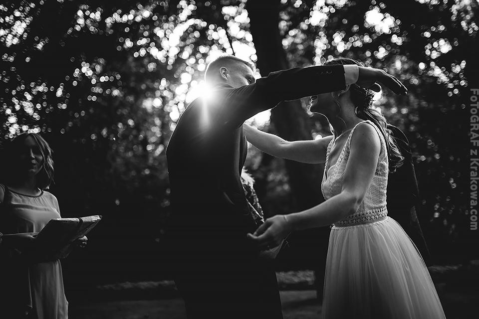 Asie i Roberta poznałem kilka lat temu na weselu Julki i Łukasza, kiedy to pełnili poważną rolę świadków;) Od samego początku wiedziałem że to będzie niezwykły dzień i nie myliłem się. Robert – zapalony wpinacz, Asia jeździ konno, obydwoje cudownie się uzupełniają. W ich domu mnóstwo książek, ścianka wspinaczkowa, świnki morskie i rozmaryn na parapecie. Obydwoje też lubią etniczną muzykę 🙂 Ślub plenerowy odbył się w parku koło Hotelu Farmona w Krakowie, a przyjęcie w altanie. Ogromne pokłony dla Dj Cola za stworzenie całego tego muzyczno/świetlistego klimatu:) Enjoy!