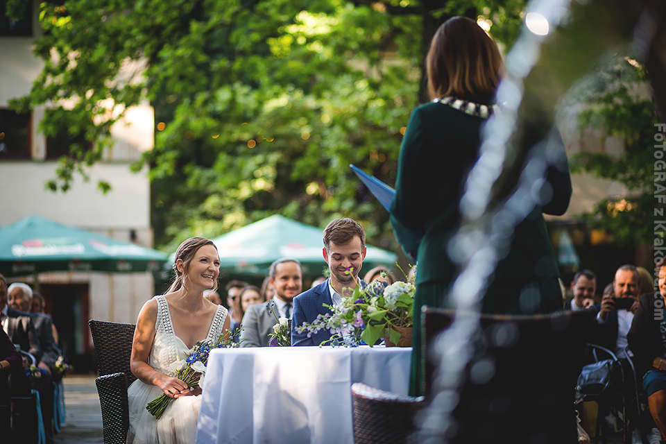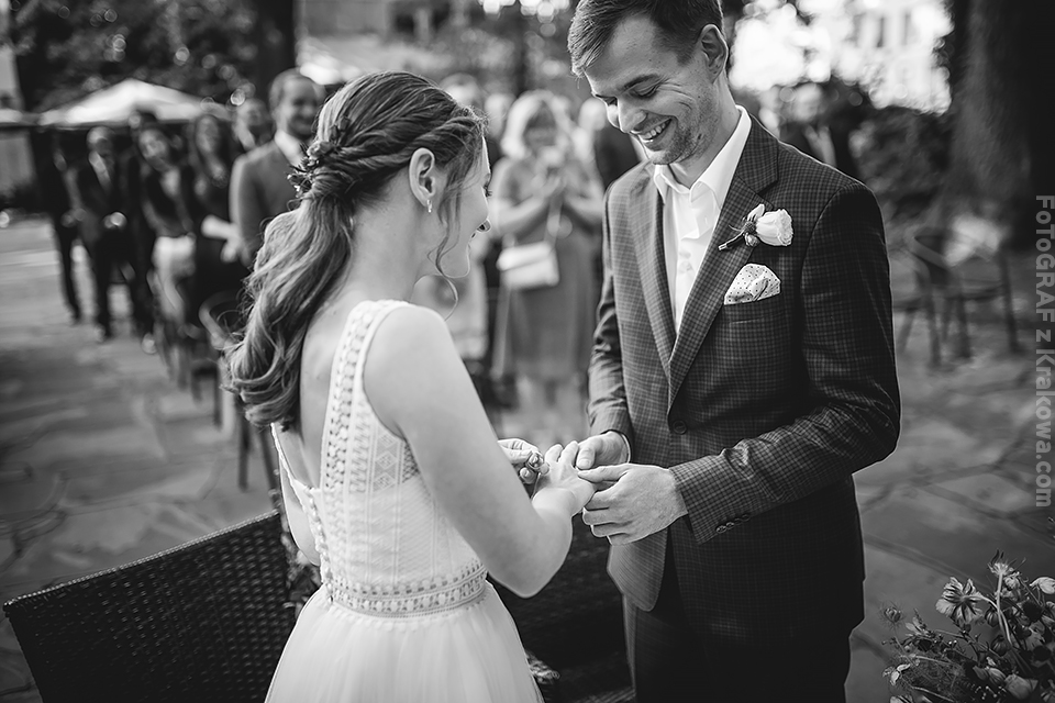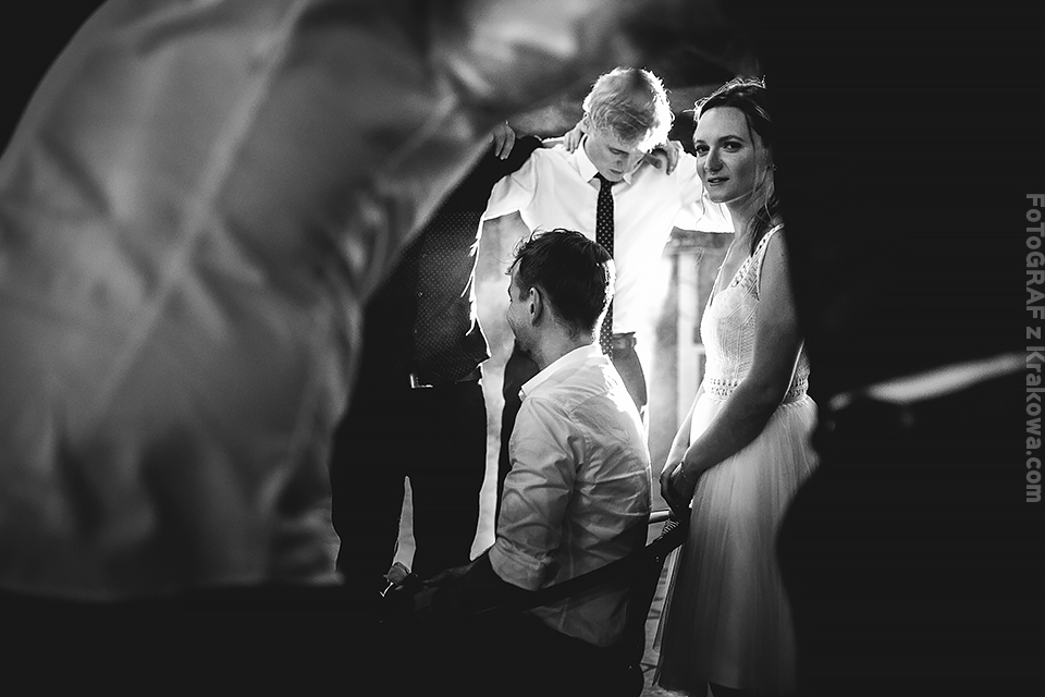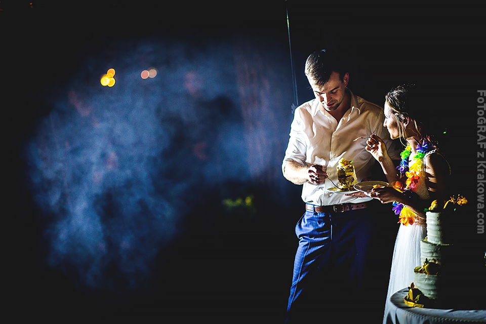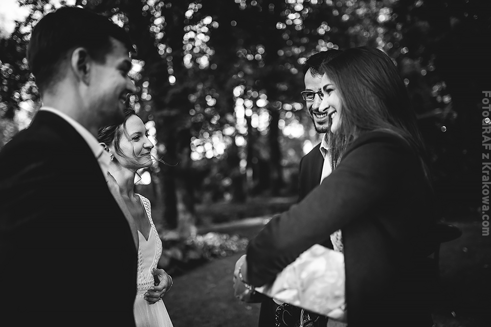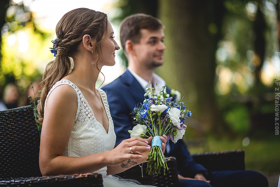 Asie i Roberta poznałem kilka lat temu na weselu Julki i Łukasza, kiedy to pełnili poważną rolę świadków;) Od samego początku wiedziałem że to będzie niezwykły dzień i nie myliłem się. Robert – zapalony wpinacz, Asia jeździ konno, obydwoje cudownie się uzupełniają. W ich domu mnóstwo książek, ścianka wspinaczkowa, świnki morskie i rozmaryn na parapecie. Obydwoje też lubią etniczną muzykę 🙂 Ślub plenerowy odbył się w parku koło Hotelu Farmona w Krakowie, a przyjęcie w altanie. Ogromne pokłony dla Dj Cola za stworzenie całego tego muzyczno/świetlistego klimatu:) Enjoy!