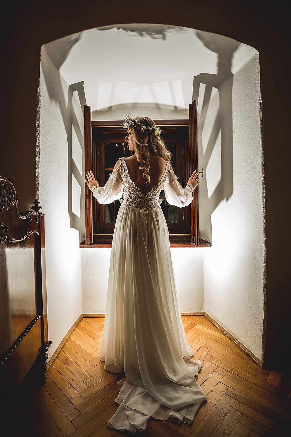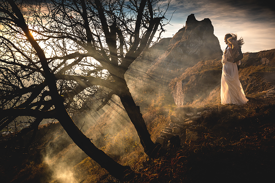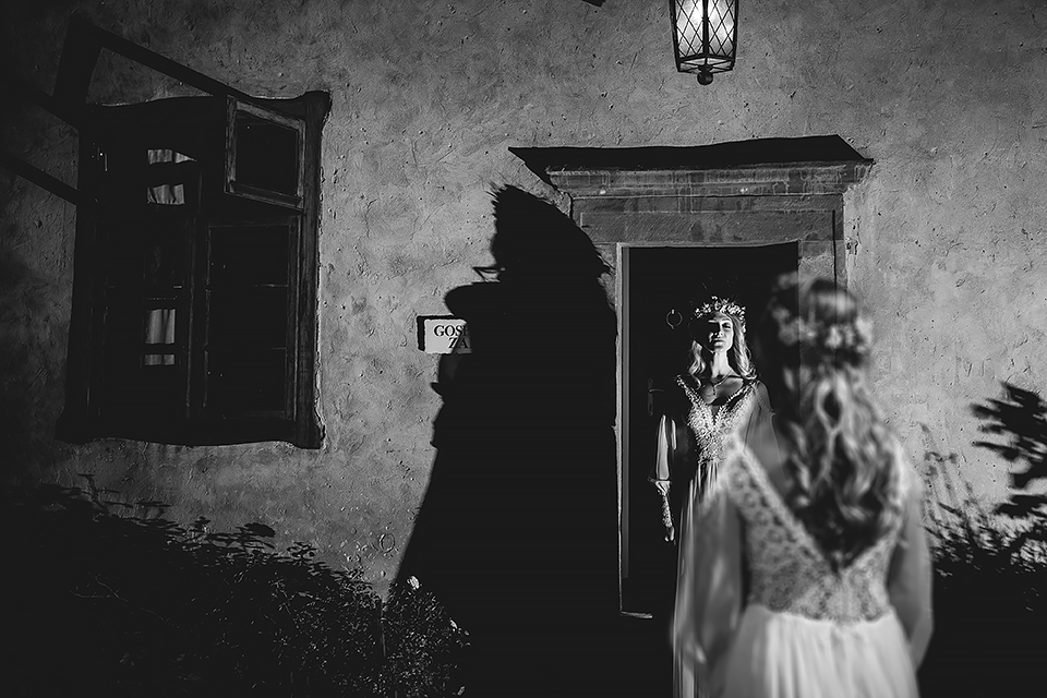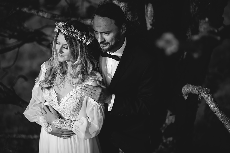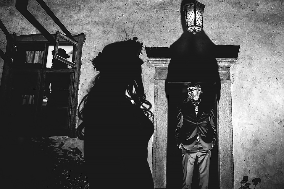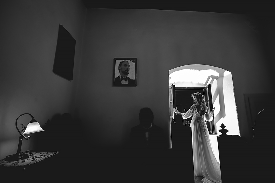 2. Bohaterowie obydwu tych sesji – wymyśleli że w dniu ślubu skorzystają z tego, że udostępniono im zamek w Niedzicy i wzięli mnie tam na nocne zdjęcia w tym pustym i cichym zamczysku… Podobnie jak ja, Maciek i Magda poruszają się w kręgach muzyki metalowej, dlatego też te sesję postanowiłem zrobić nieco mroczną i tajemniczą. Wszak była już noc, na zamku nie było nikogo… a może jednak ktoś był ? Legenda bowiem mówi, że wiele lat temu nieszczęśliwie zakończyło się książęce małżeństwo. Podczas jednej z kłótni rozlała się krew…. Wiele lat później, mieszkańcy zamku zaczęli opowiadać, że nocami po dziedzińcu warowni snuje się duch księcia… Każdej nocy spotyka on swoją zmarłą małżonkę i obie mary już pogodzone wędrują po zamku… Kilka tych zdjęć na zamku postanowiłem właśnie nawiązać do tej legendy, by nie było zbyt słodko 🙂 Wykorzystałem tutaj swoje umiejętności graficzne i większość z tych kadrów jest mocno odjechana. Spróbujcie się wpatrzeć nieco dłużej a na pewno dostrzeżecie tam nieco więcej 🙂
