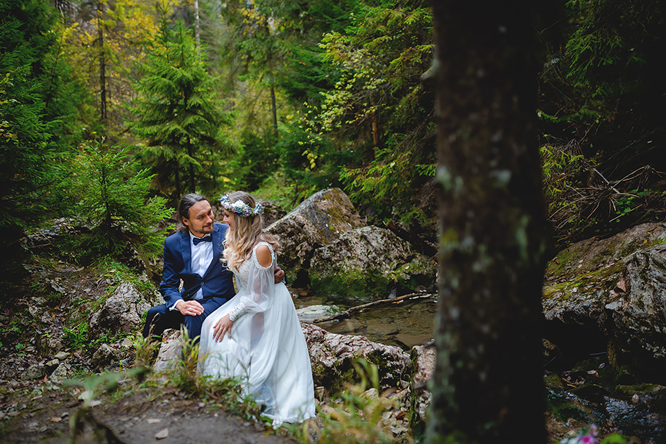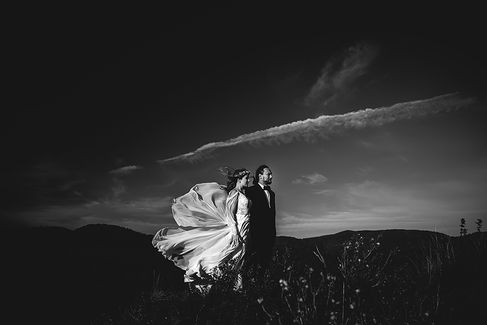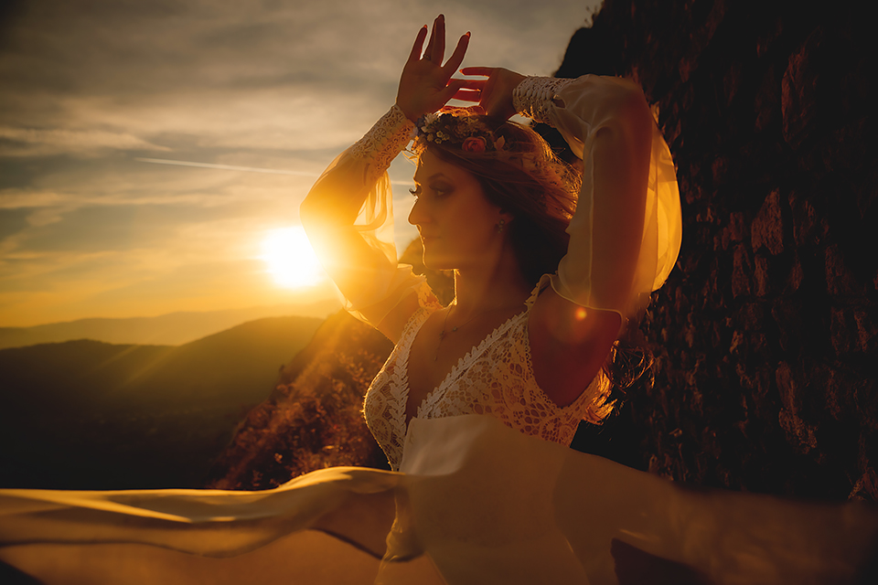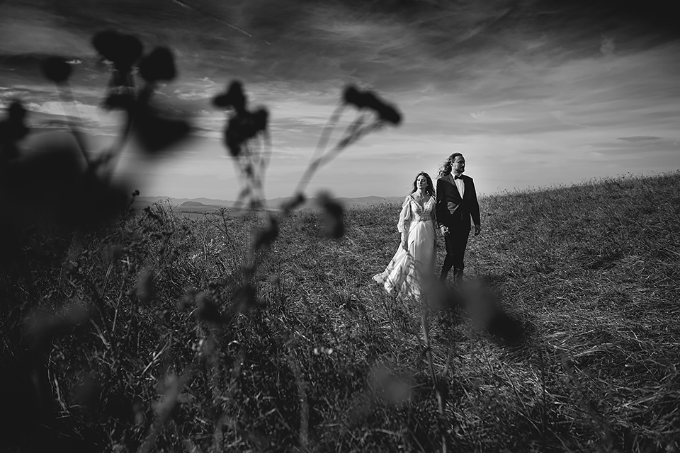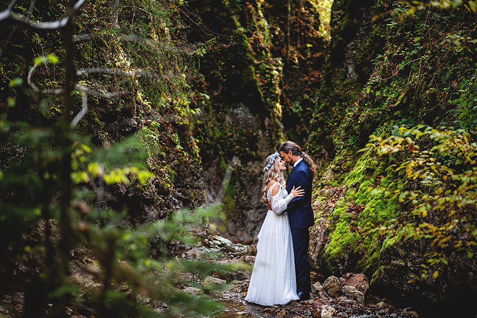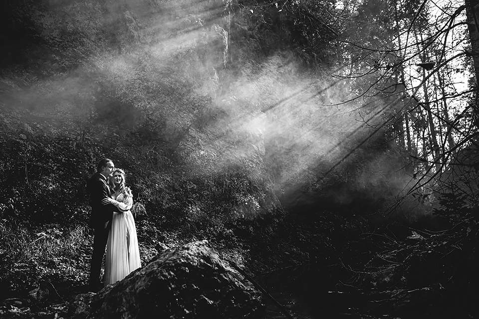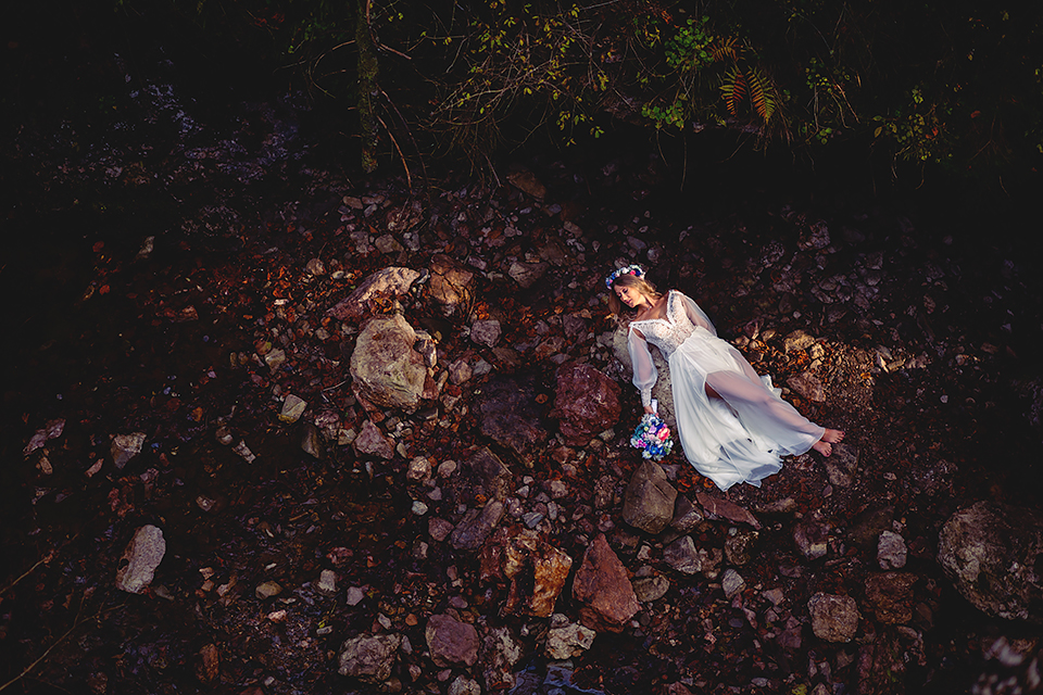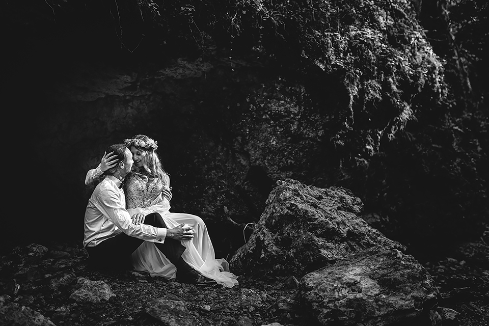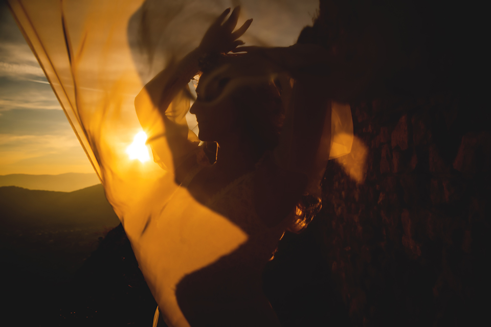 1. Słowacja to niezwykle piękna kraina. Wystarczy wsiąść w auto i co chwilę można zatrzymywać się podziwiając niesamowite miejsca. Na Słowacji robiłem już sporo sesji ślubnych, ale za każdym razem jest to coś wyjątkowego. Zazwyczaj miejsca wybieram osobiście, ale tutaj było łatwiej;) Ponieważ M&M bardzo często podróżują u naszych południowych sąsiadów i poznali już wiele znakomitych zakątków. Wybór nie był łatwy, ale padło na miejsca mniej znane, ukryte przed tłumem turystów a tym bardziej przed Parami Młodymi :)I tak podążyliśmy szlakiem wąwozów, skał i zamków… których tutaj nie brakuje. Bardzo mocny wiatr nie ułatwiał sprawy, ale czasem też pomagał. Mogłem uzyskać bardzo ciekawe i zwiewne efekty. Od razu wyjaśniam, że zdjęcia „z góry” w wąwozie nie są robione z drona. Strome ścieżki pozwalają uzyskać ciekawe efekty „z lotu ptaka”… Koncepcja sesji miała zawierać element drogi, szerokie widoki z elementem „ludzkim”, uczucie:) oraz świece dymne.