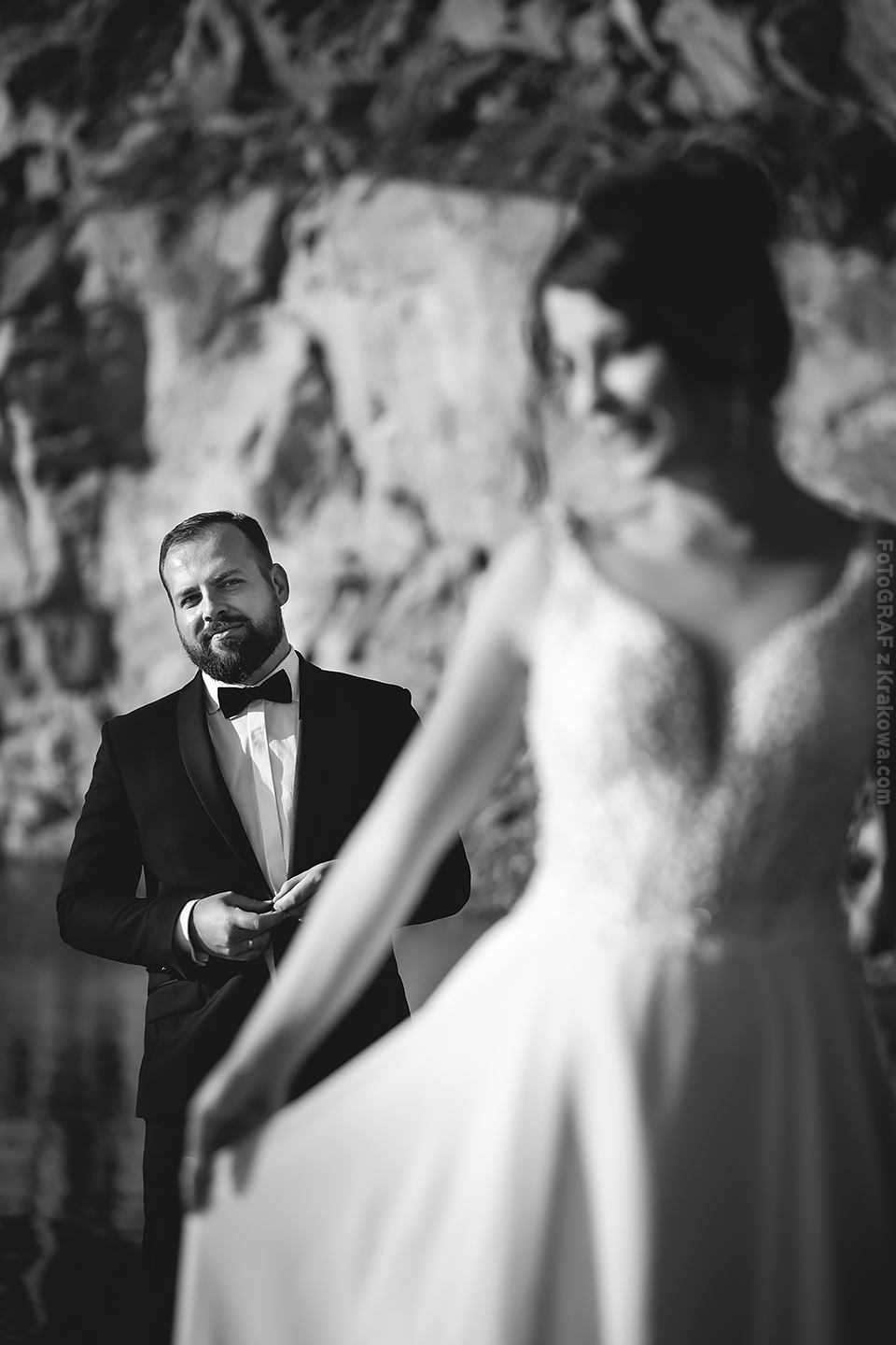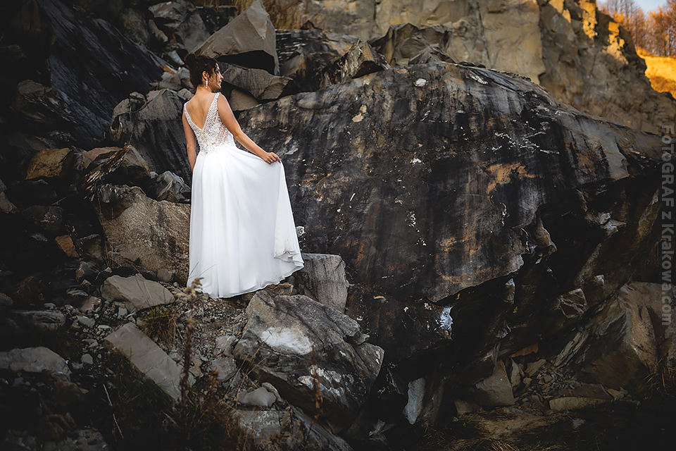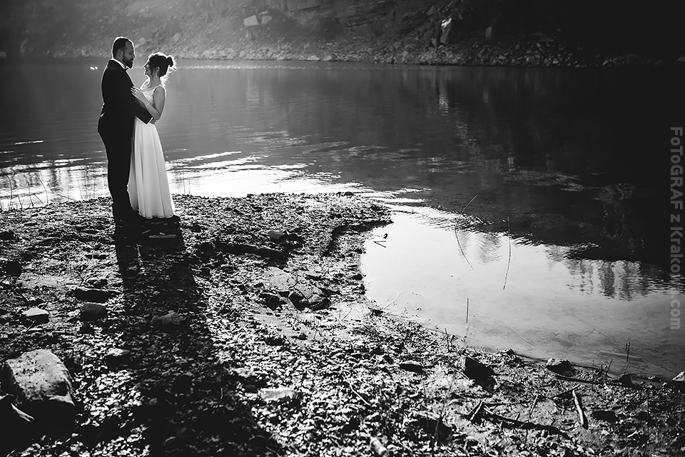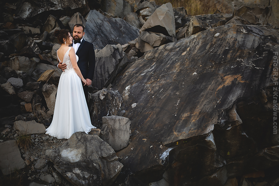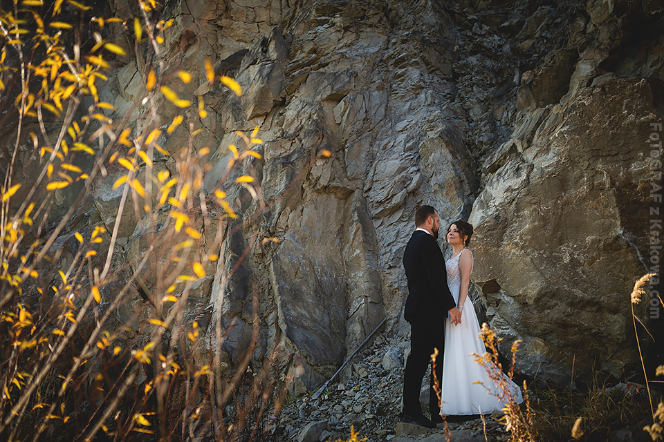 Czemu to wszystko napisałem? Danka i Andrzej od razu powiedzieli mi, że chcą sesję wykonać w kamieniołomie. Gdy to usłyszałem podskoczyłem pod sufit z radości 😉 I tak oto, od dawna upatrzone miejsce w końcu zostało zatrzymane jako tło do sesji ślubnej. No i jeszcze jedno – tak nielubiany przez wielu listopad… tutaj pokazał swoje najcudowniejsze strony:) Sami zobaczcie!