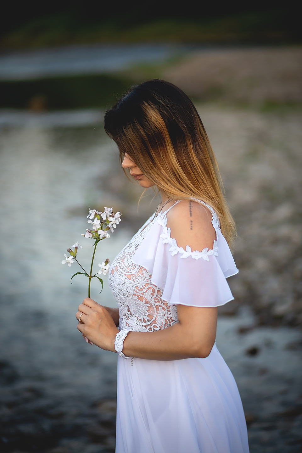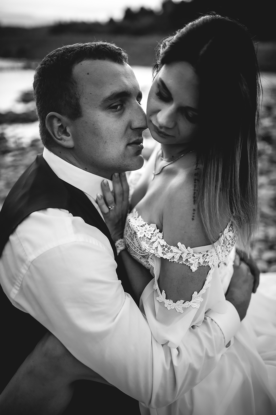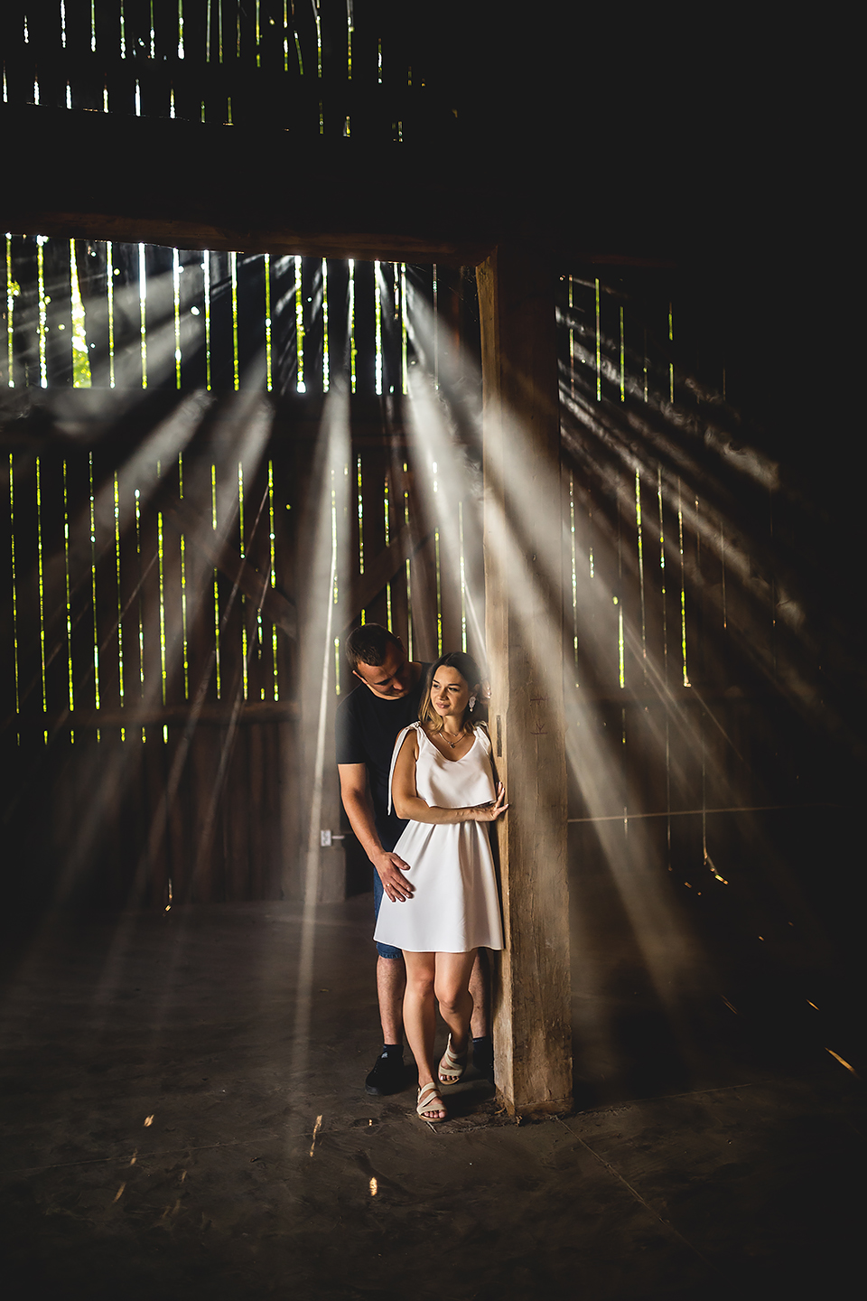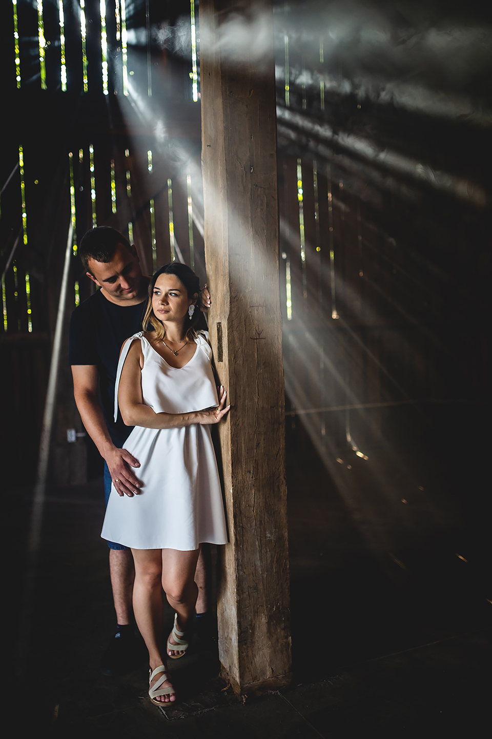 34 stopnie to niekoniecznie dobra temperatura do wykonania sesji ślubnej, więc trzeba sobie jakoś radzić. Szybka decyzja by przed słońcem schować się w stodole, a wieczorem ochłodzić się w górskiej rzece 🙂 To był strzał w dziesiątkę. Dzięki Asi i Dominikowi stylizacja sesji i atmosfera była podobnie gorąca jak ta na zewnątrz 🙂