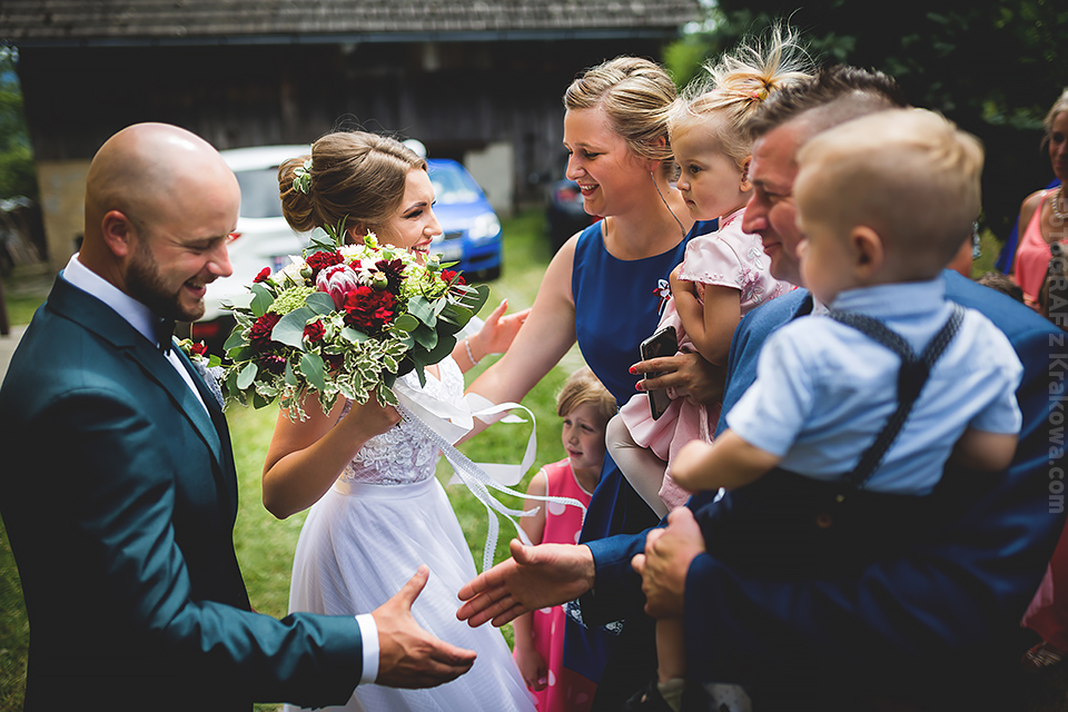 Wooow, co to był za dzień! Wszystko zaczęło się wcześnie rano w moich ulubionej Jaworzynce;) To właśnie stąd pochodzą Państwo Queen – Martynka i Tomek:) Nie znałem ich wcześniej, ale błyskawicznie polubiłem i szybko „wtopiłem się” w tłum i reportaż tworzył sie sam… Mega krejzolskie wykupiny, łzy, pełno śmiechu i super odjechana ekipa zebrała się w domu Martynki by stamtąd pojechać na piękny ślub w pobliskim małym kościółku. A potem wielka impreza, która zdawała się nie mieć końca! Parkiet odlatywał w powietrze a ja mogłem to wszystko łapać na gorących klatkach, które właśnie poniżej prezentuje.. Oczywiście to tylko część! Taka garstka moich ulubionych 🙂